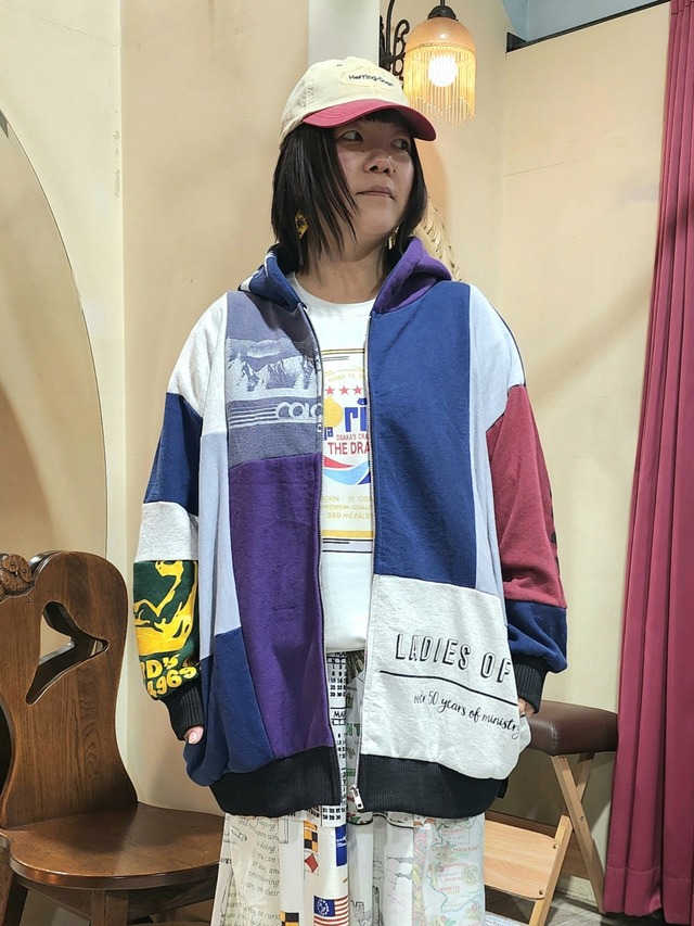 〈RERE〉リメイクパッチワークパーカー【MO】