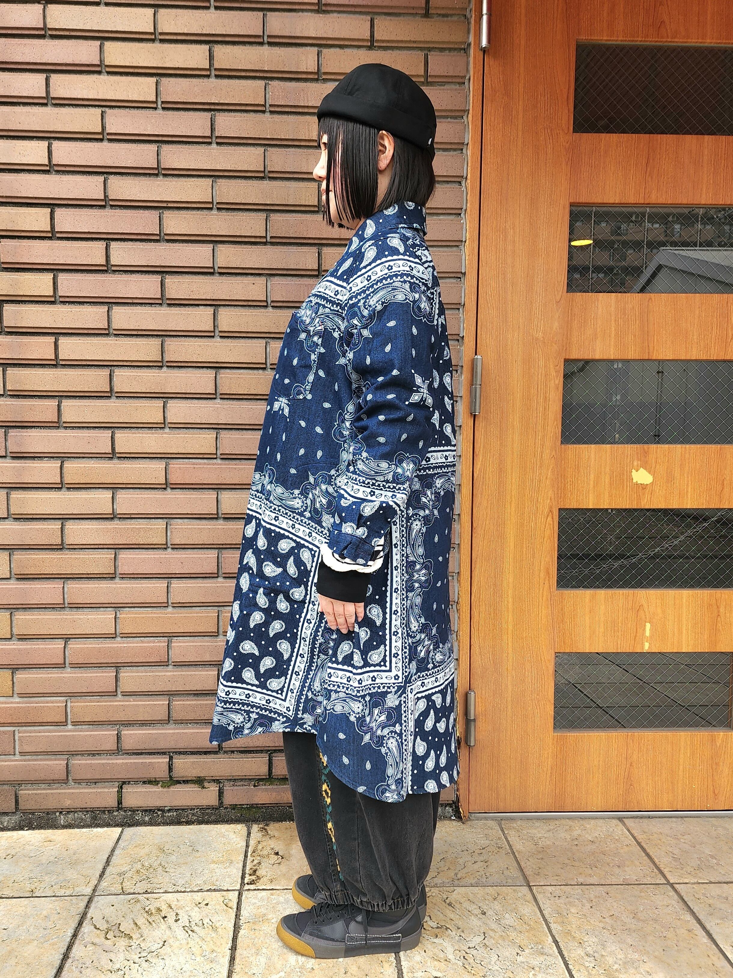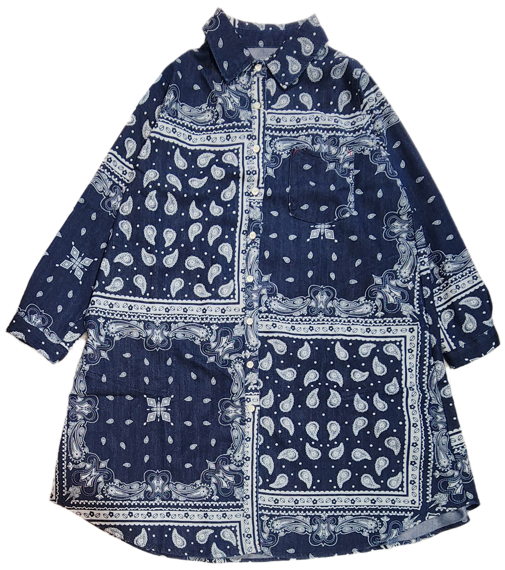 ペイズリー柄デニムシャツワンピース