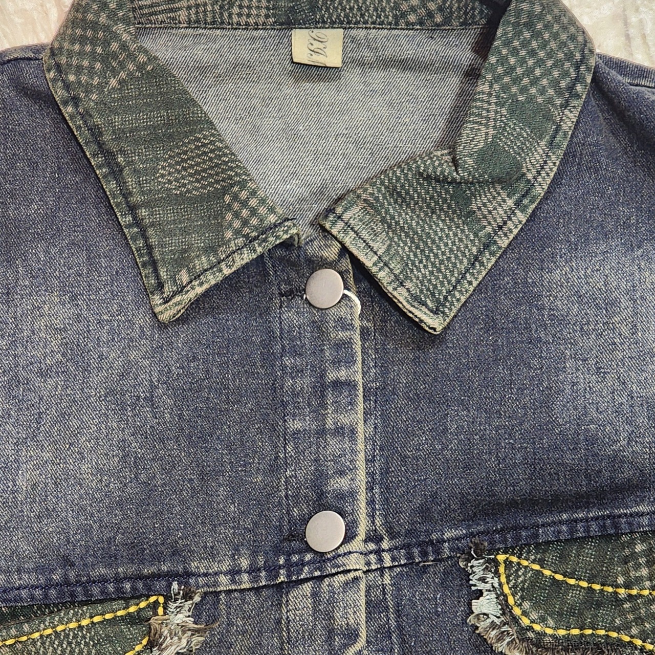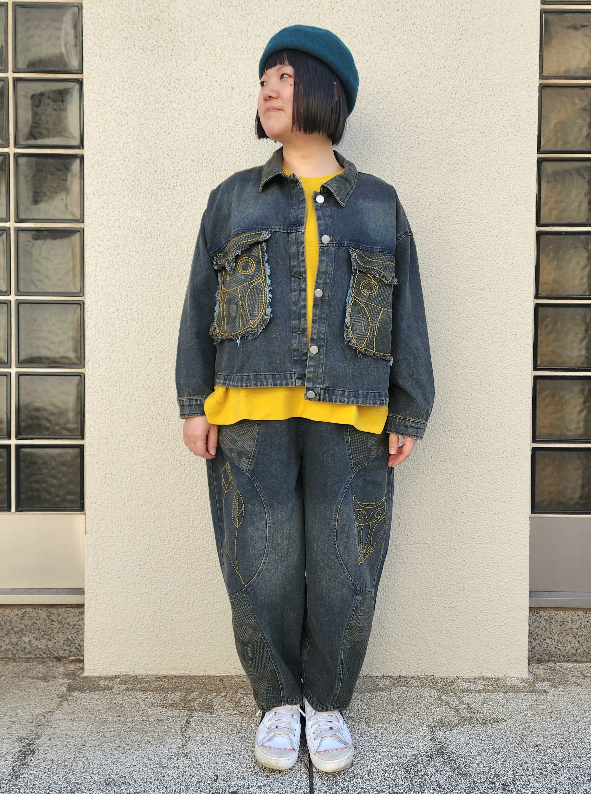 ミミズクがフラップ付きのポケットになっているデニムジャケット。