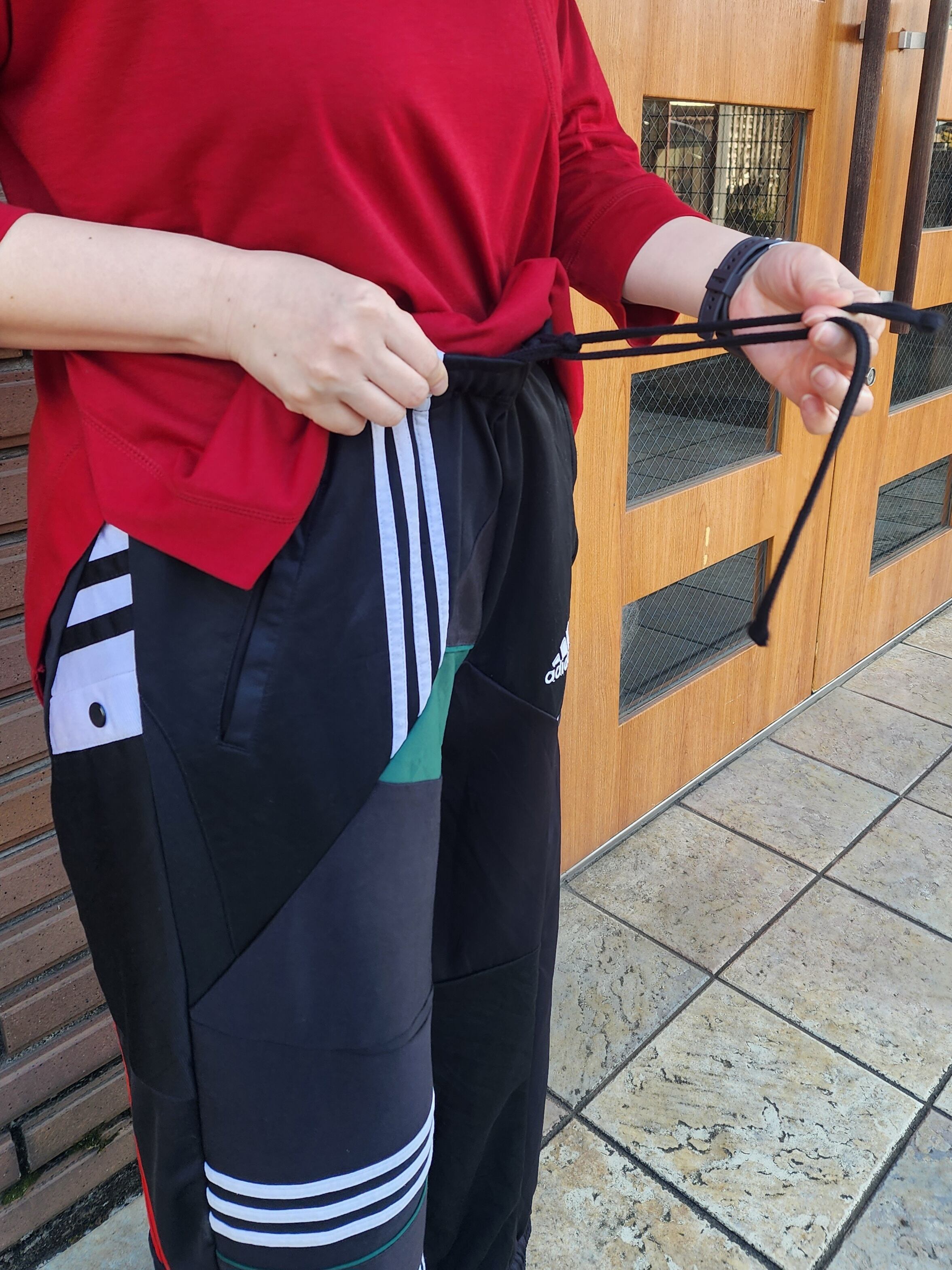 ウエストは総ゴムで紐も通っているので、幅広いサイズに対応しています。