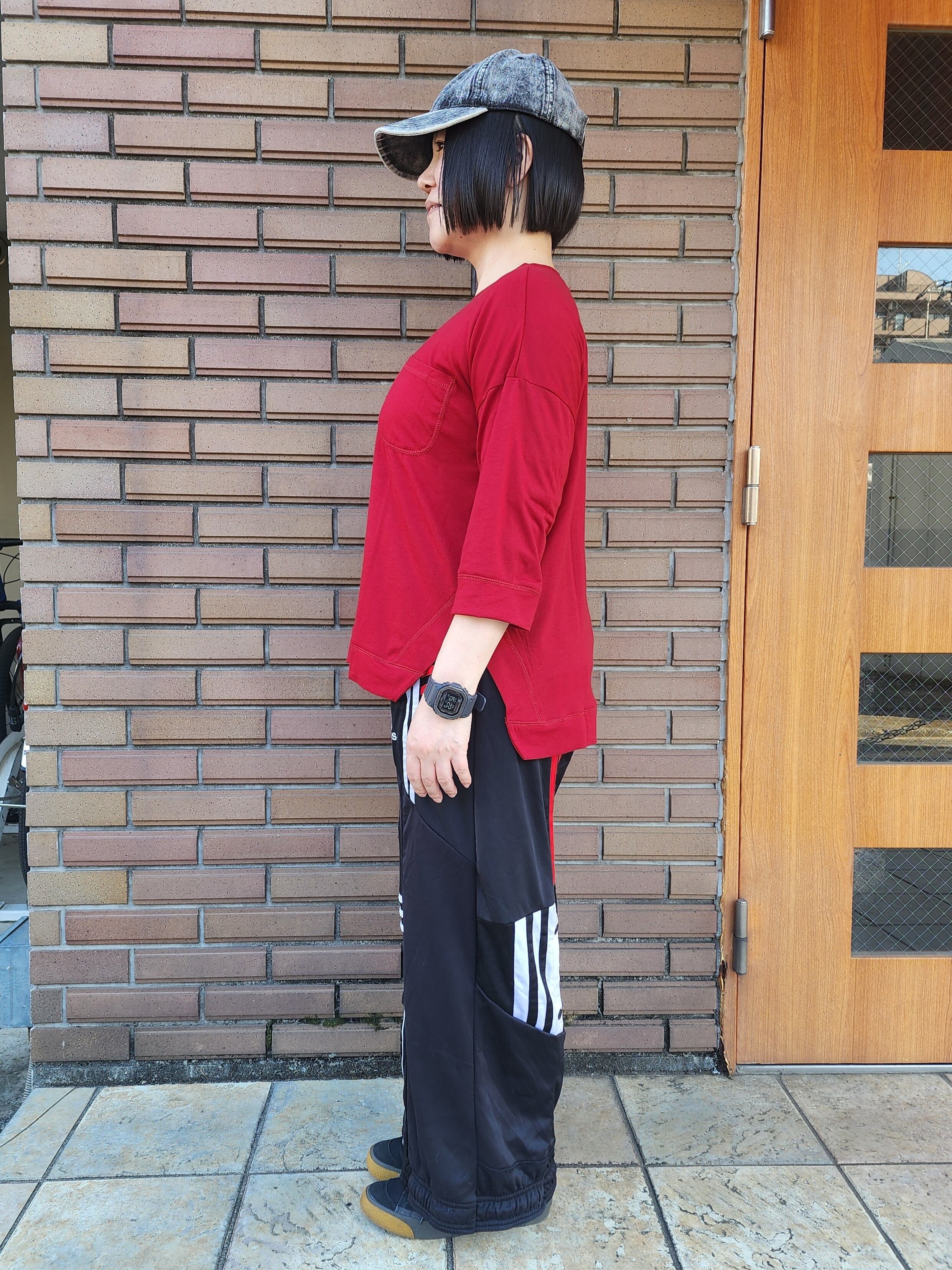 ちょこっと入ったグリーンや後ろのインパクトあるレッドラインがポイントの一枚です。