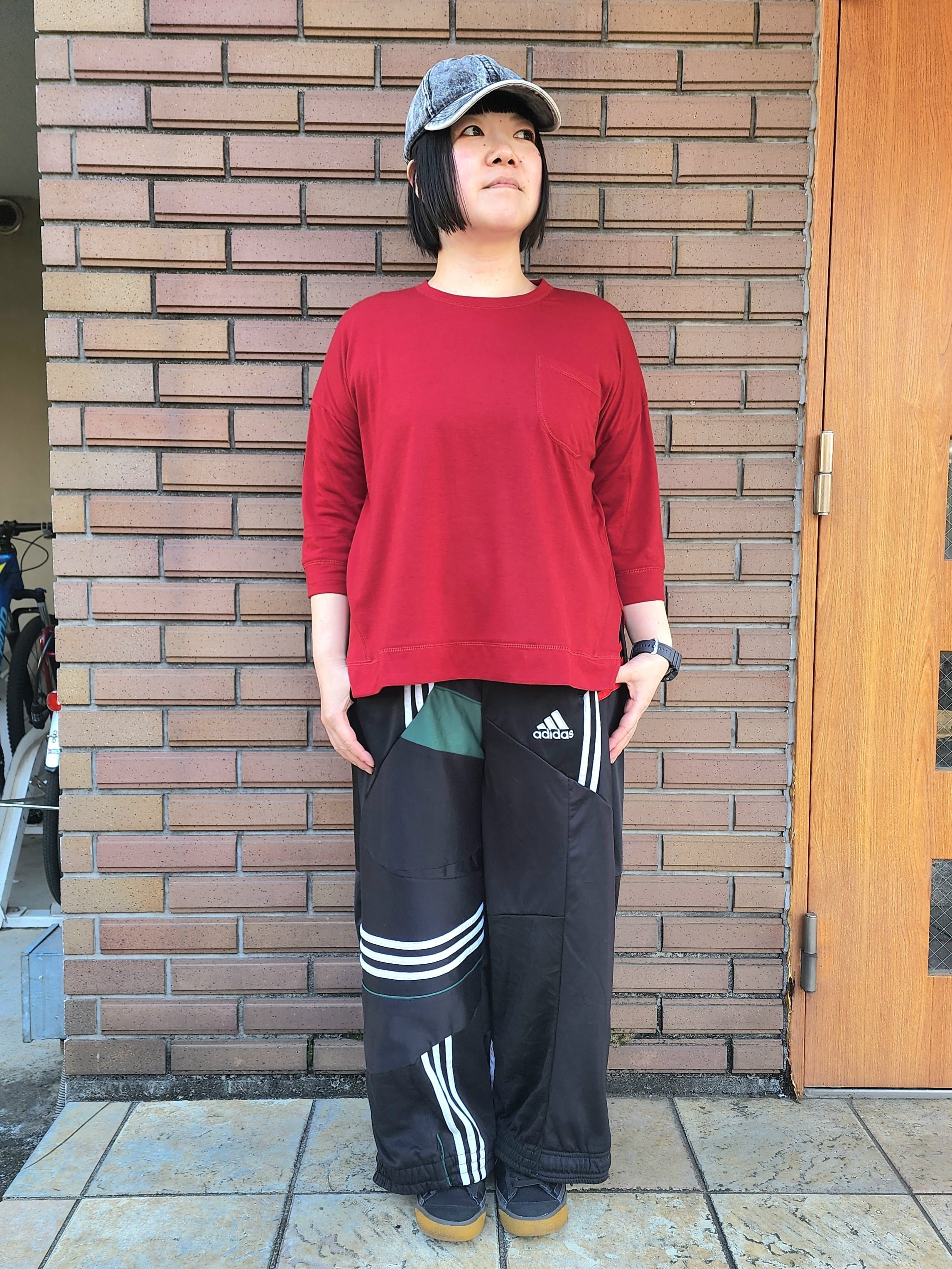 古着ジャージをパッチワークリメイクしたワイドパンツ。