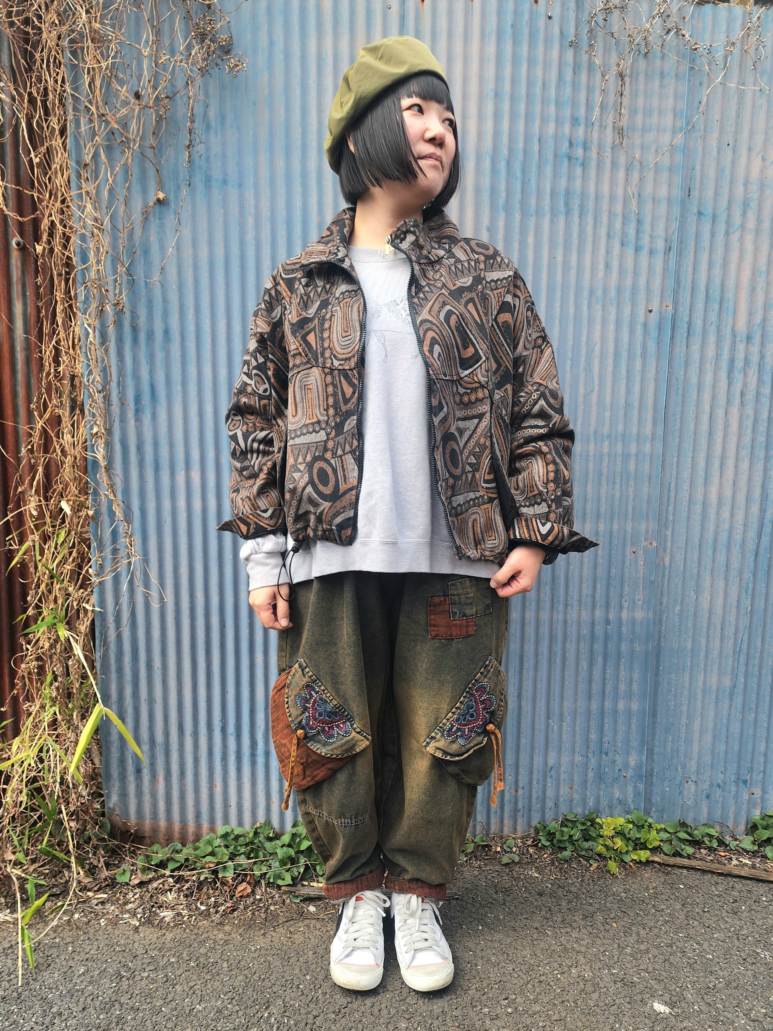 ビンテージ風の加工が生地や刺繍の雰囲気にマッチした、存在感ある一枚です。
