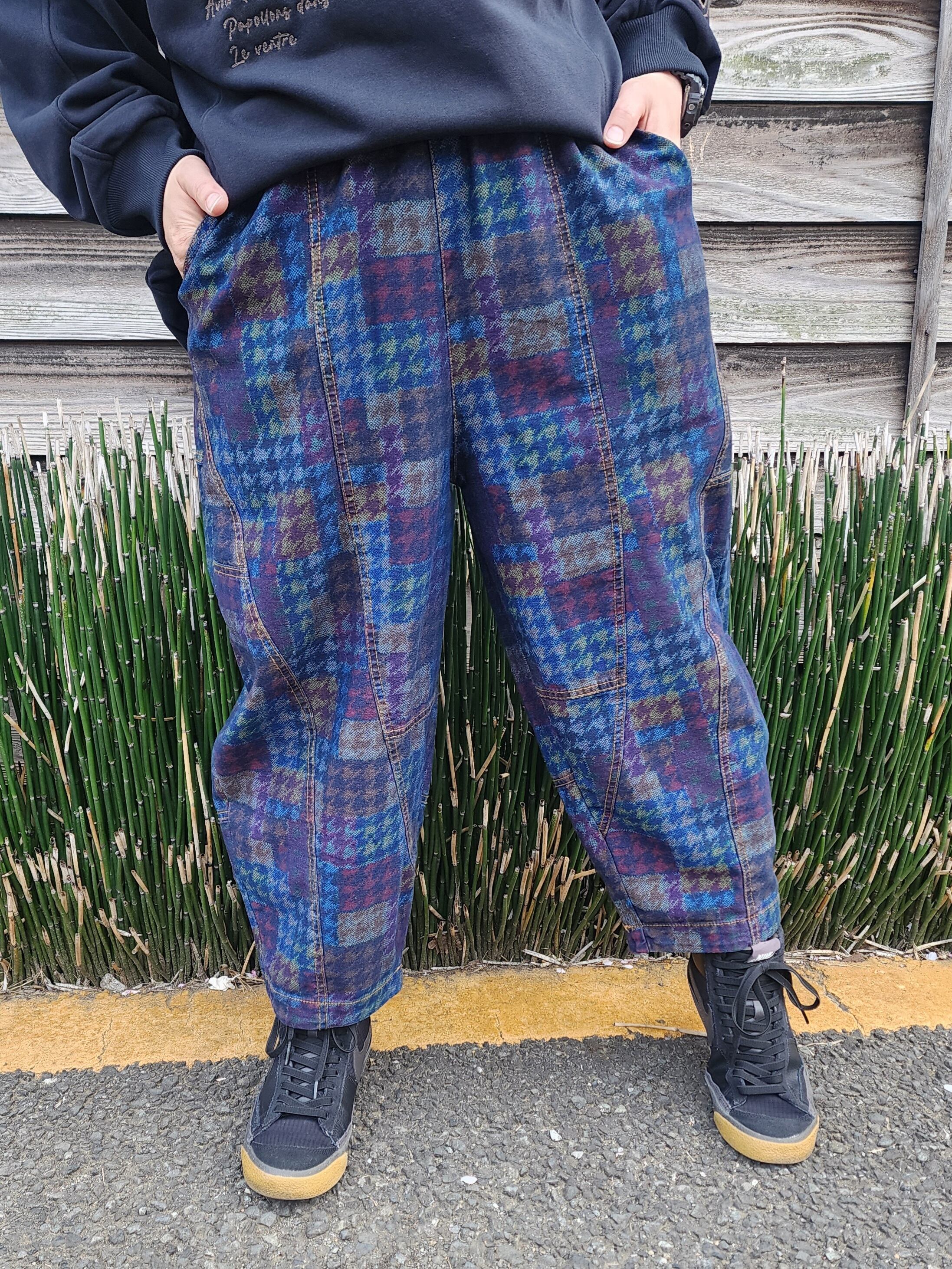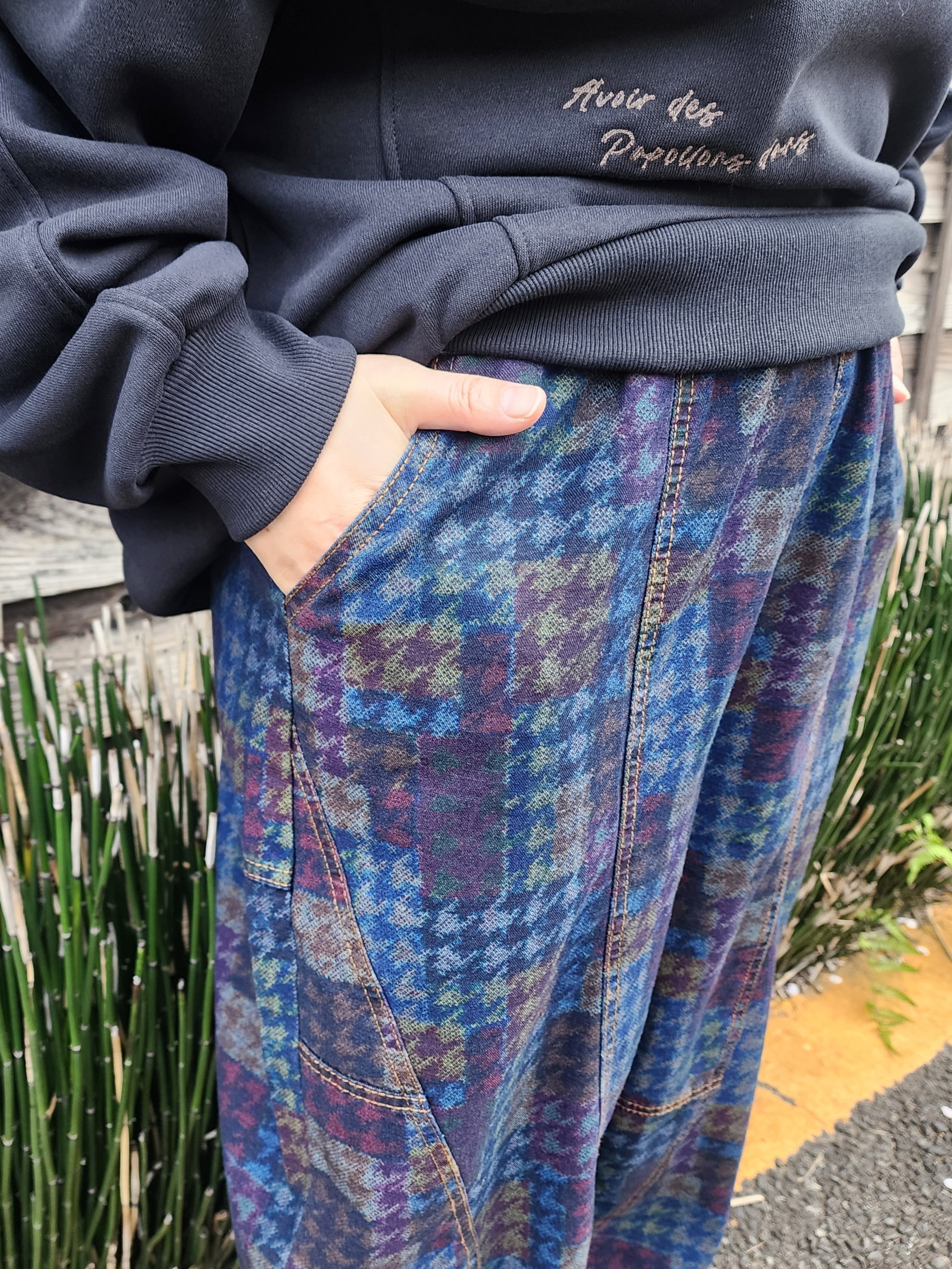 しぶめカラフルな千鳥格子プリントが目を引くボールパンツ。