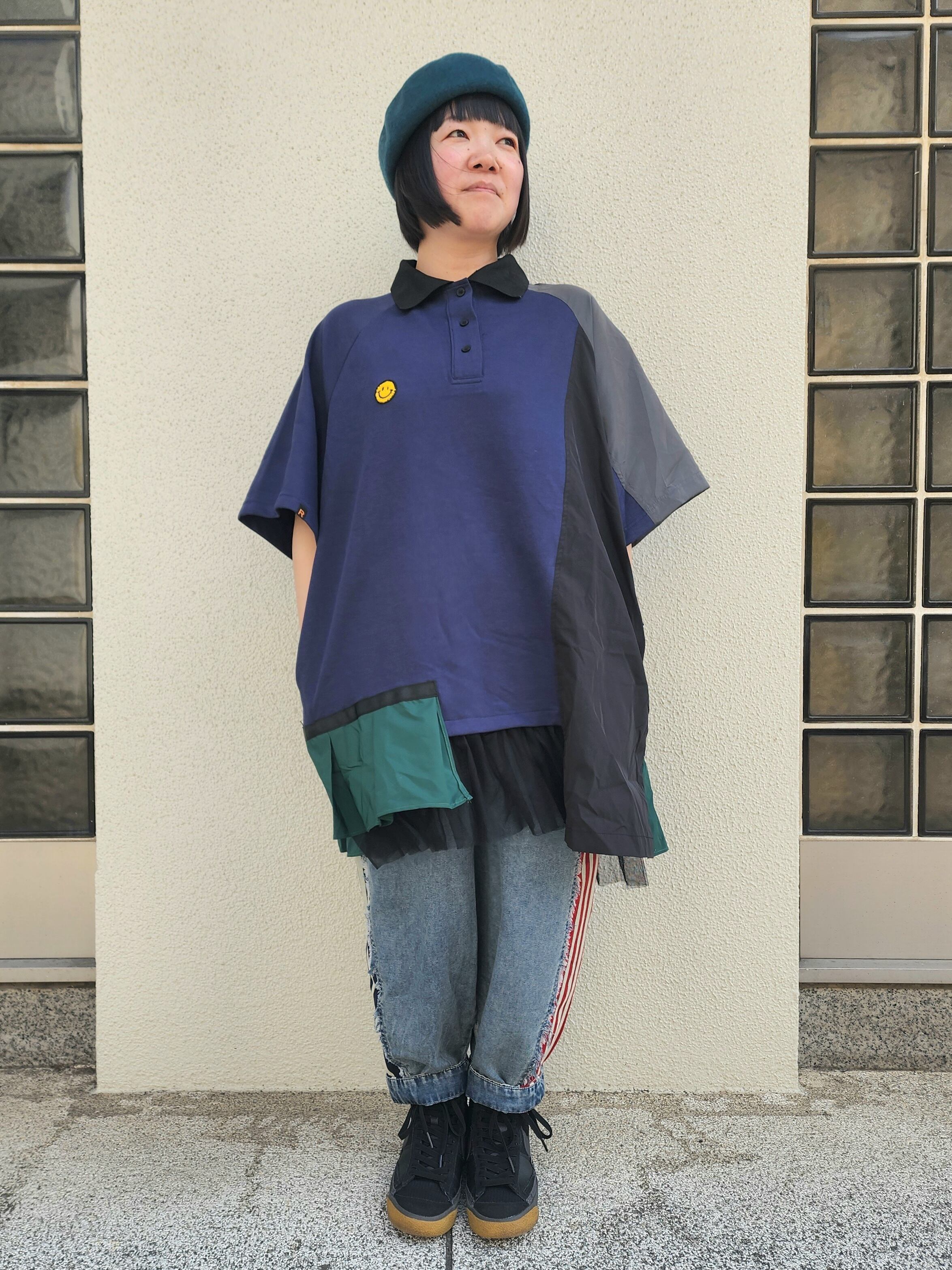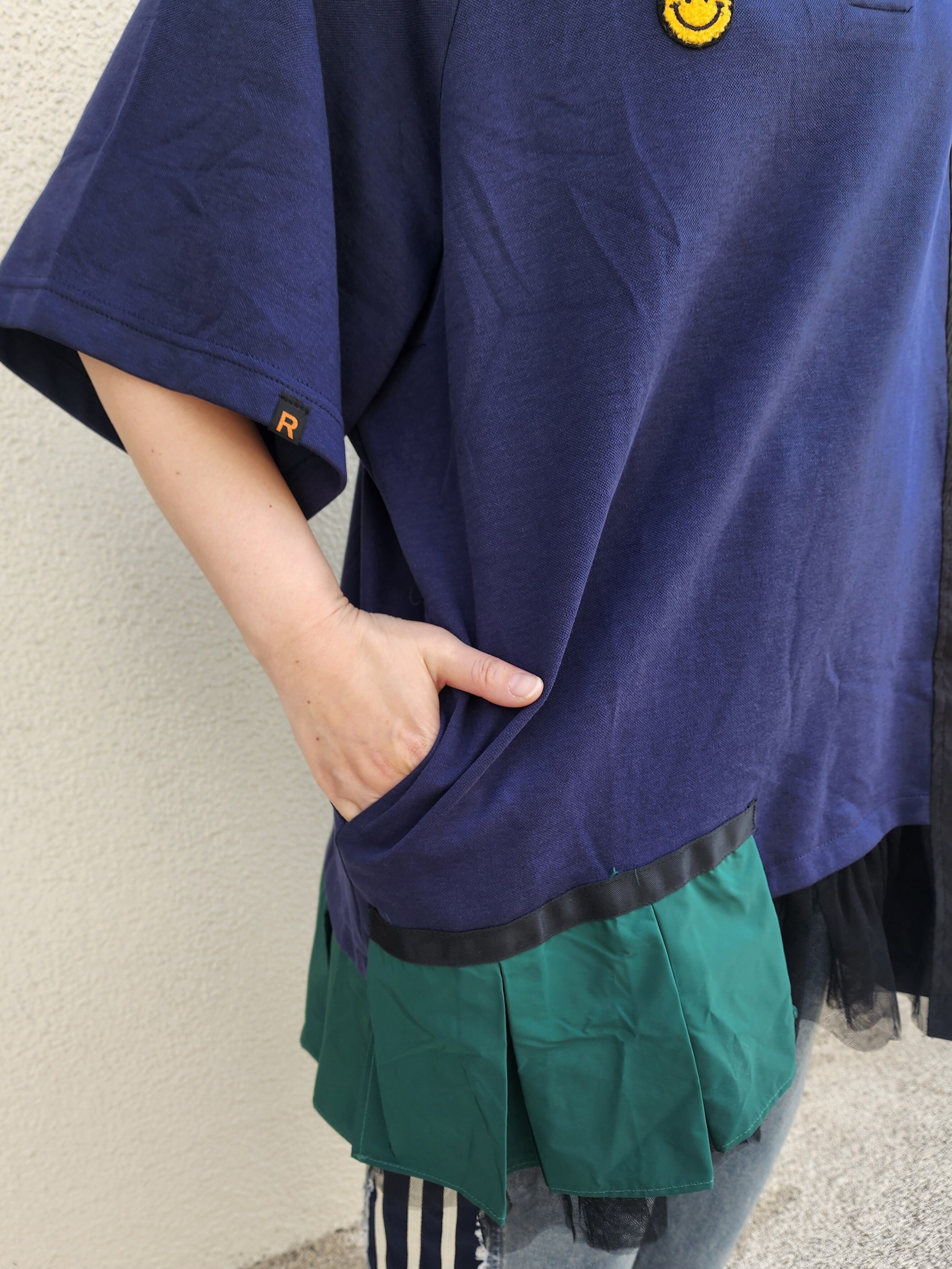 スマイルのワンポイント付きで裾にはチュールや異素材のプリーツ。