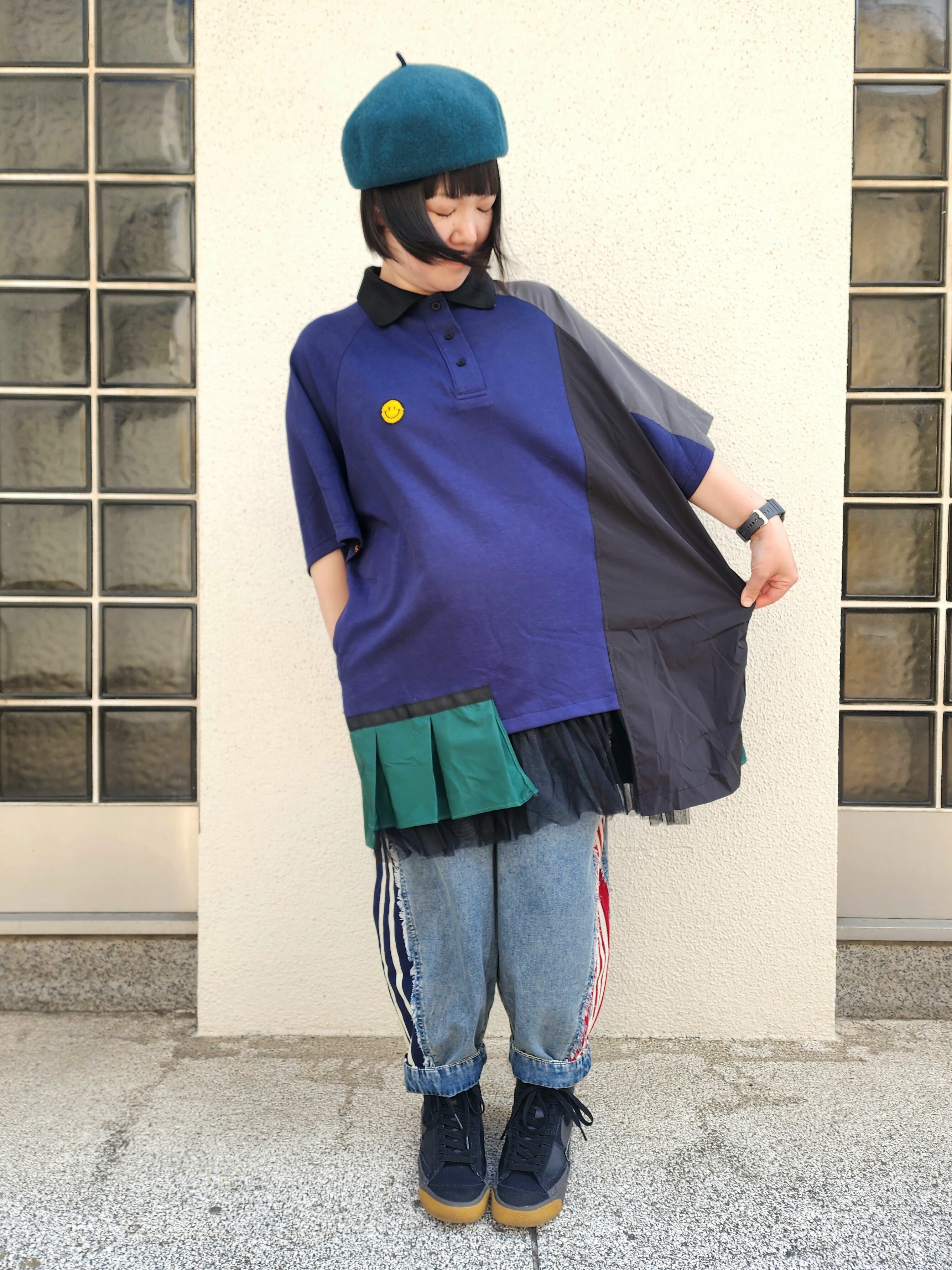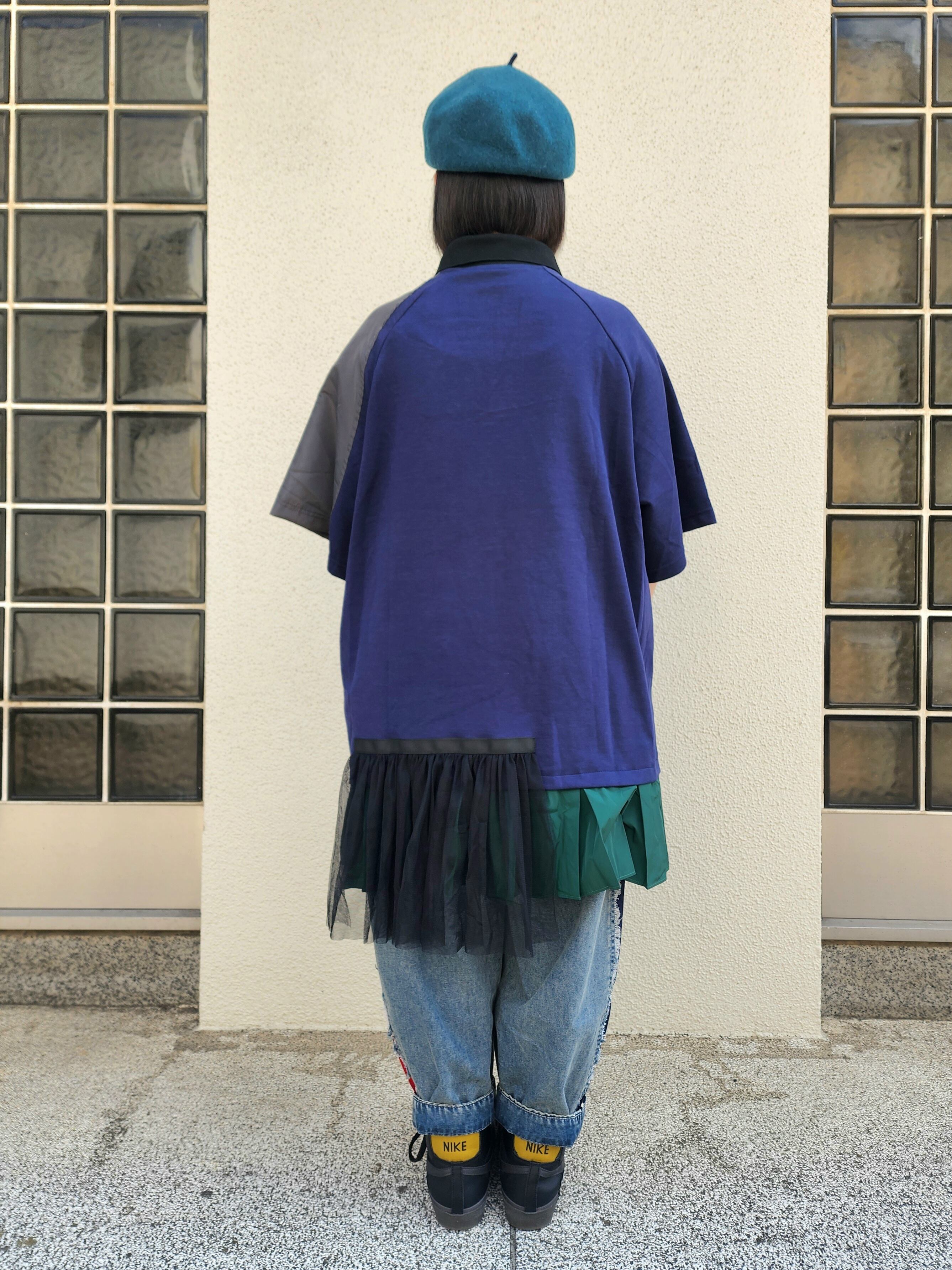 プリーツ&チュールのアシメラグランポロシャツ