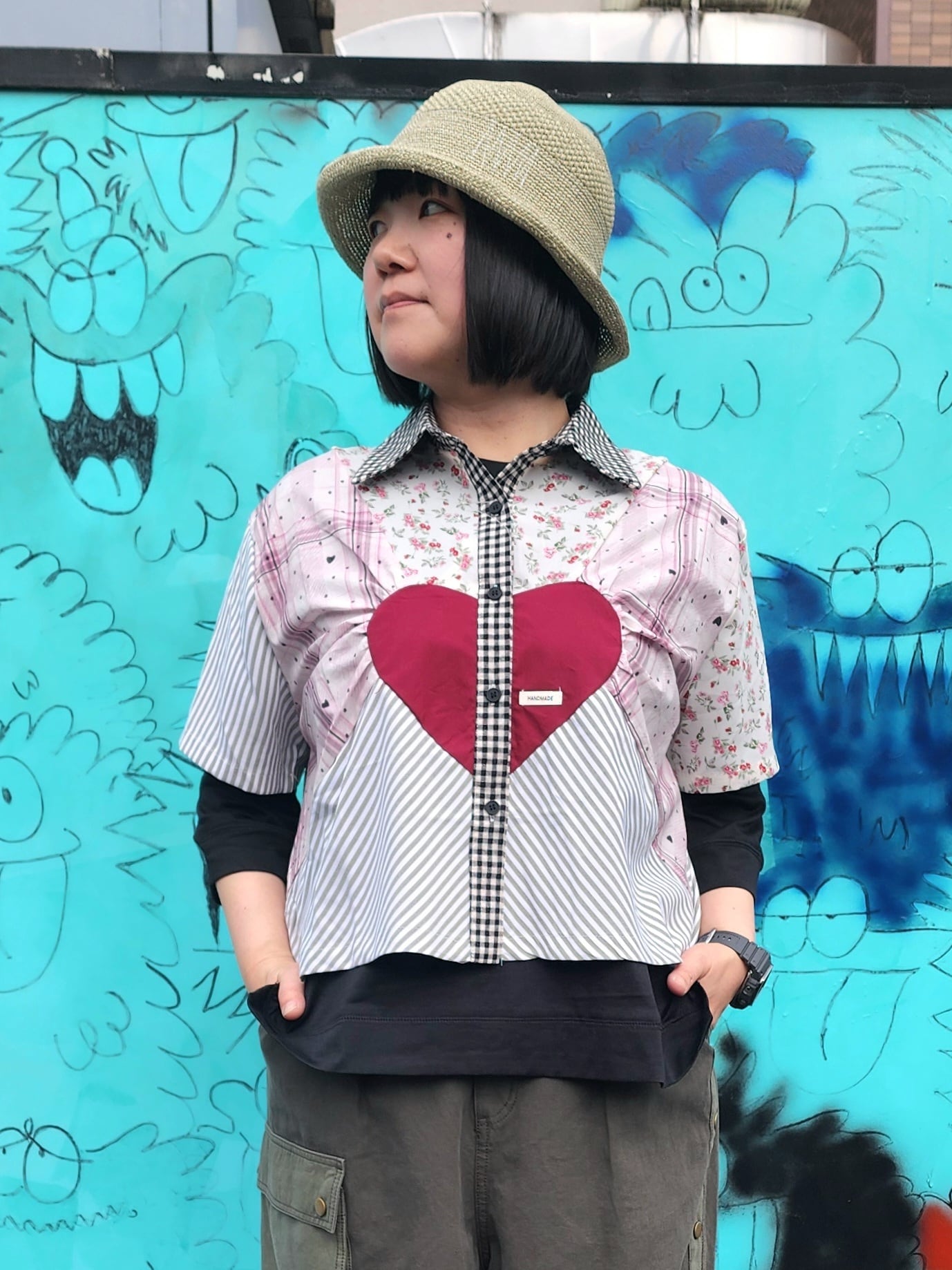 4種類の生地を組み合わせて、真ん中にハートのパッチワーク☆