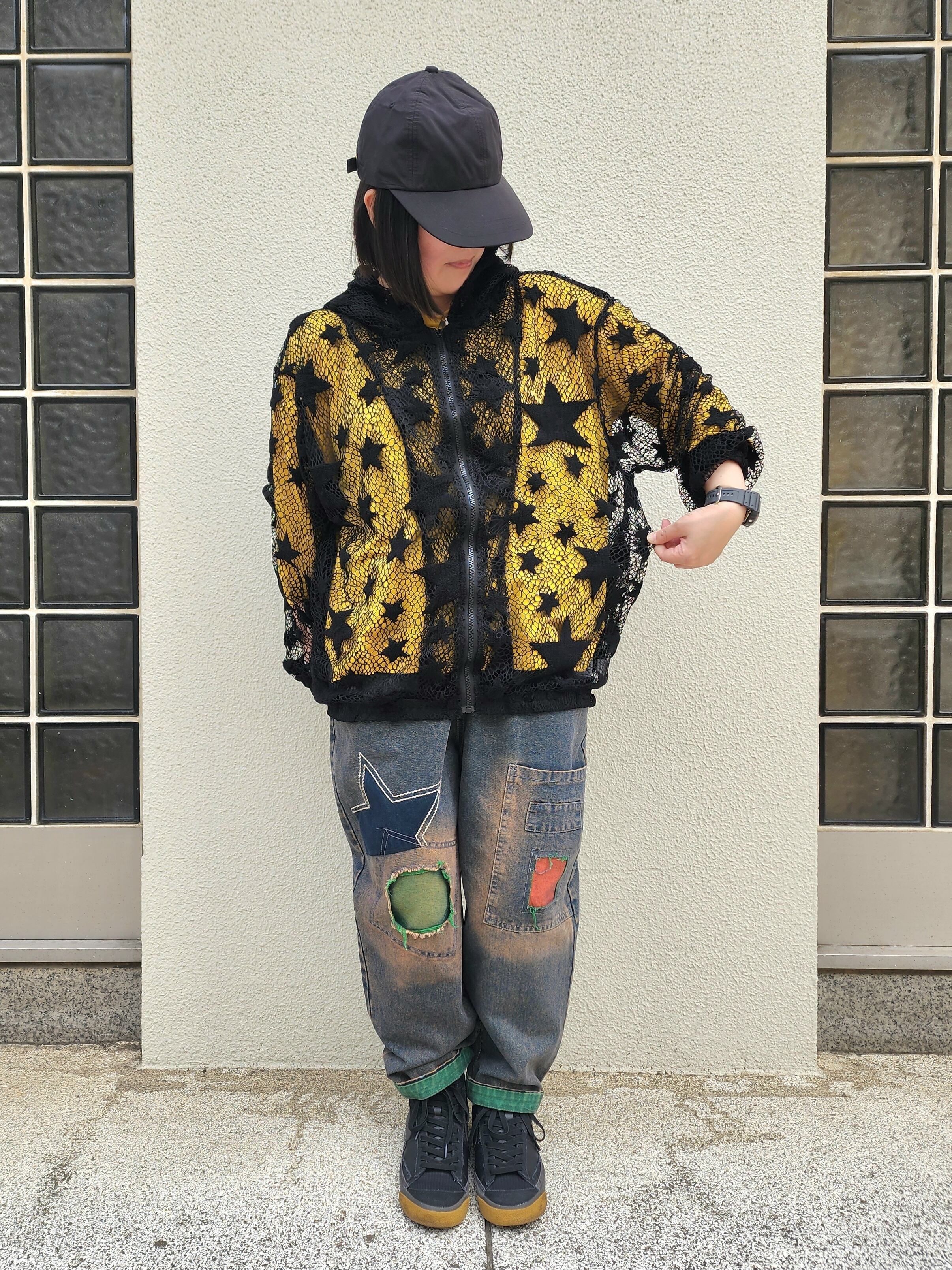 遊び心があるデザインで中に着る物の色で違った印象になるので、色々組み合わせてみるのも楽しいアイテムです。
