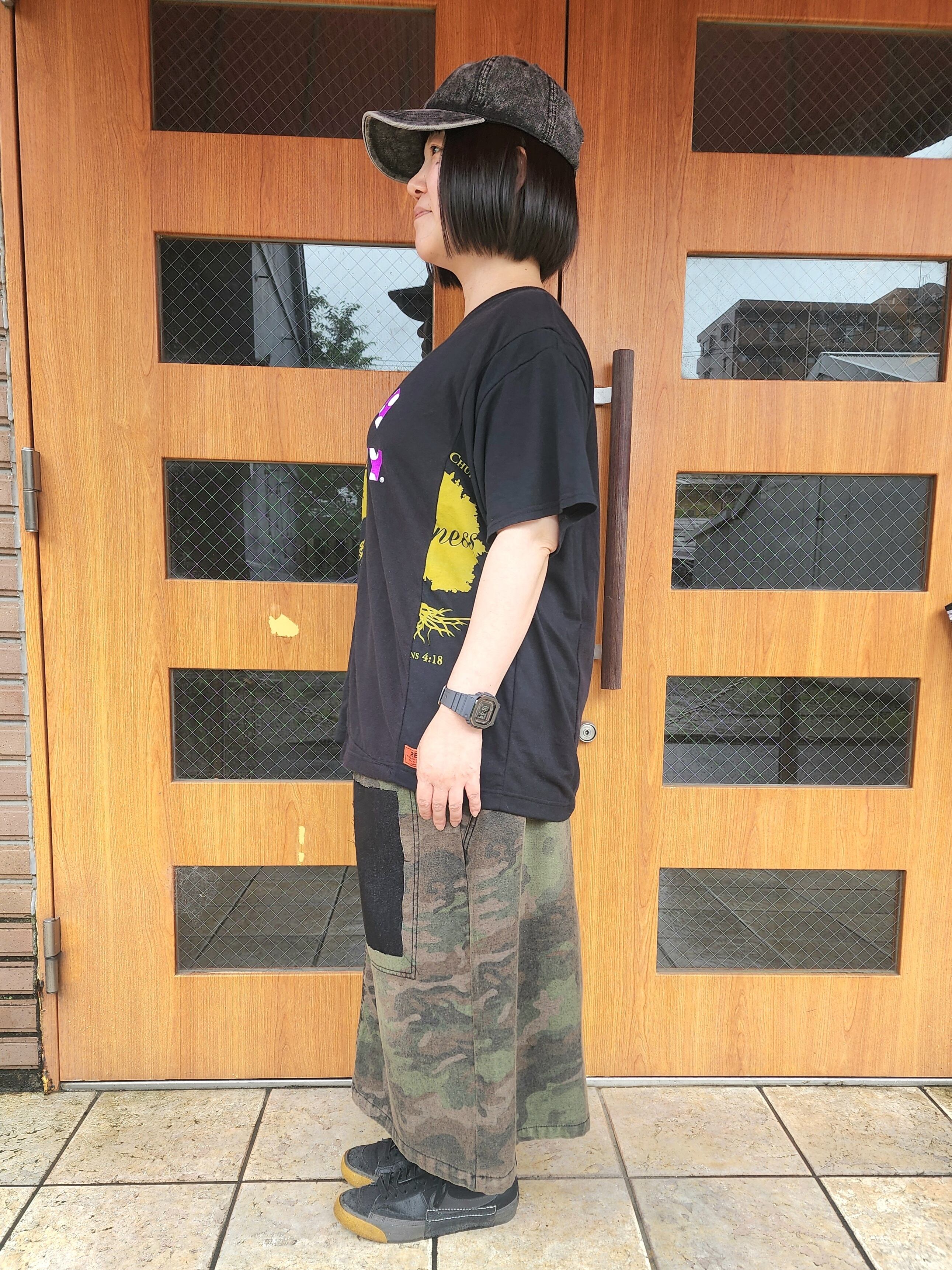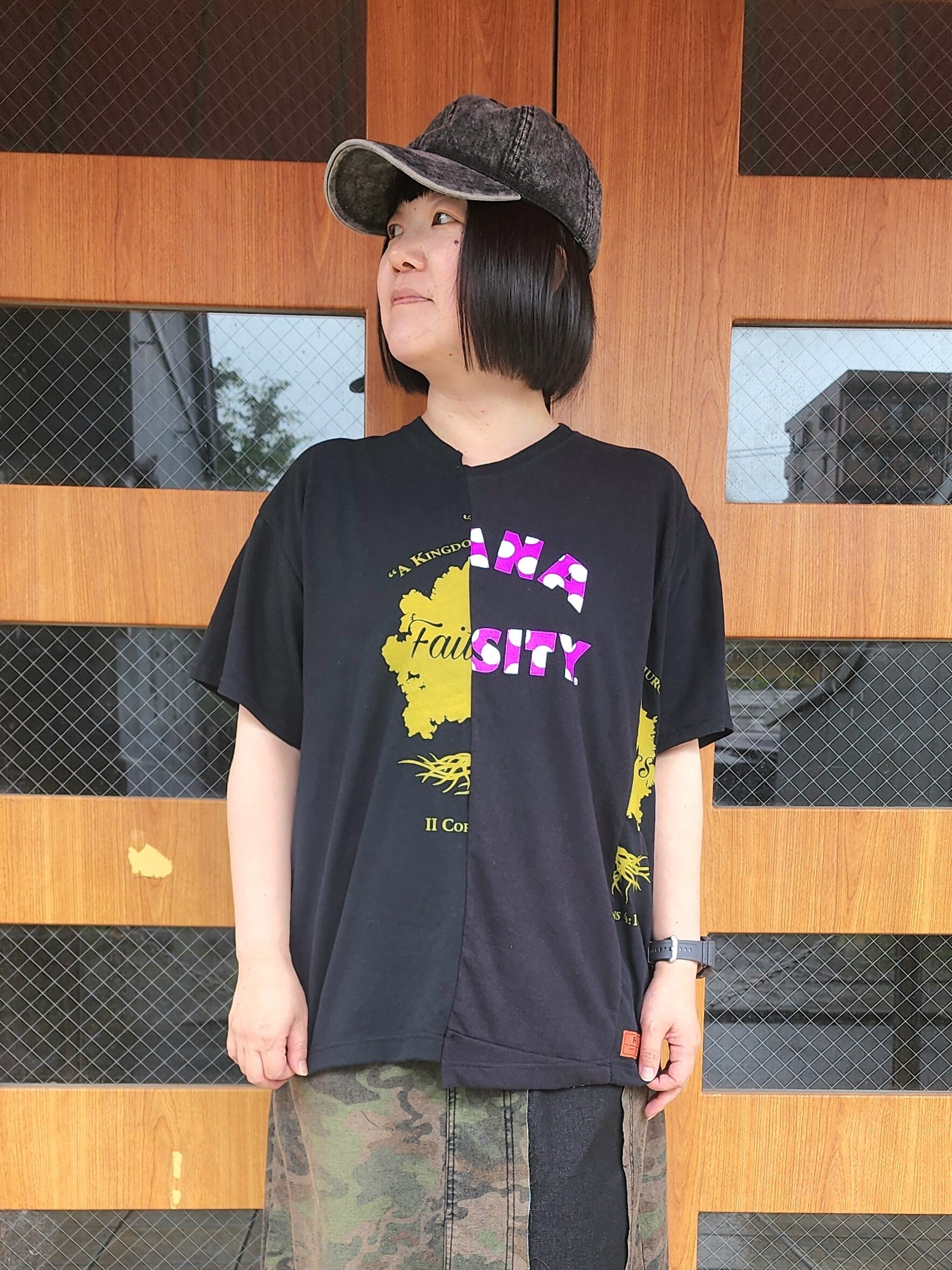 古着Tシャツを2枚使って切り替えたリメイクT。
