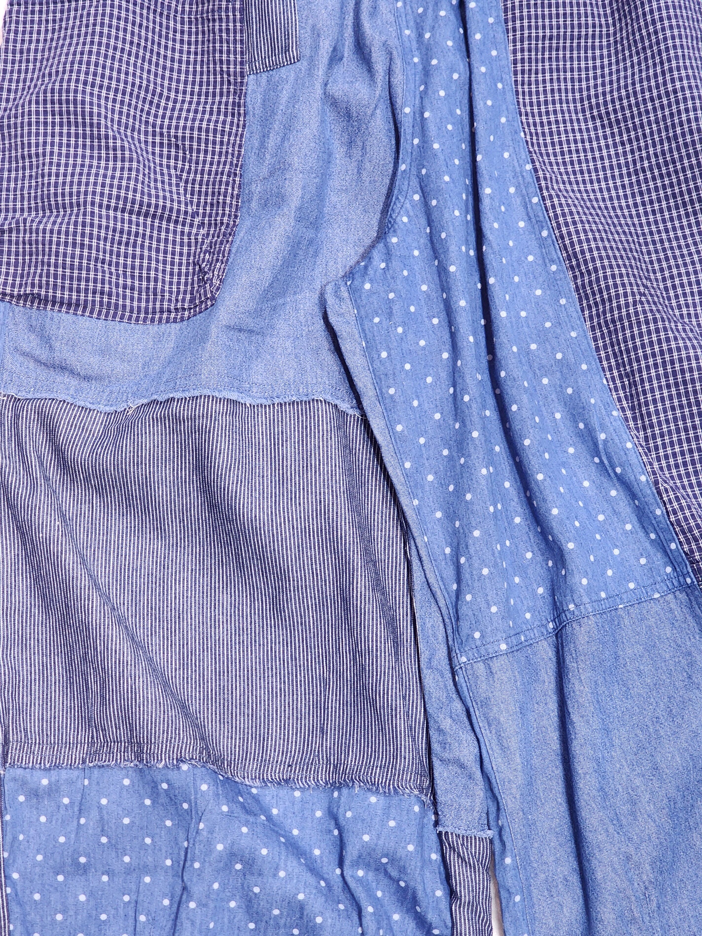 ブルー系でチェック・ストライプ・ドット・無地の生地を組み合わせた贅沢な一枚です。