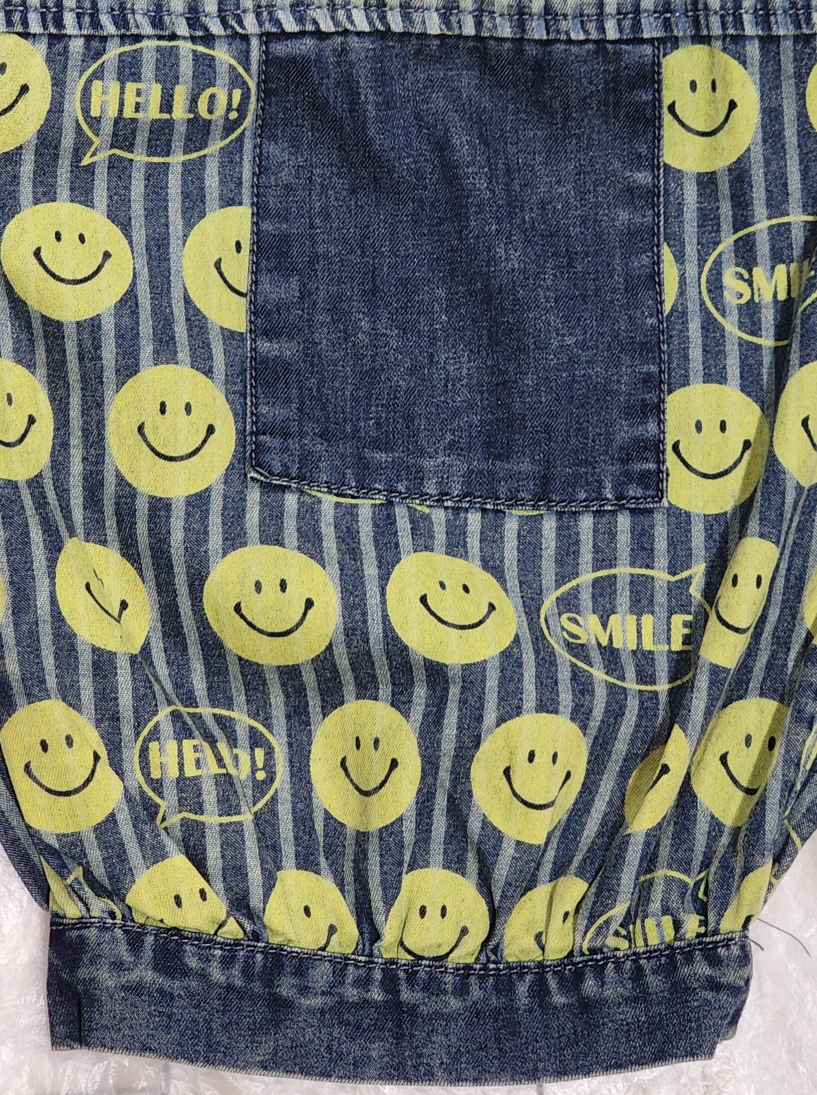 こちらはブルーのデニムにイエローのニコちゃんが映えた人気の一枚です。