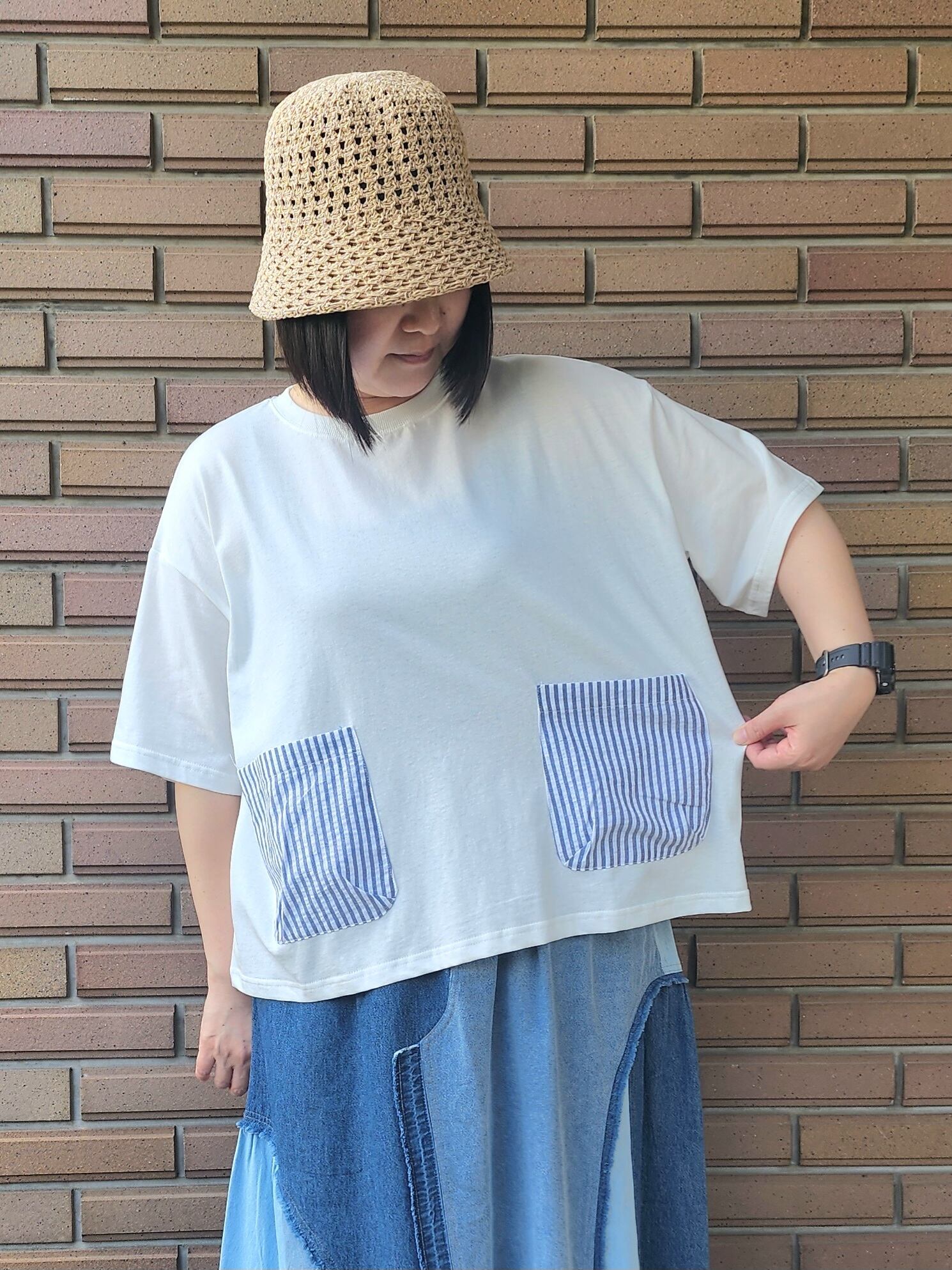 ストライプのポッケがポイントで、機能性と可愛さを兼ね備えたアイテムです。