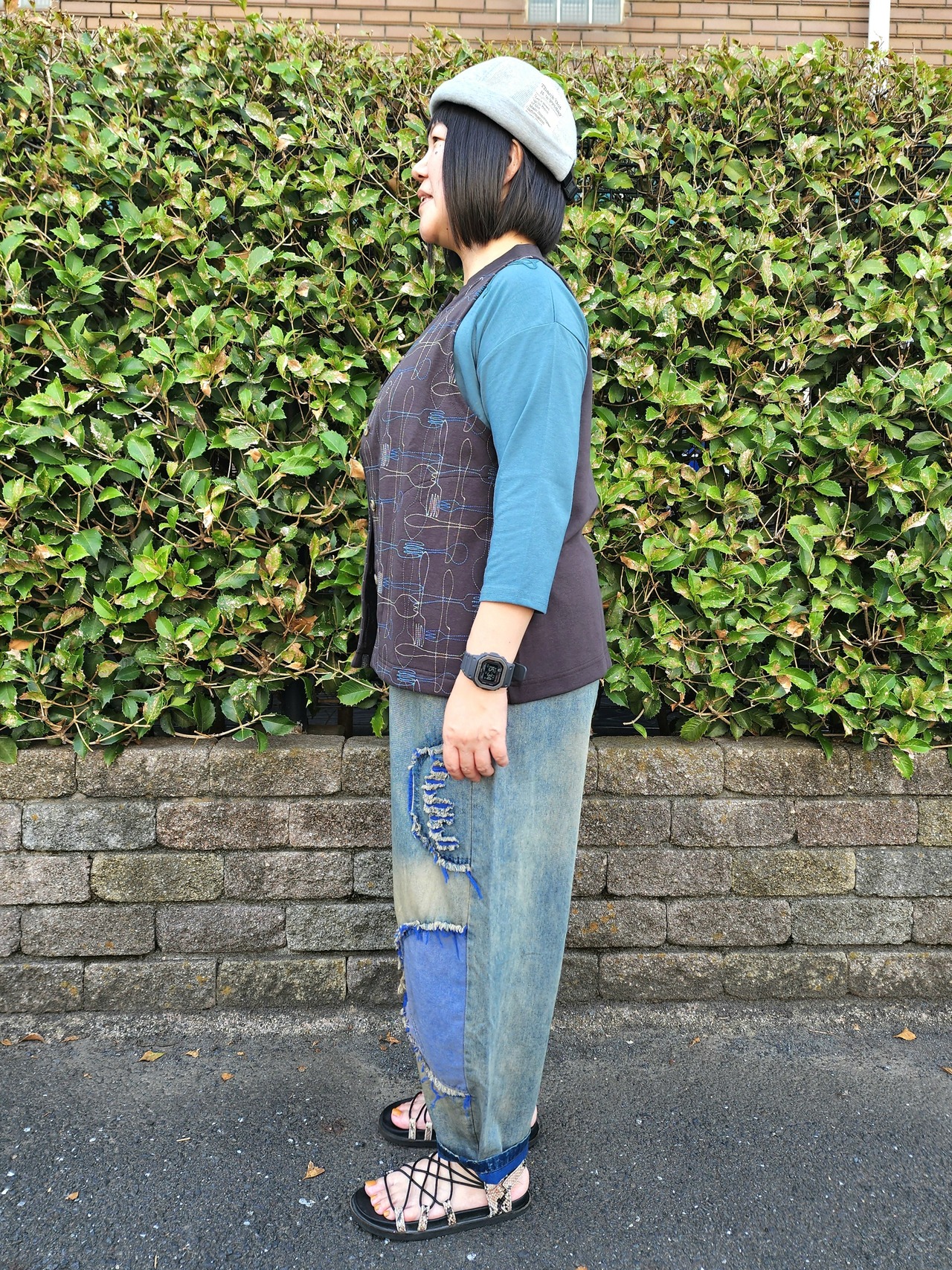 裏がブルーになっているので、裾を折り返してはいてもいいアクセントになります◎
