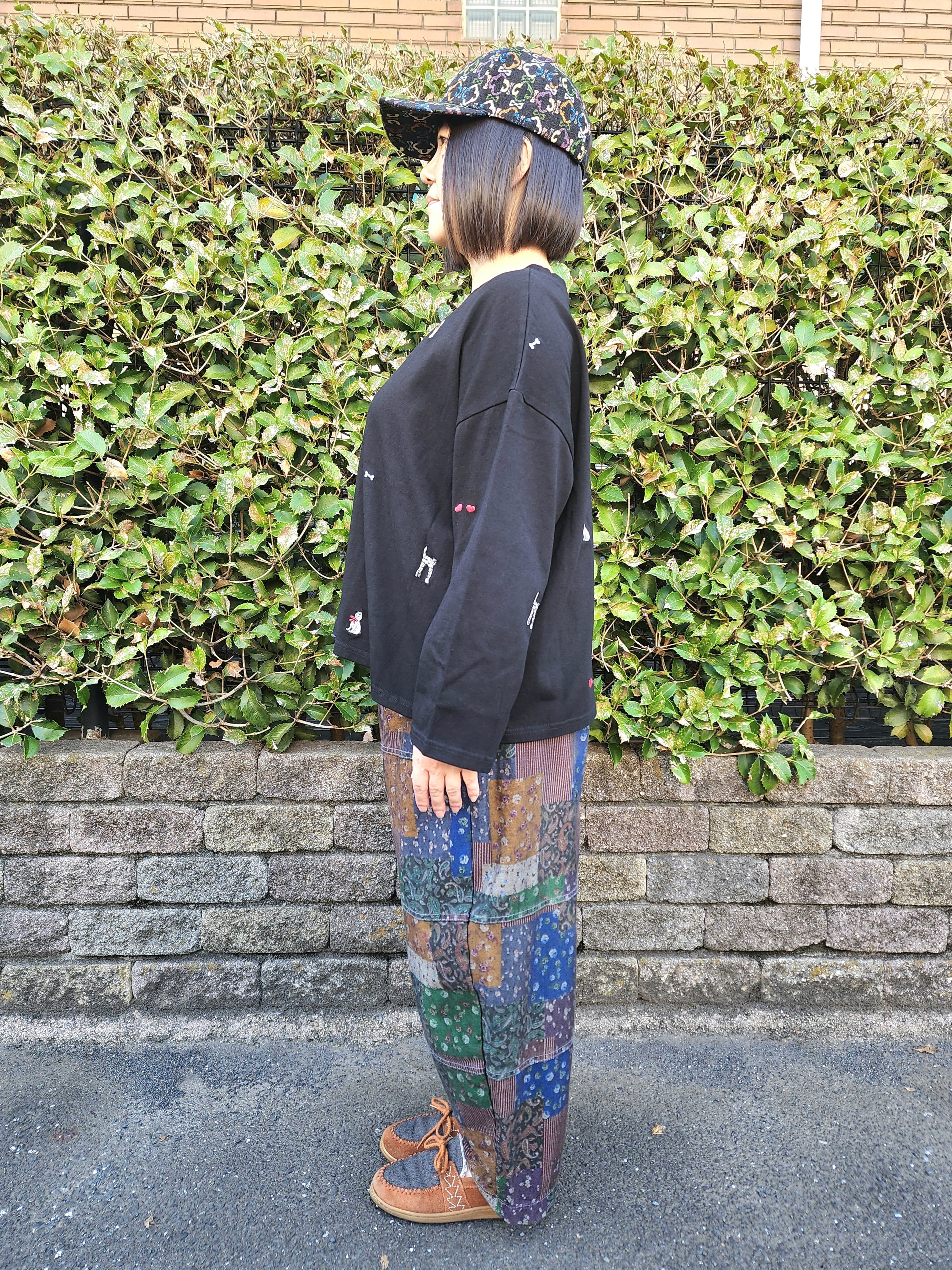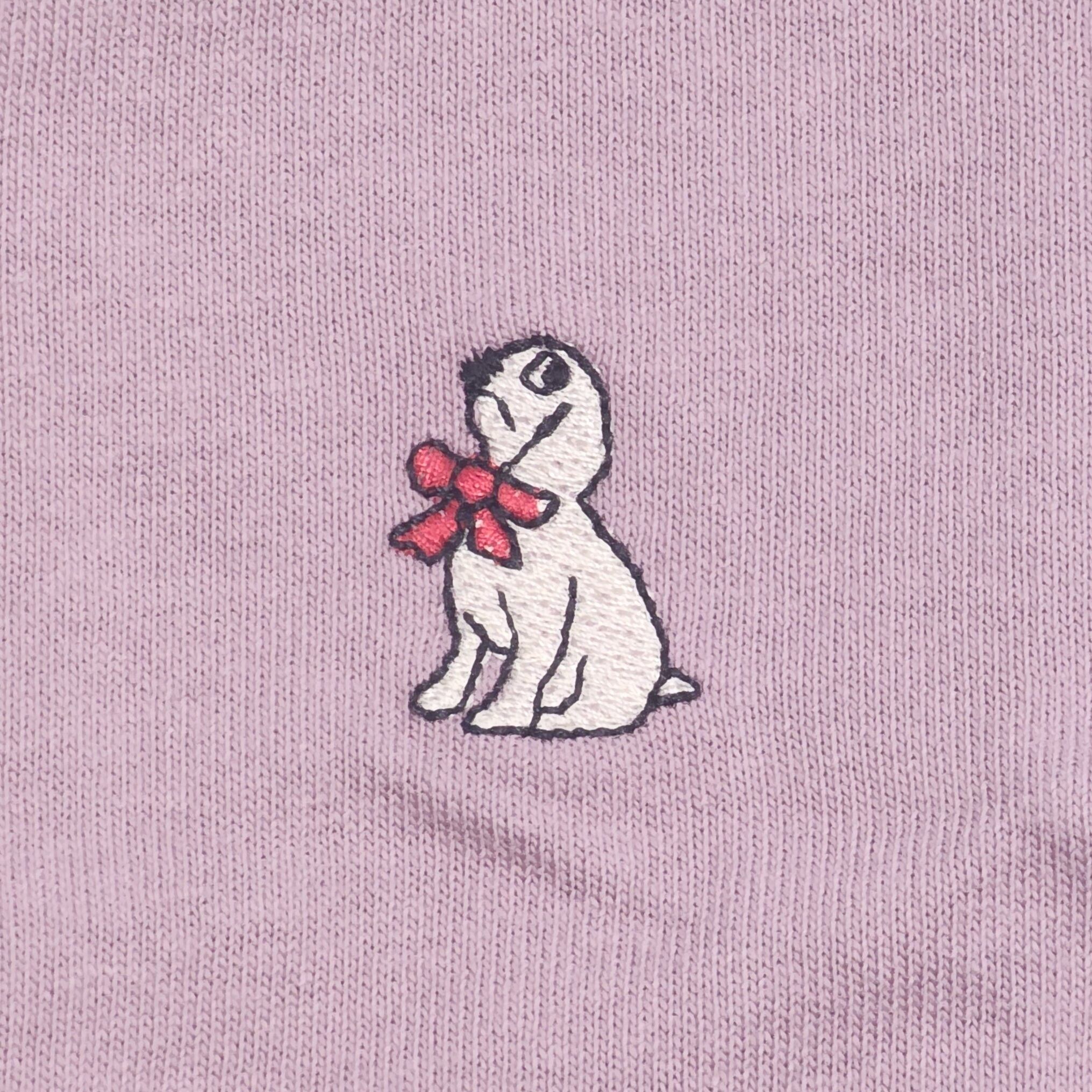 脚の長~い猫ちゃんと蝶ネクタイわんちゃんの刺繍入りプルオーバー。