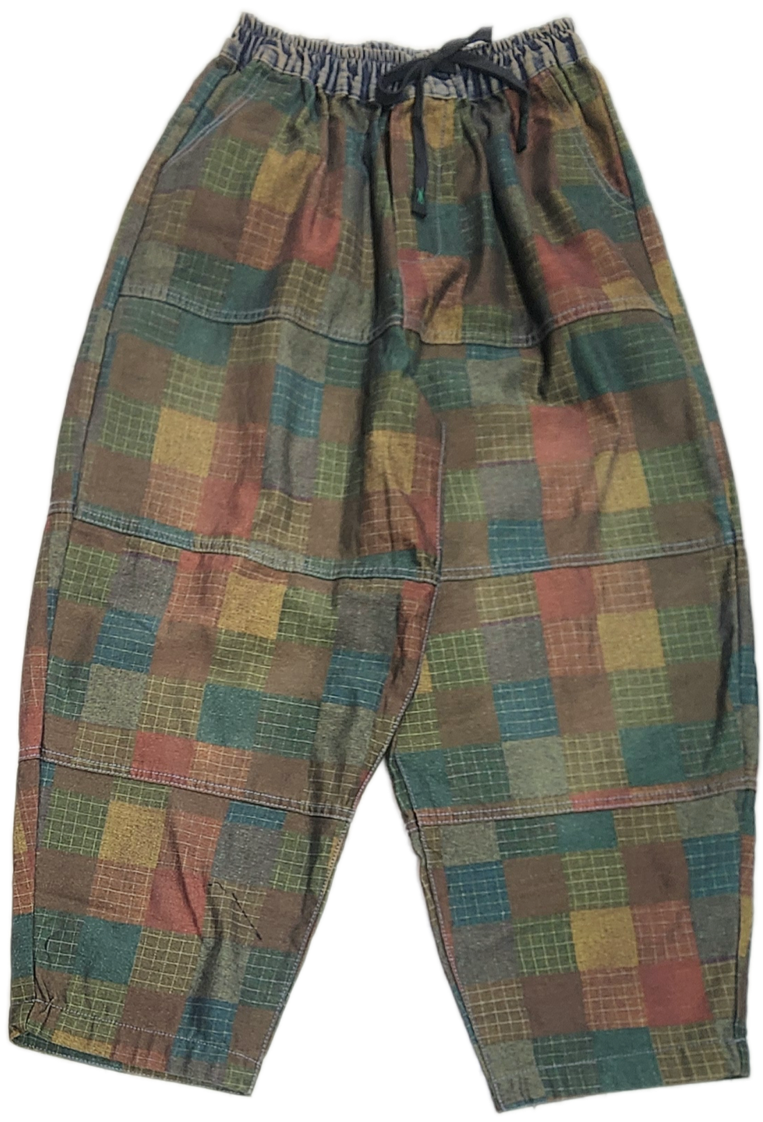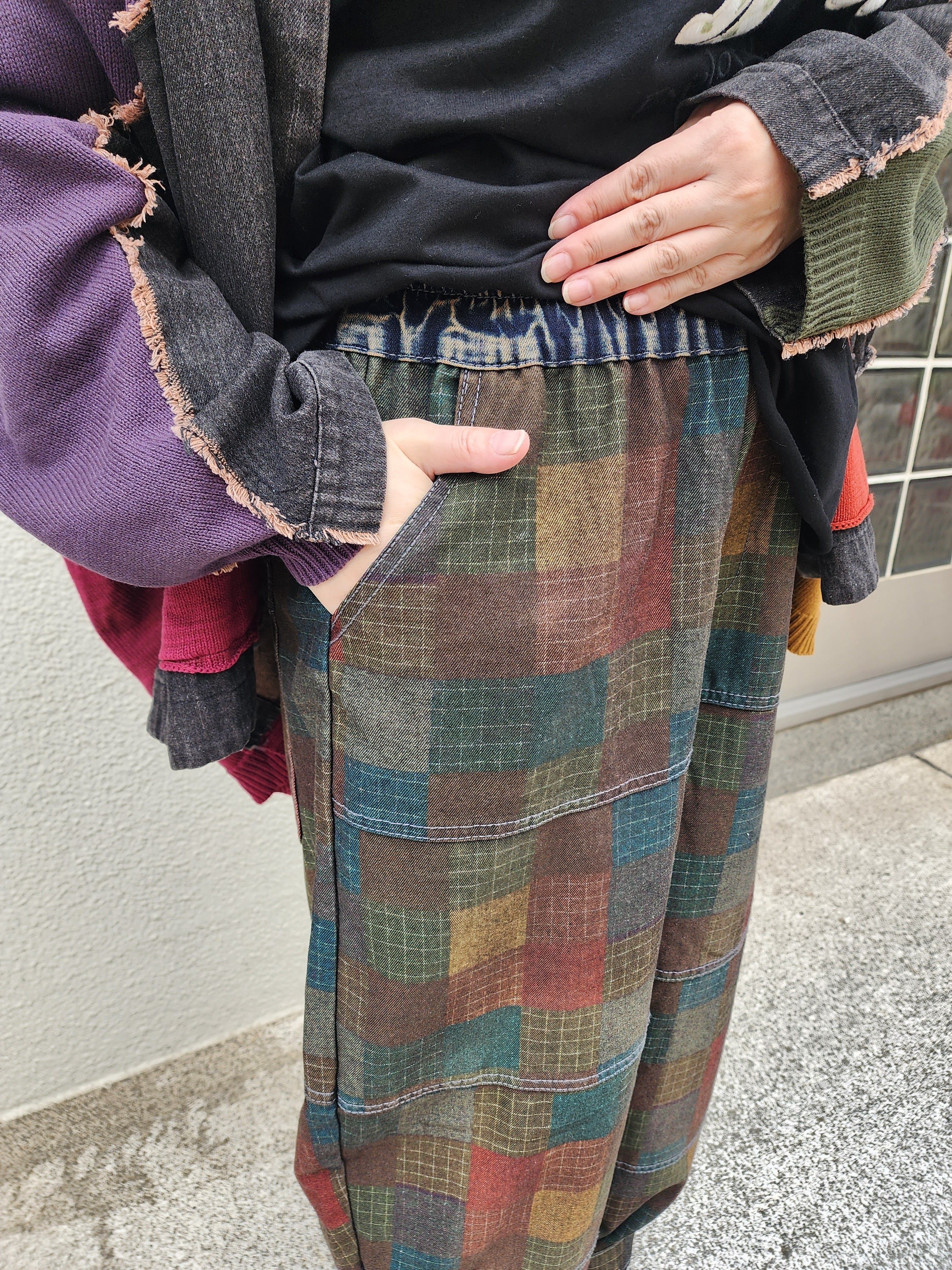 カラフルなチェックや切り替えが個性的で可愛いパンツ。