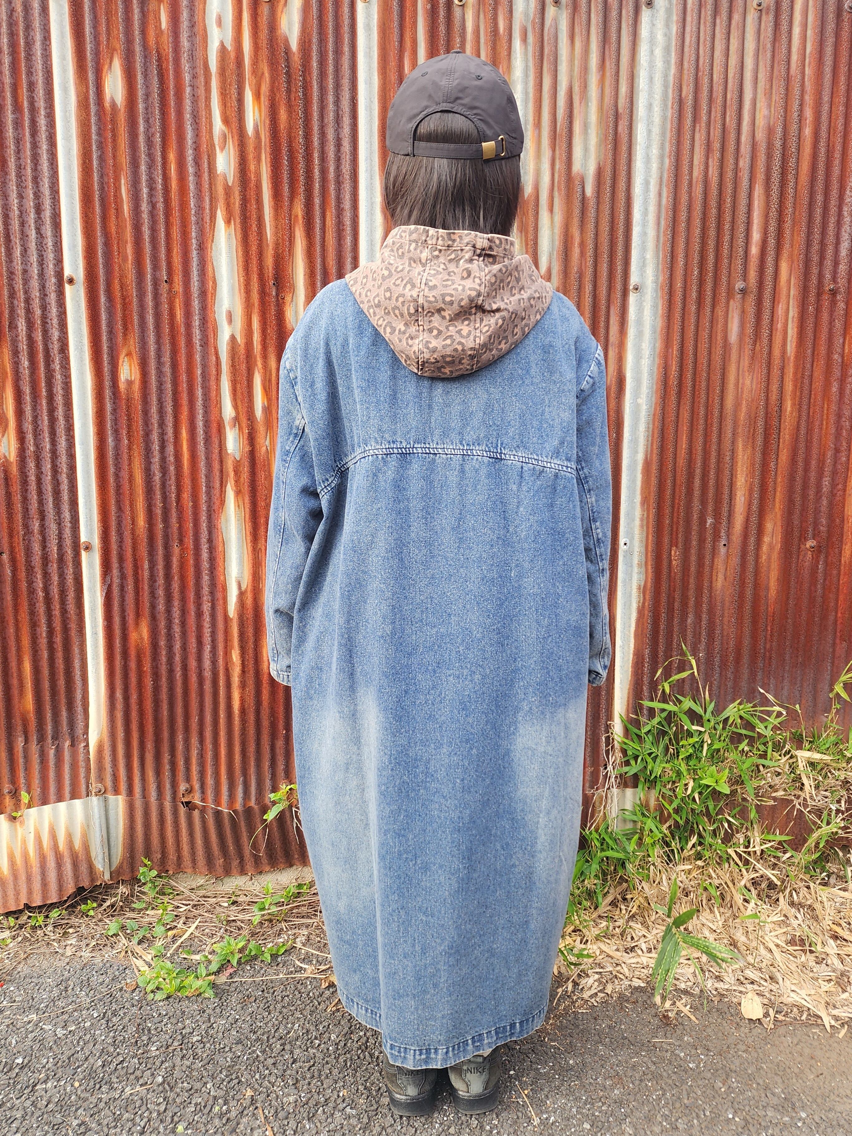 レオパード柄のフードに左右でカラーの違ったポケット、袖口は斜めにコーデュロイで切り替えて、個性的で目を引くデザインになっています。
