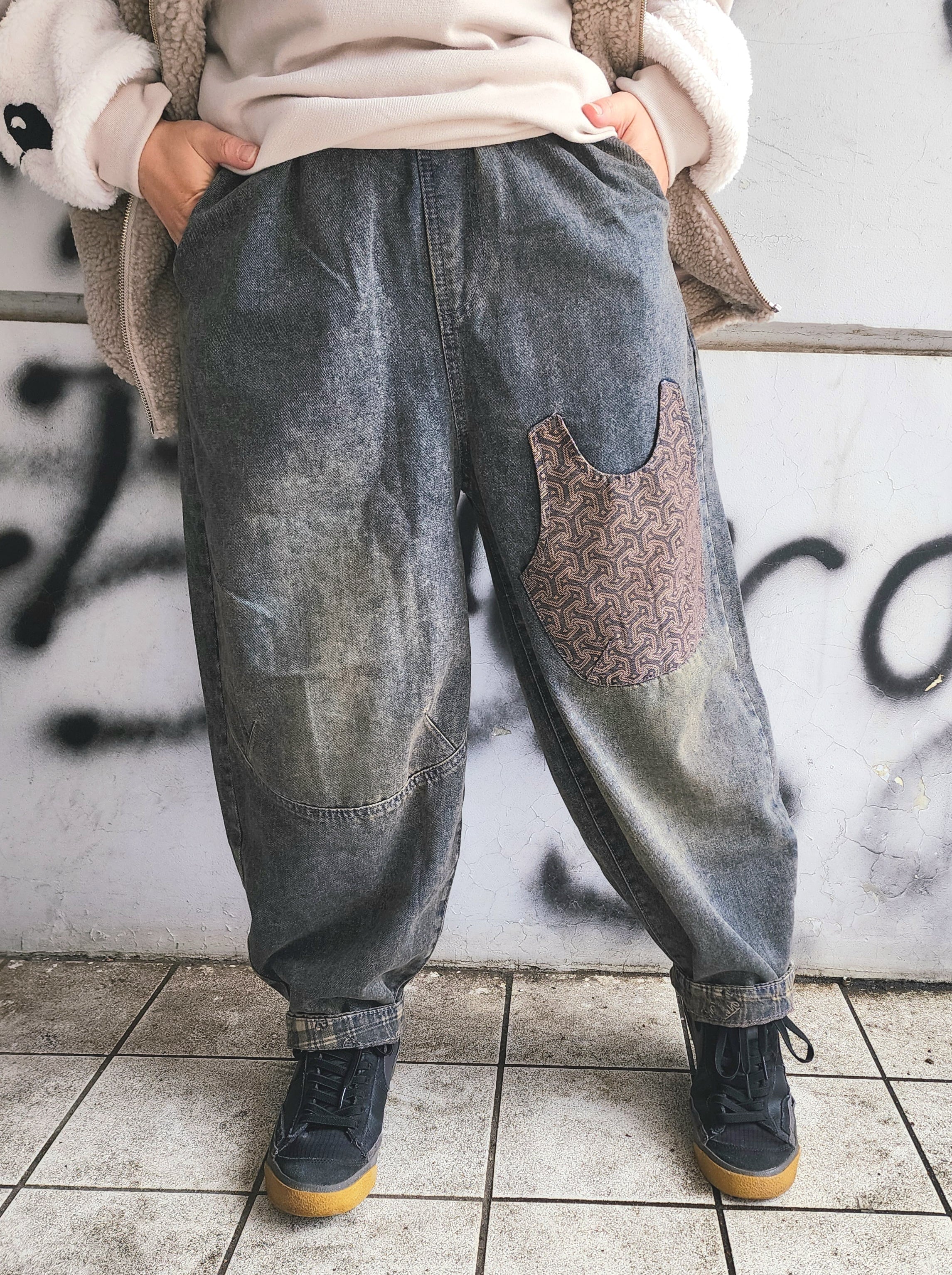 腰まわりも膝まわりもゆったりで穿きやすく、中にタイツなども合わせやすくなっているので、ロングシーズン使えて重宝します。
