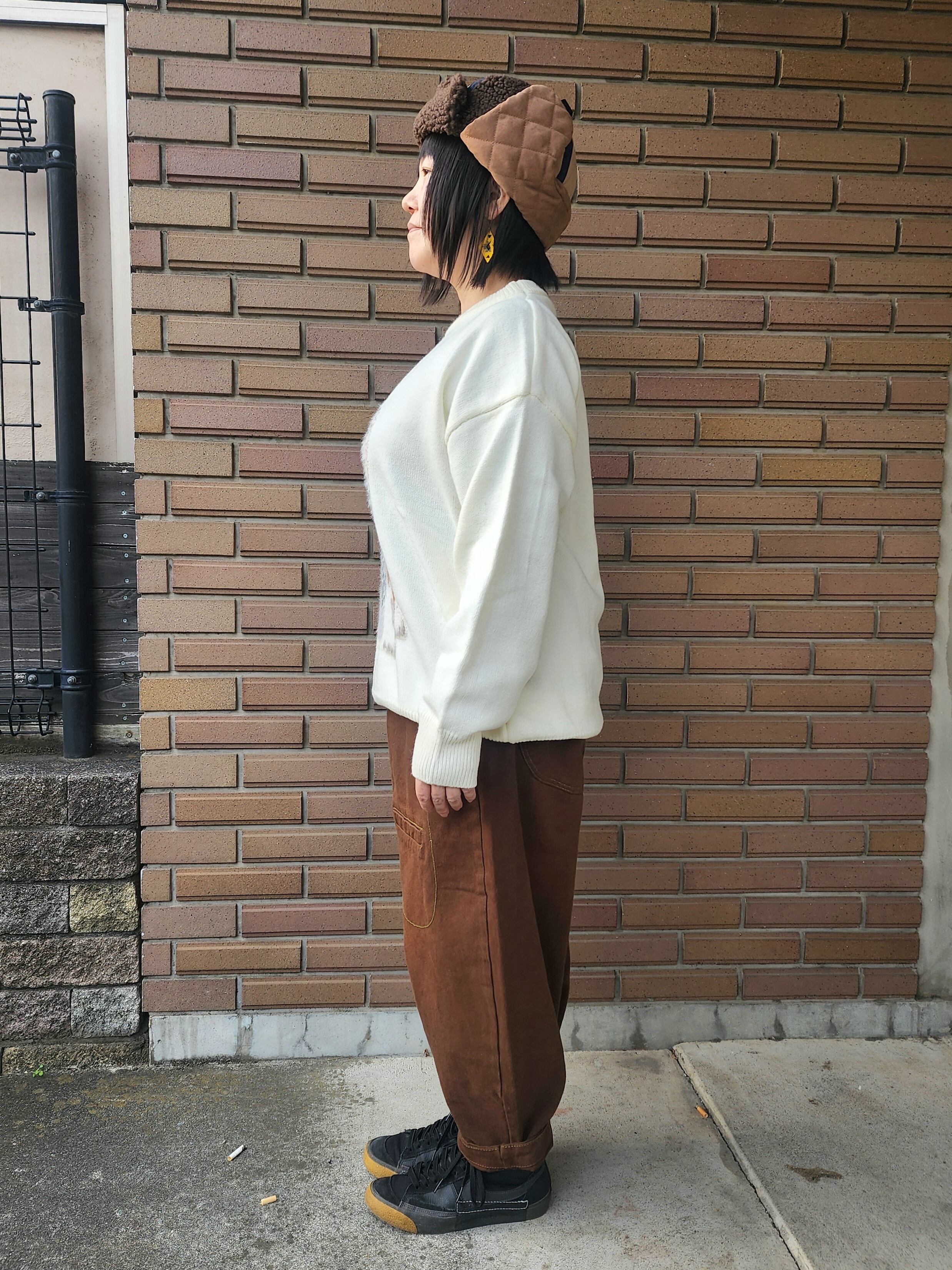 首はさほど開かないデザインですが、中にタートルネックやシャツなどを合わせて着るのも可愛いです。