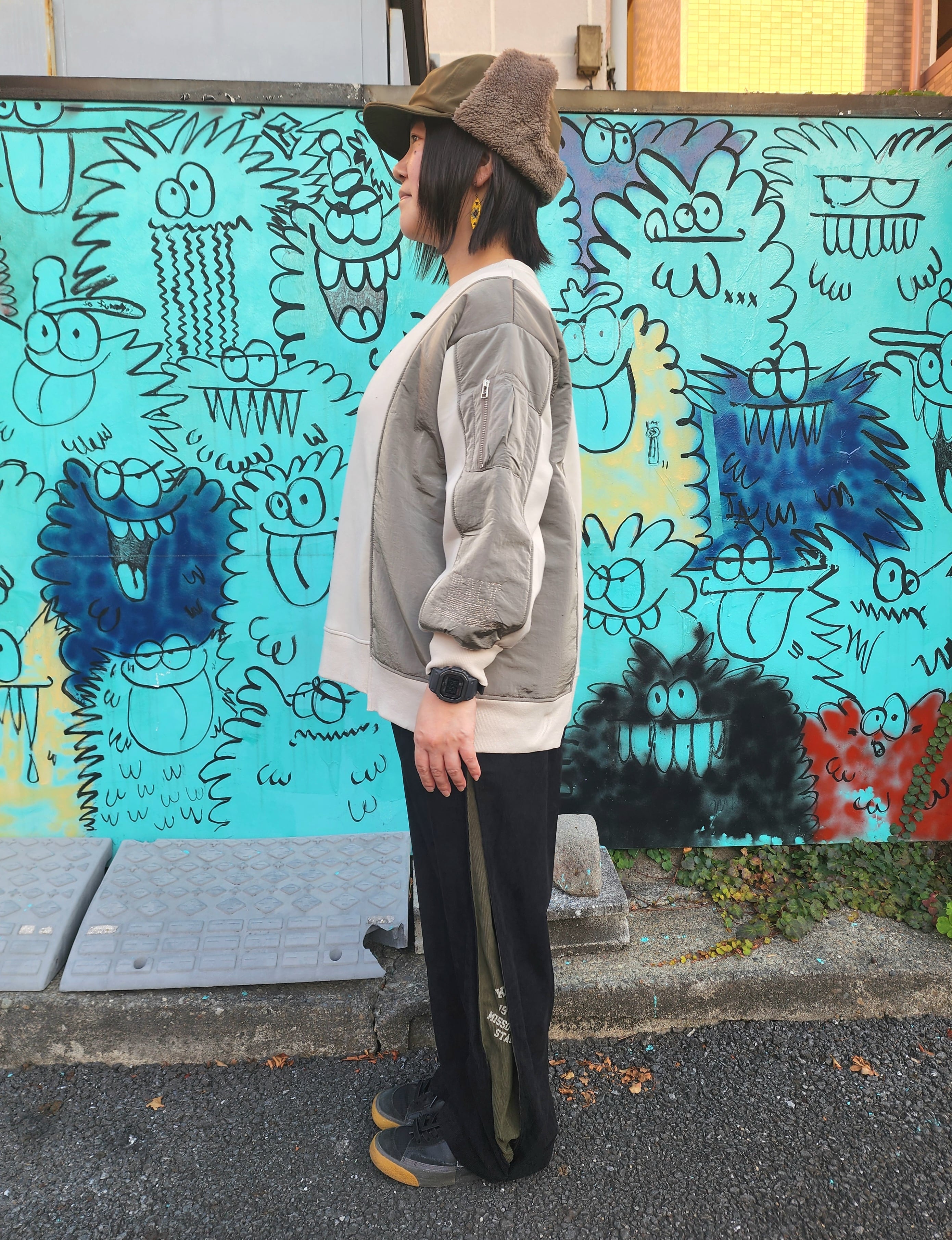 MA-1ブルゾンの要素を取り入れて、ほんのりミリタリーテイストのプルオーバー。
