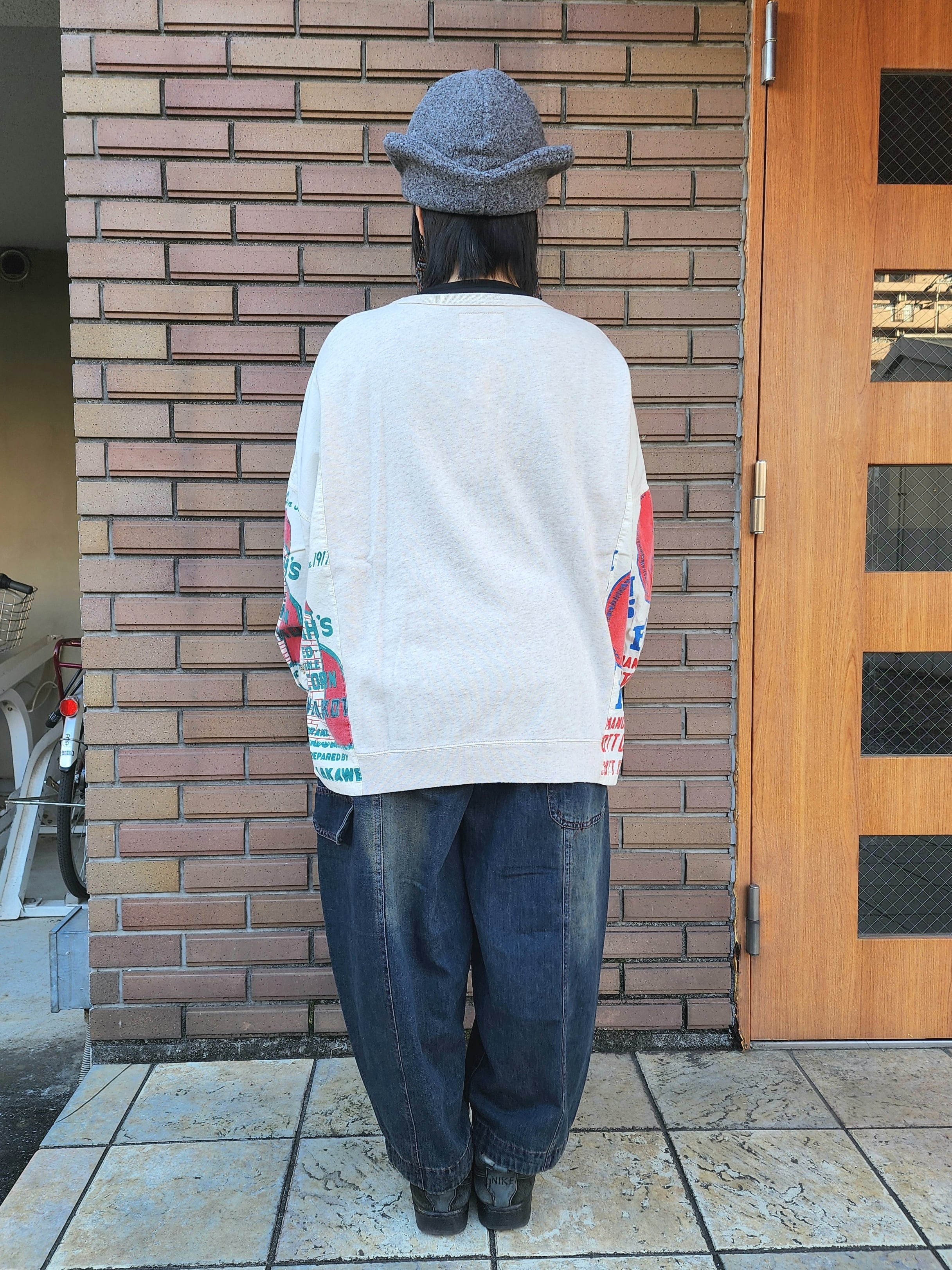 〈Lime.inc〉袖をプリント布帛生地、身頃をミニ裏毛で切り替えたプルオーバー。