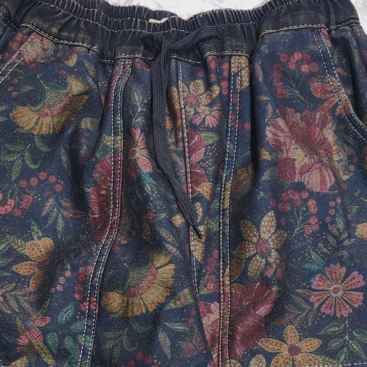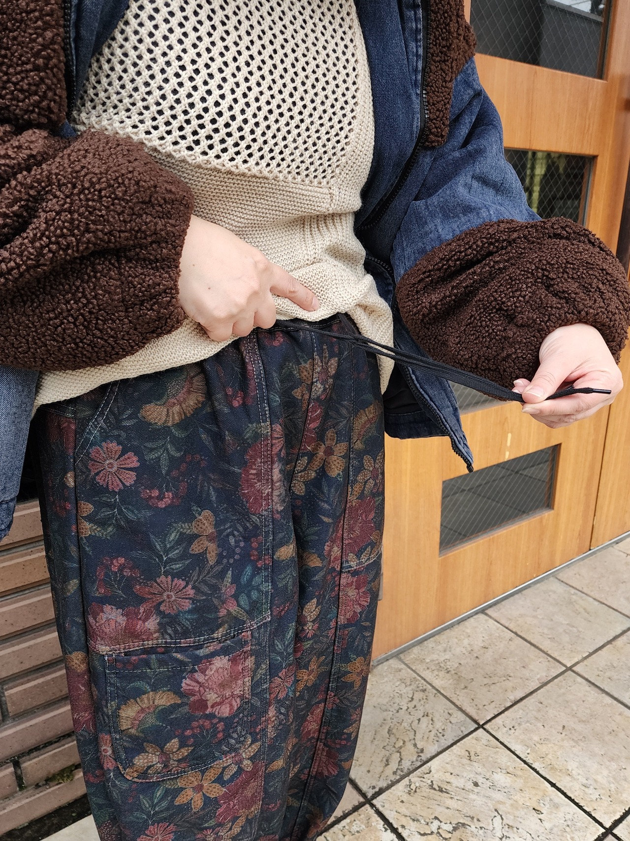 ウエスト総ゴムで紐も通ったデザインで、幅広いサイズに対応しています。