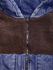 デニム×ボア切り替えの中綿入りアウター。