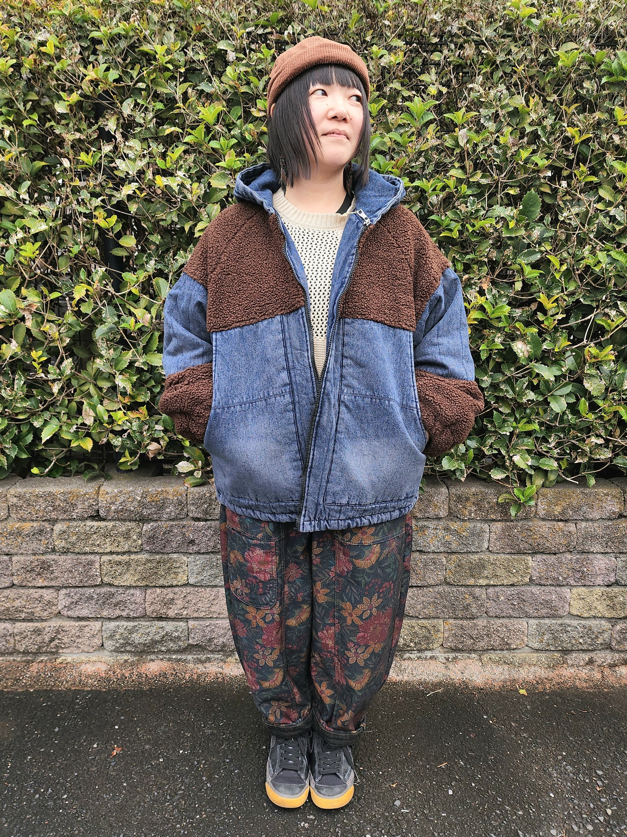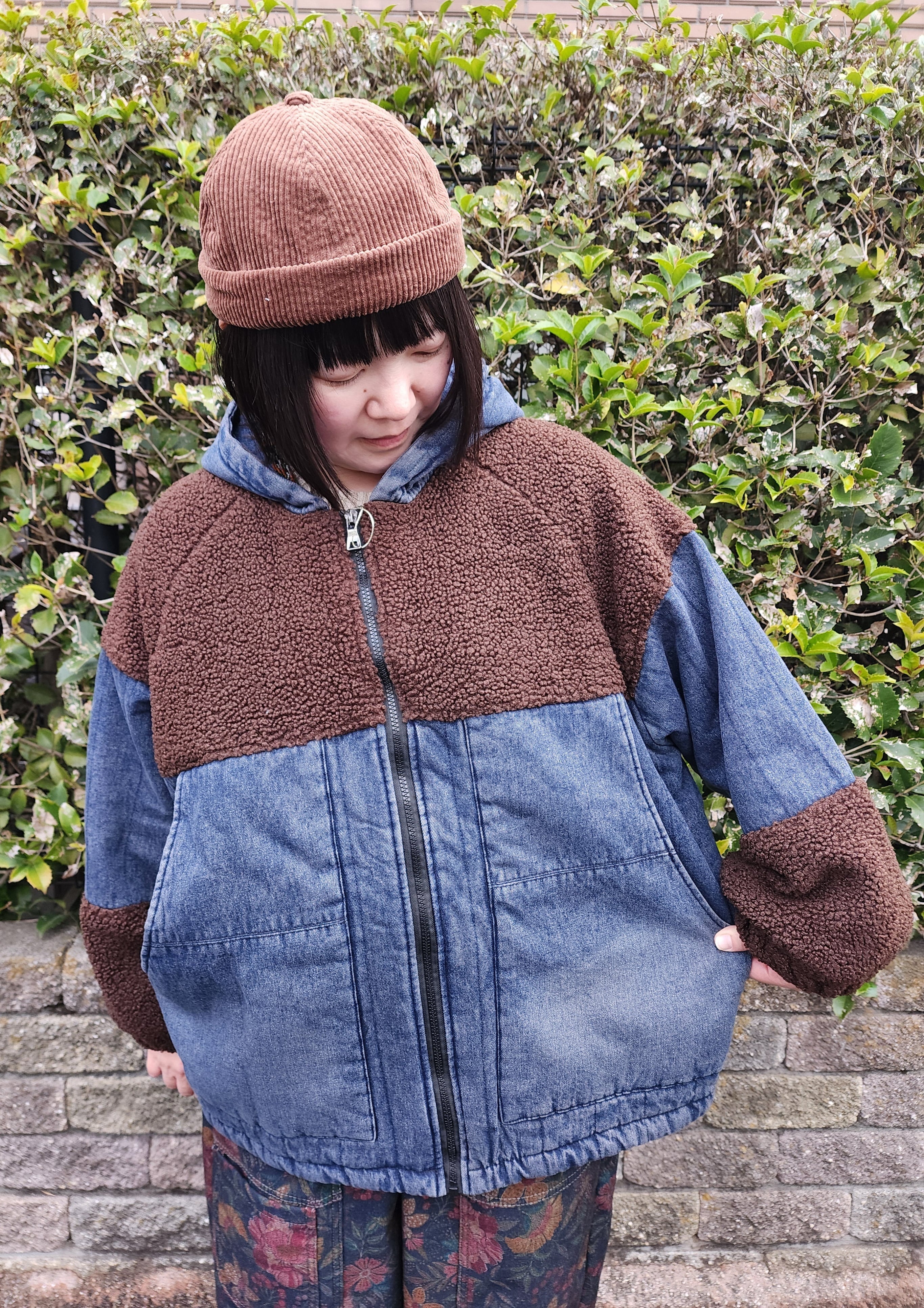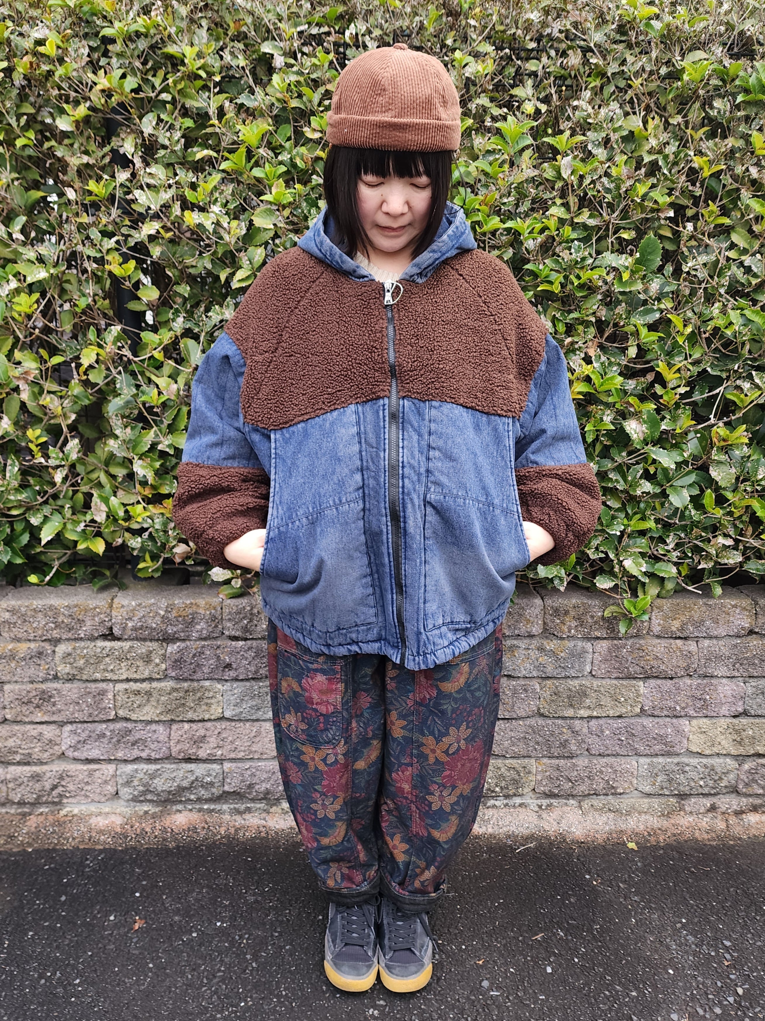 まるっとした袖口のボア切り替えや全体に入ったデニムのステッチなど、とてもいい雰囲気の1枚です。