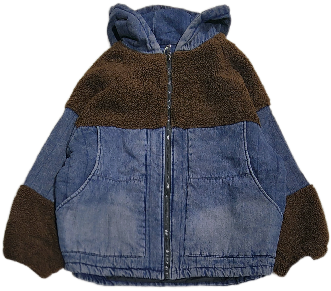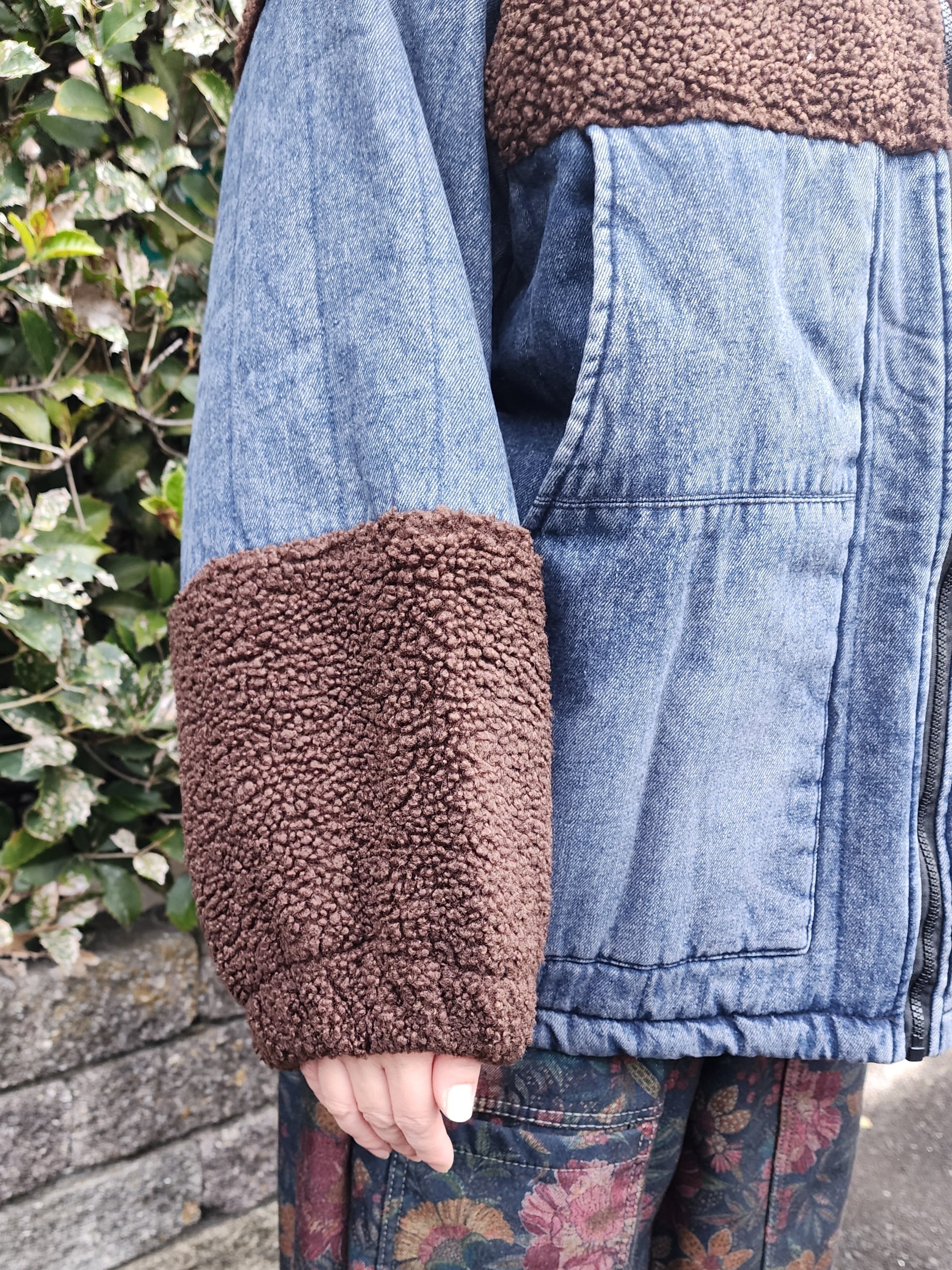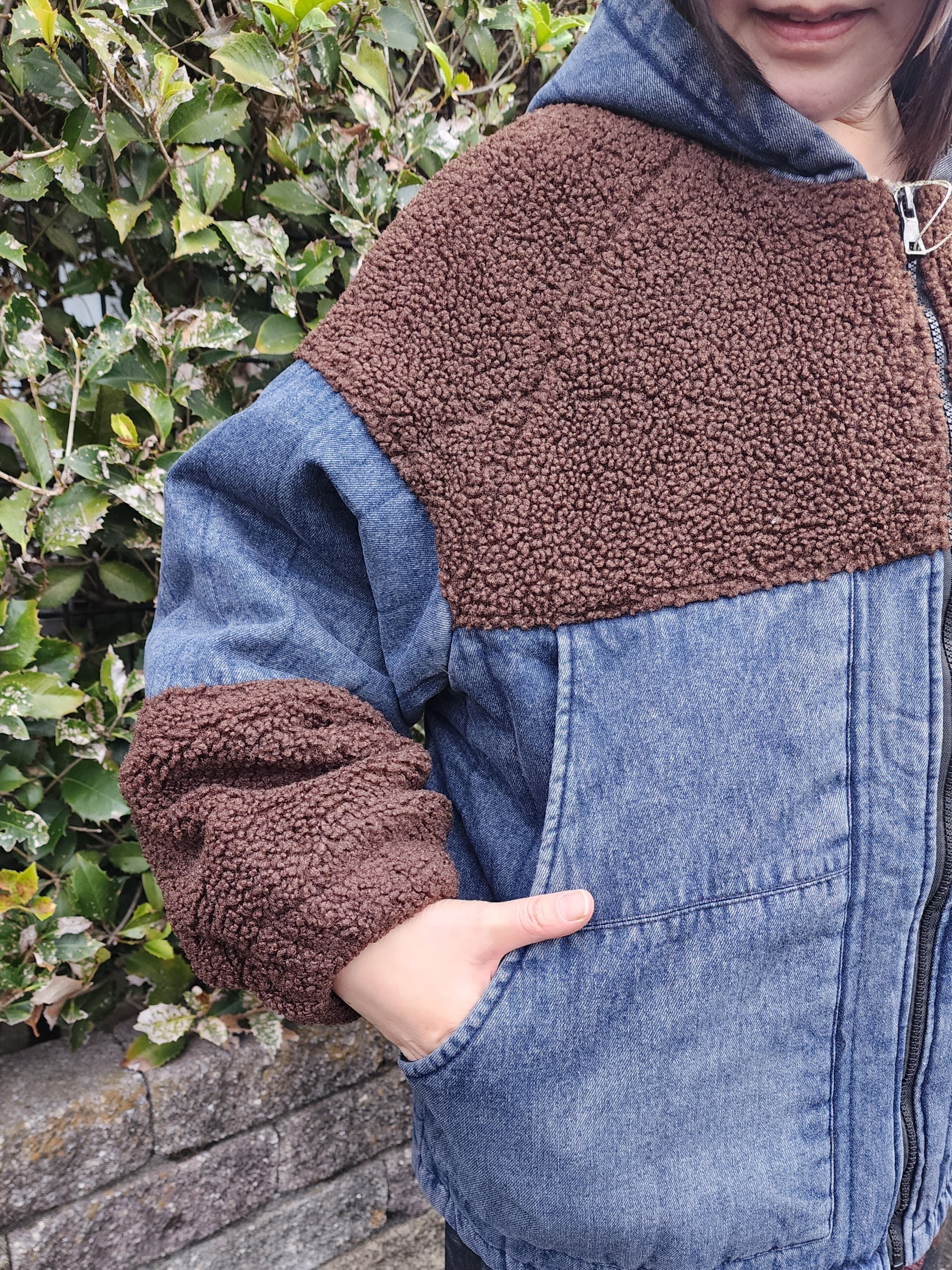 まるっとした袖口のボア切り替えや全体に入ったデニムのステッチなど、とてもいい雰囲気の1枚です。