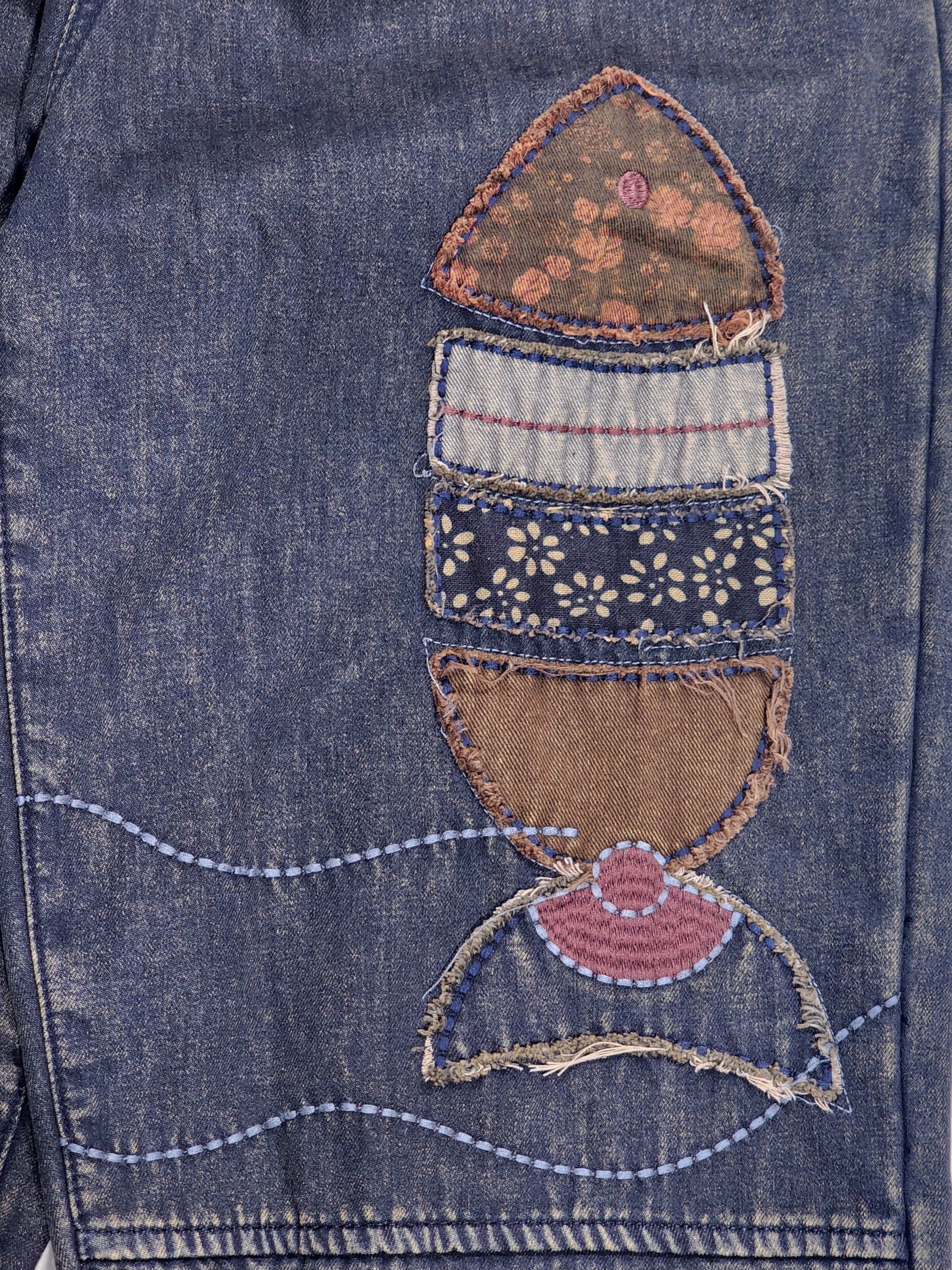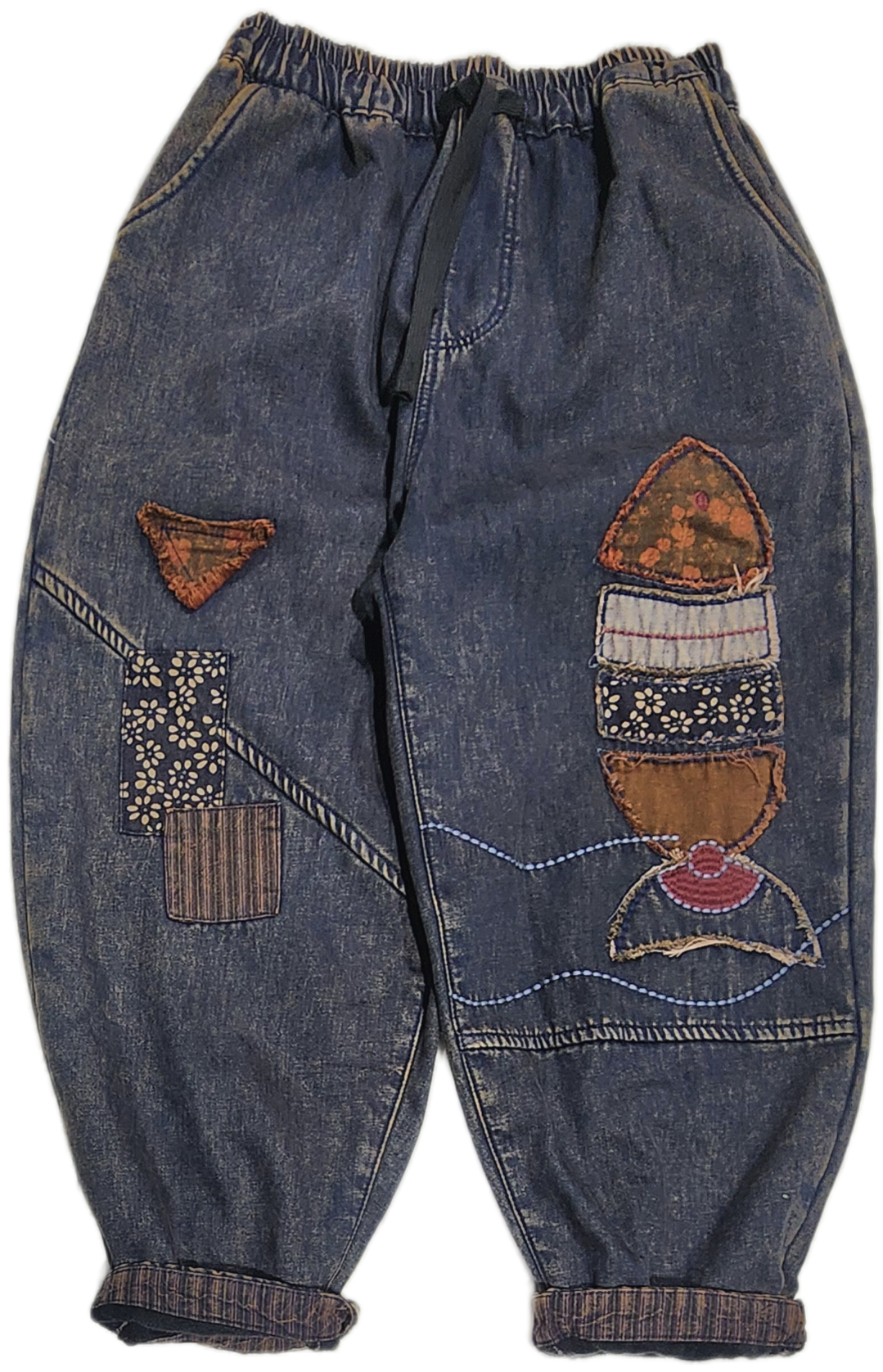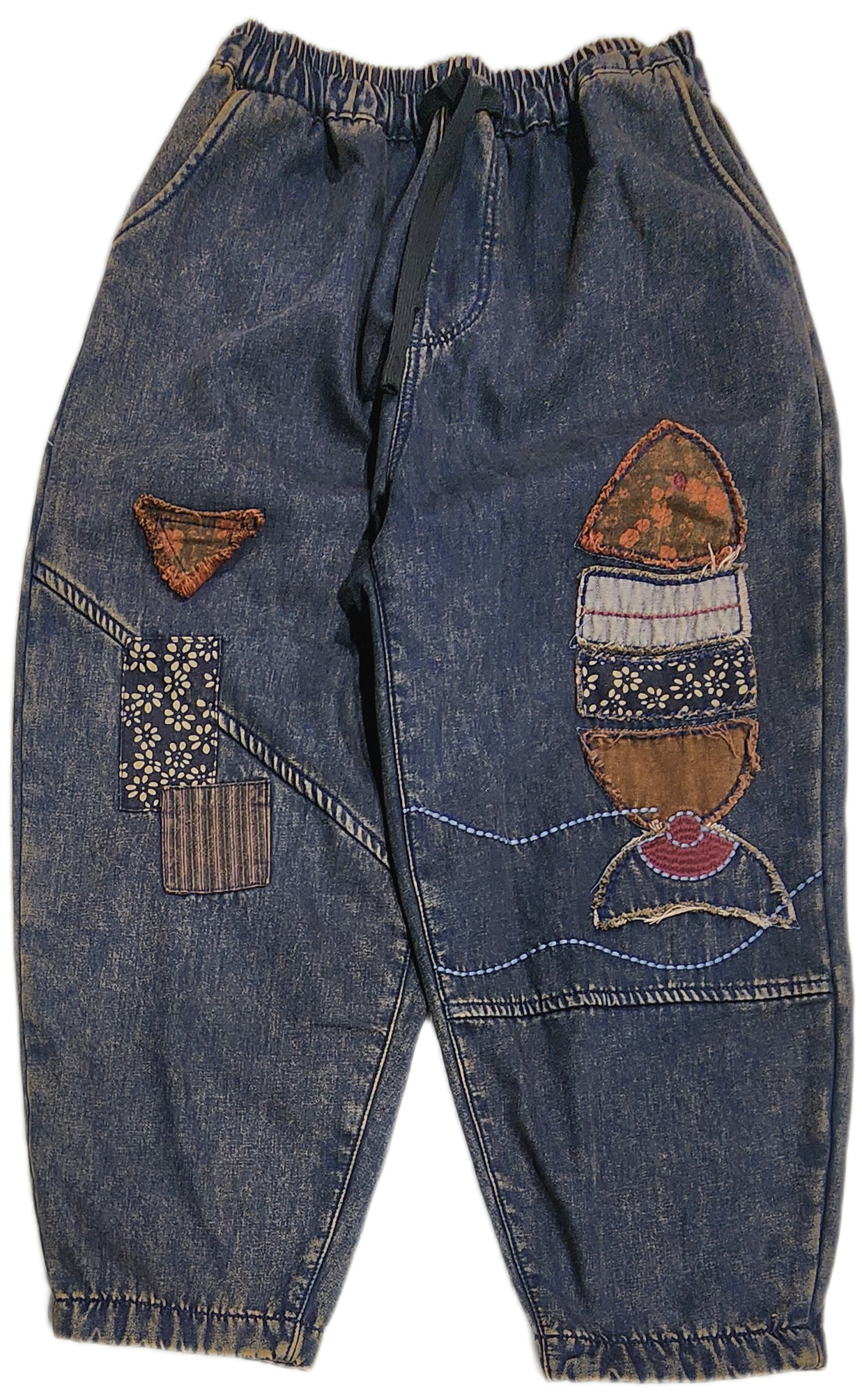 ビンテージ風の加工がよりお魚パッチワークの良さを引き立てた1枚になっています◎