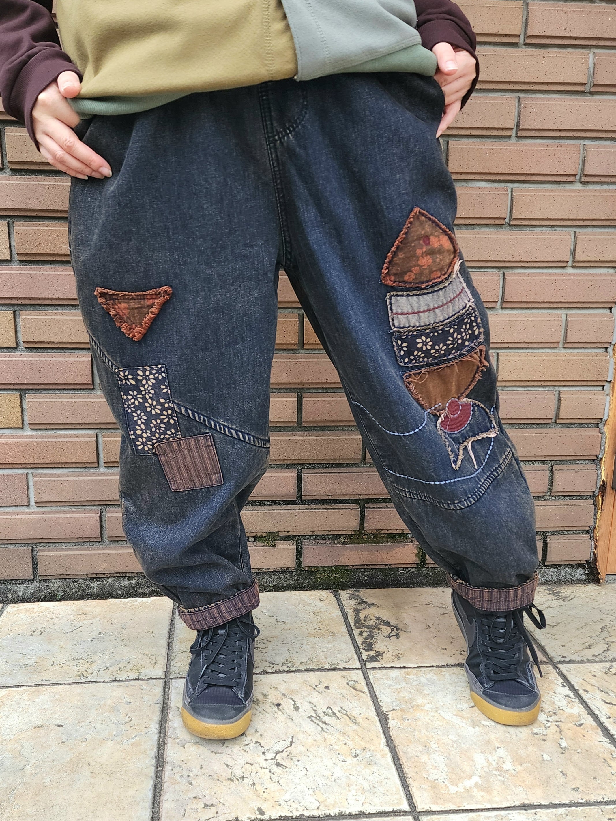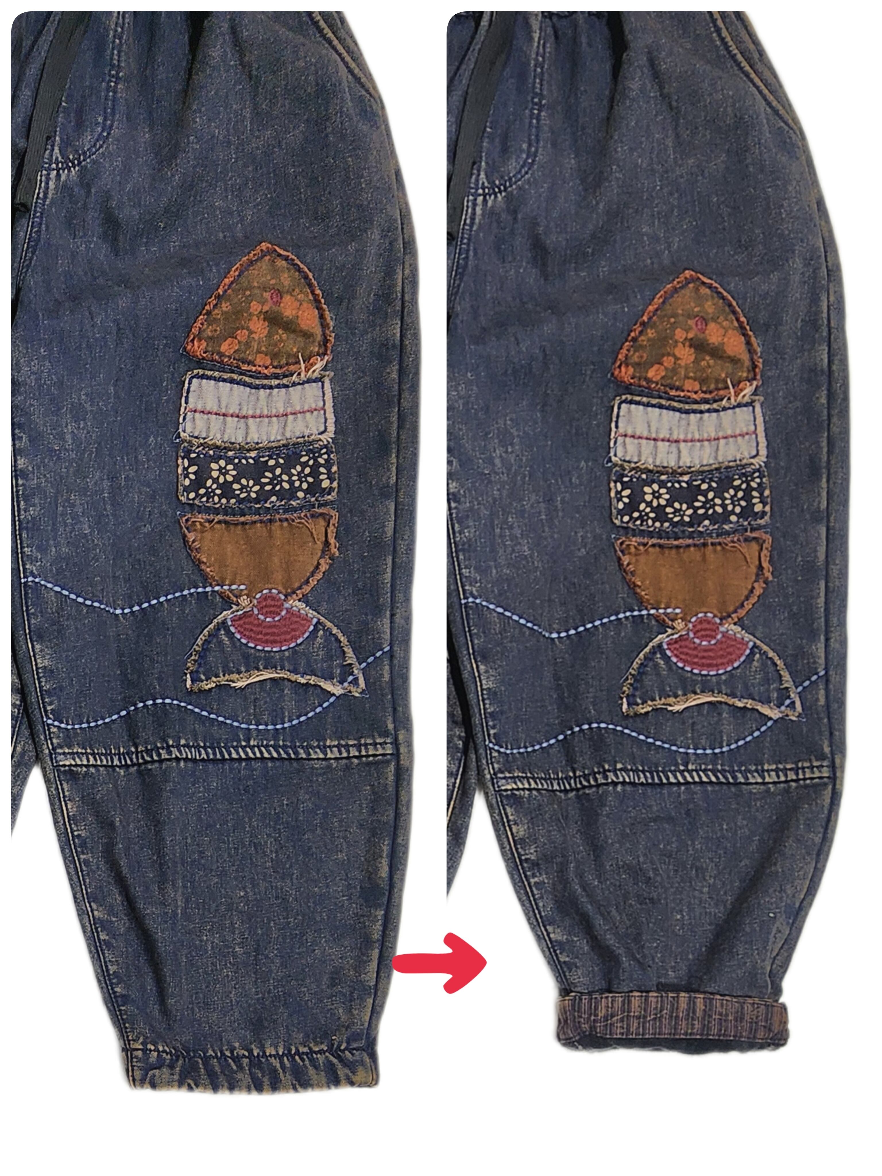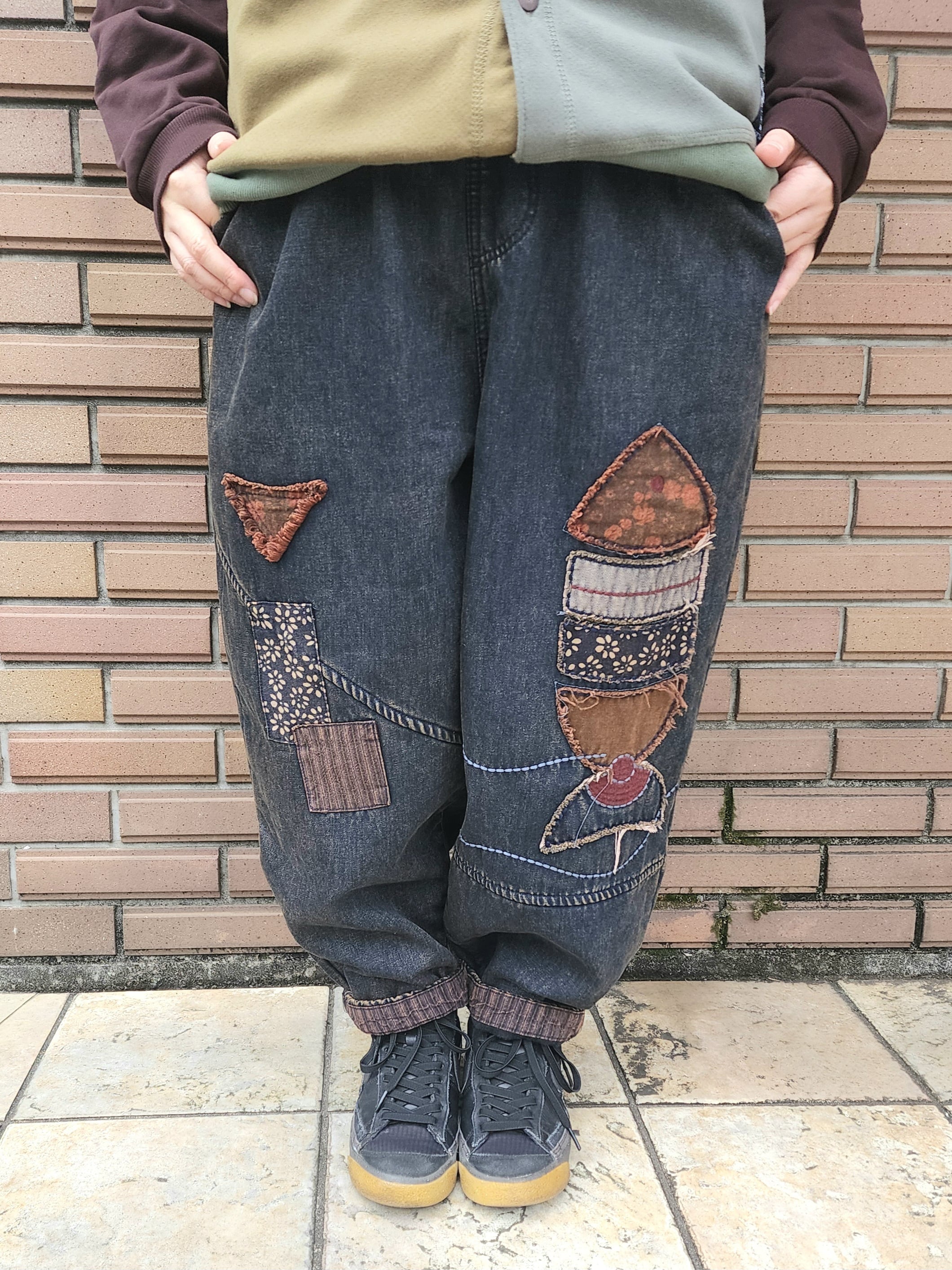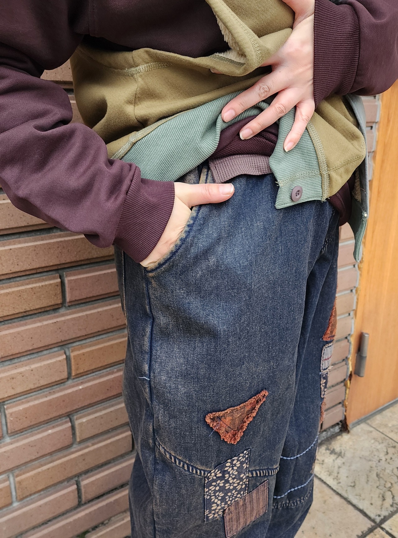 ビンテージ風の加工がよりお魚パッチワークの良さを引き立てた1枚になっています◎
