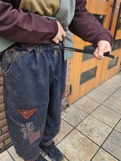 裾裏にはストライプ生地が貼ってあり、折り返して穿いても可愛いです。