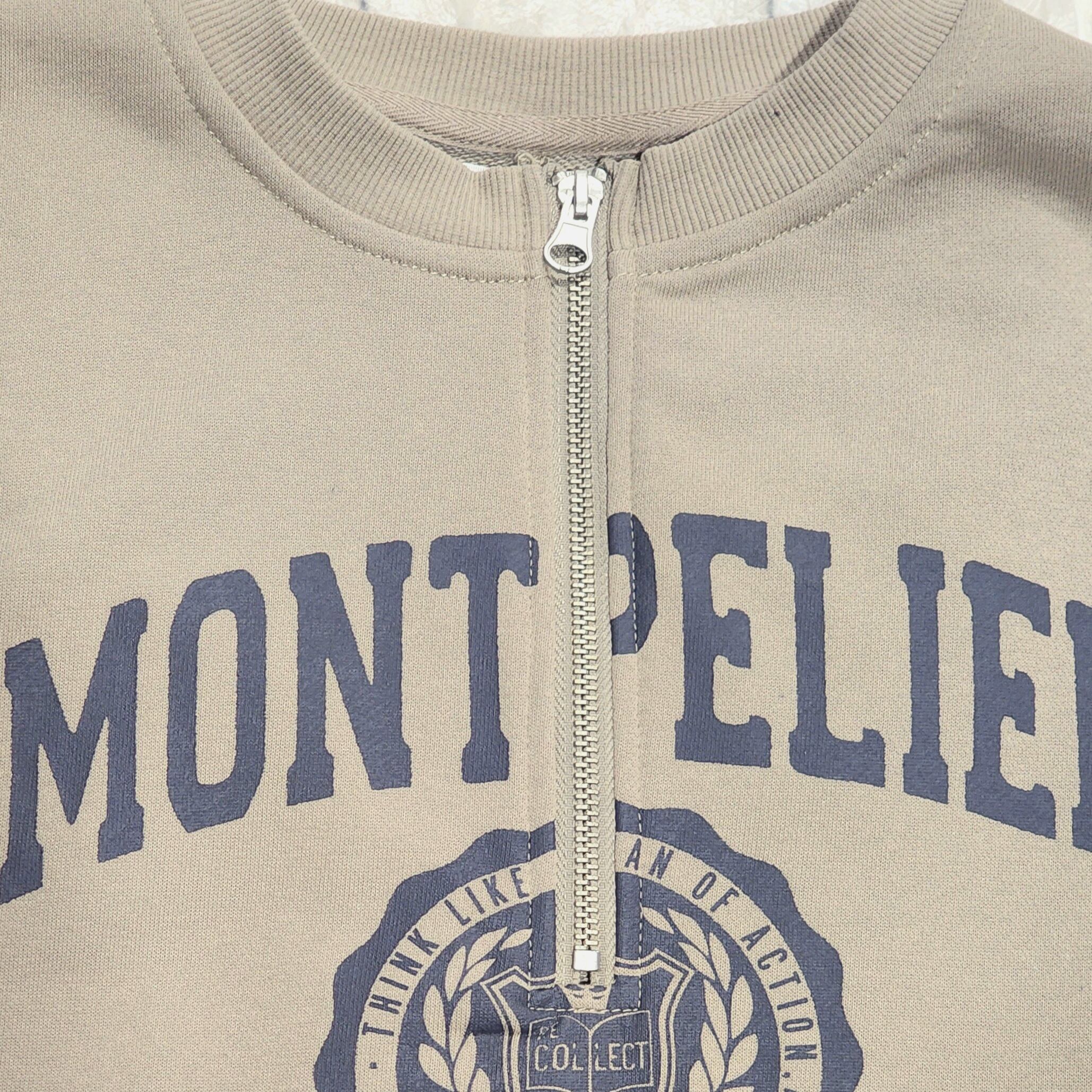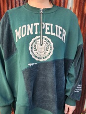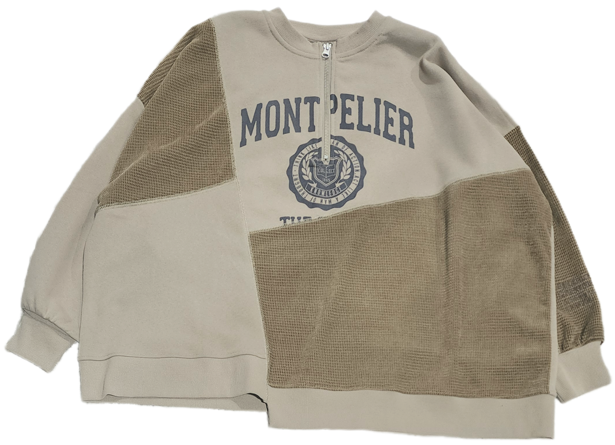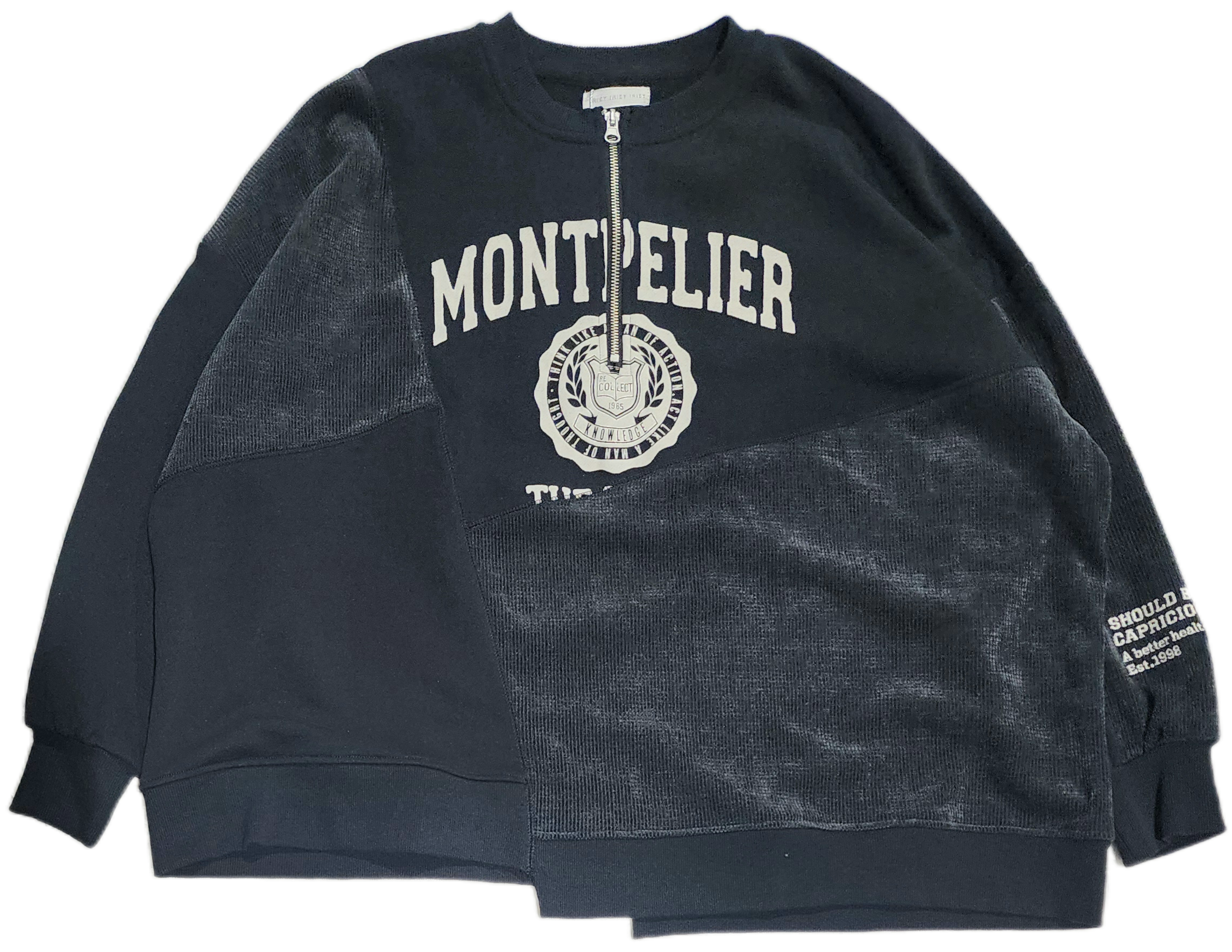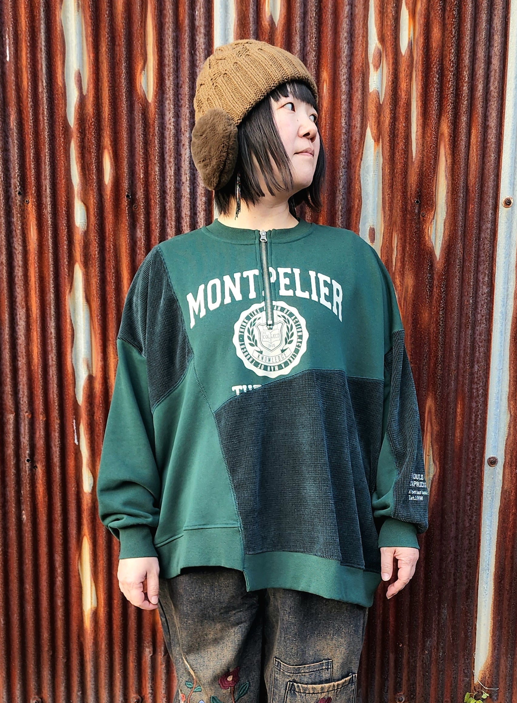 〈IRIEY〉異素材切替とハーフジップが印象的なクレイジーデザインのスウェットプルオーバー。