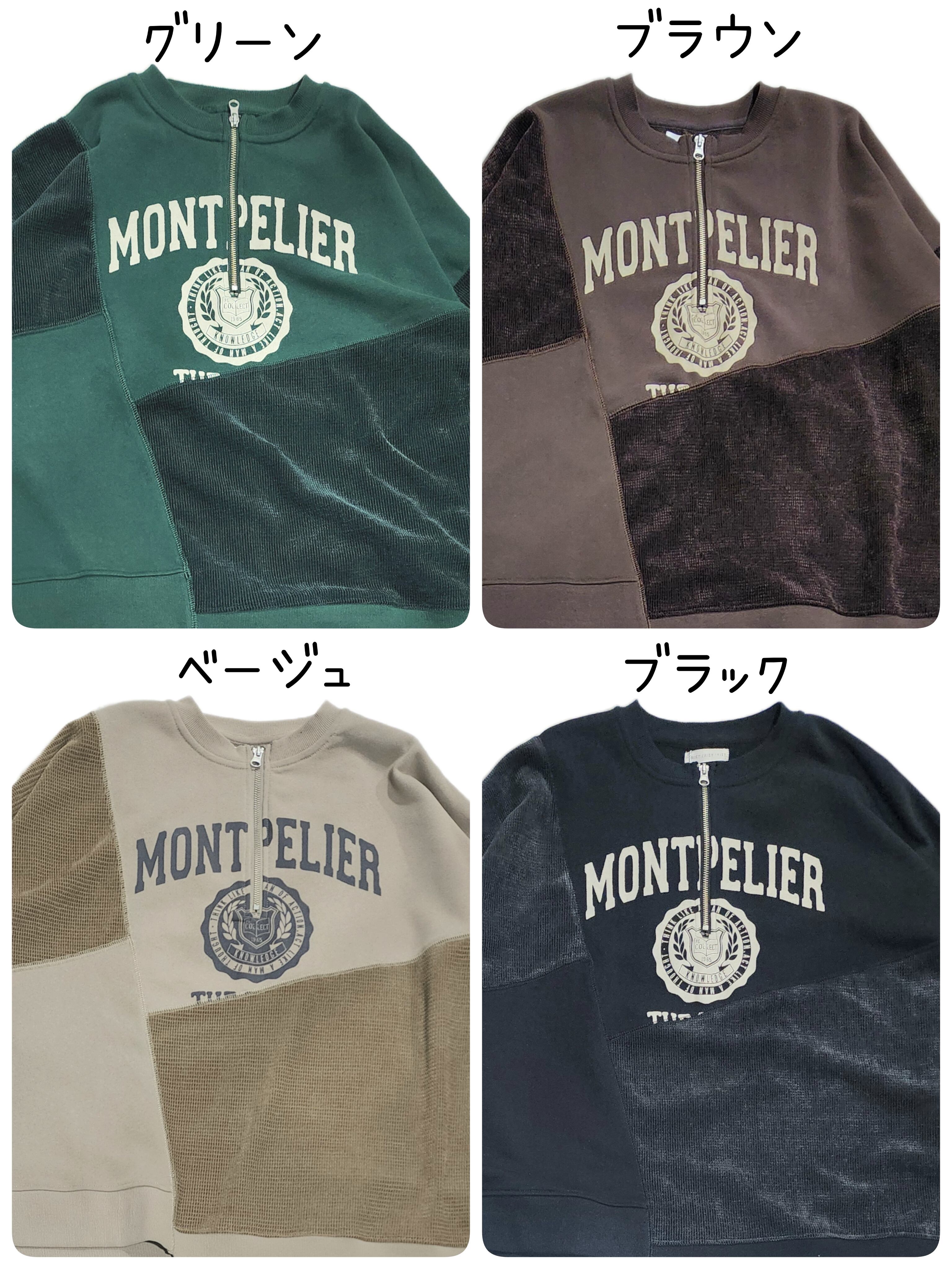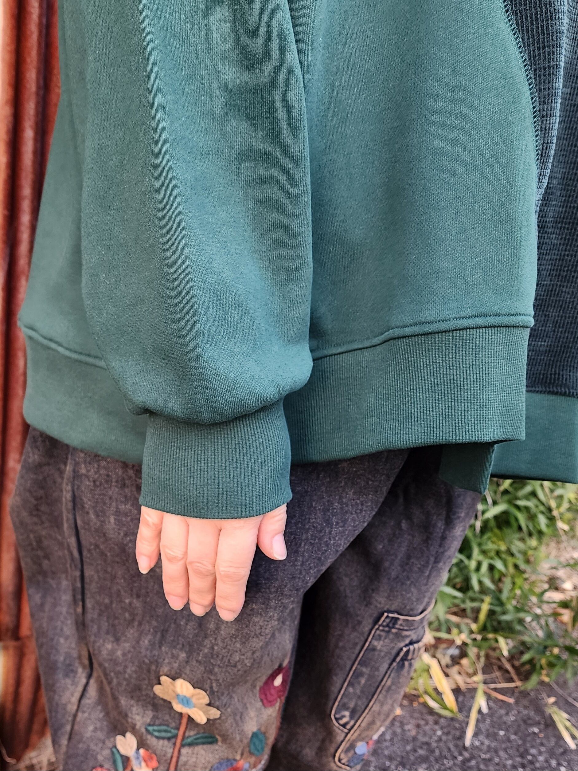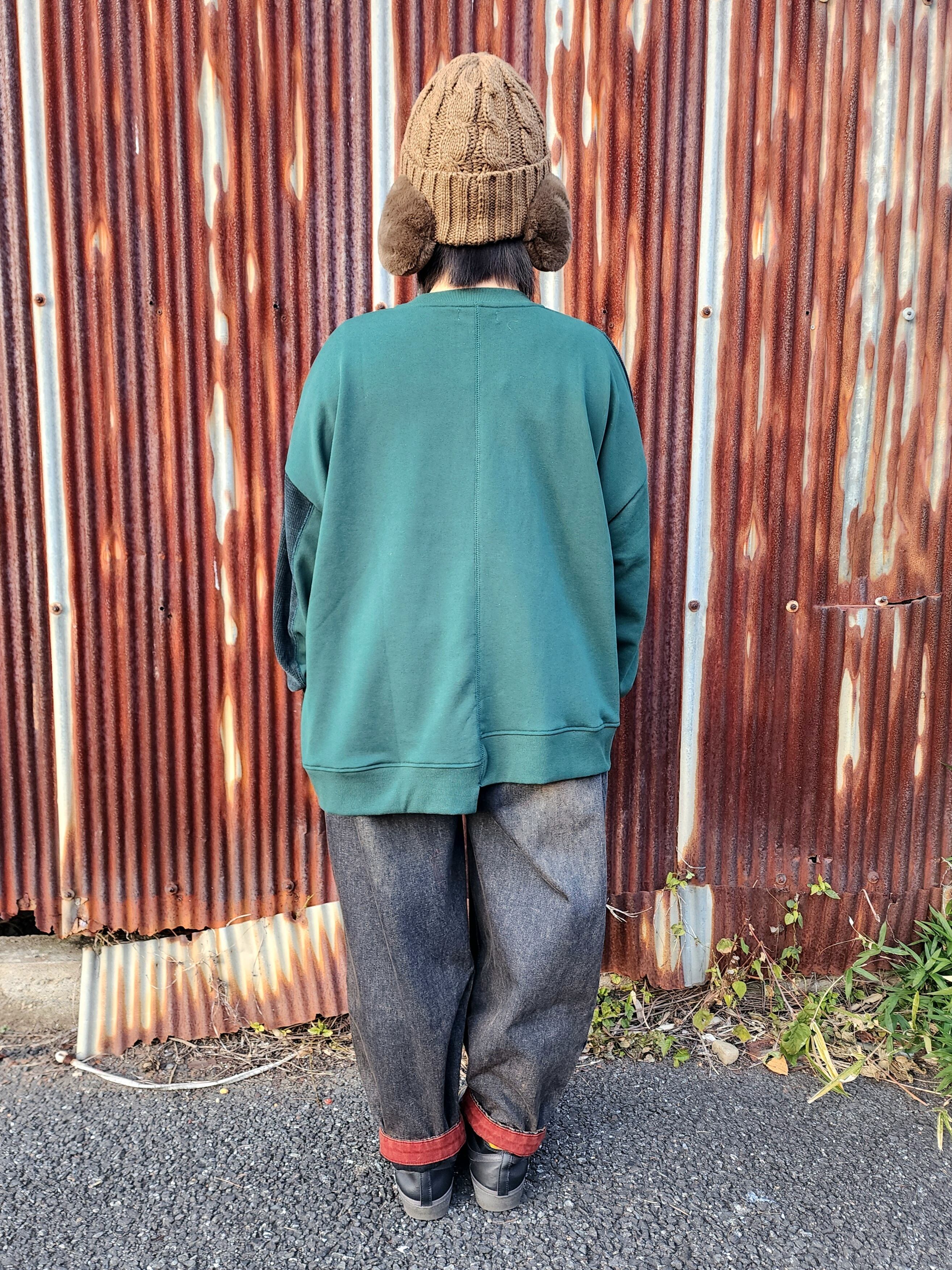 裏毛×やわらかなコーデュロイを組み合わせた、ゆったりとしたデザインのトップスです。