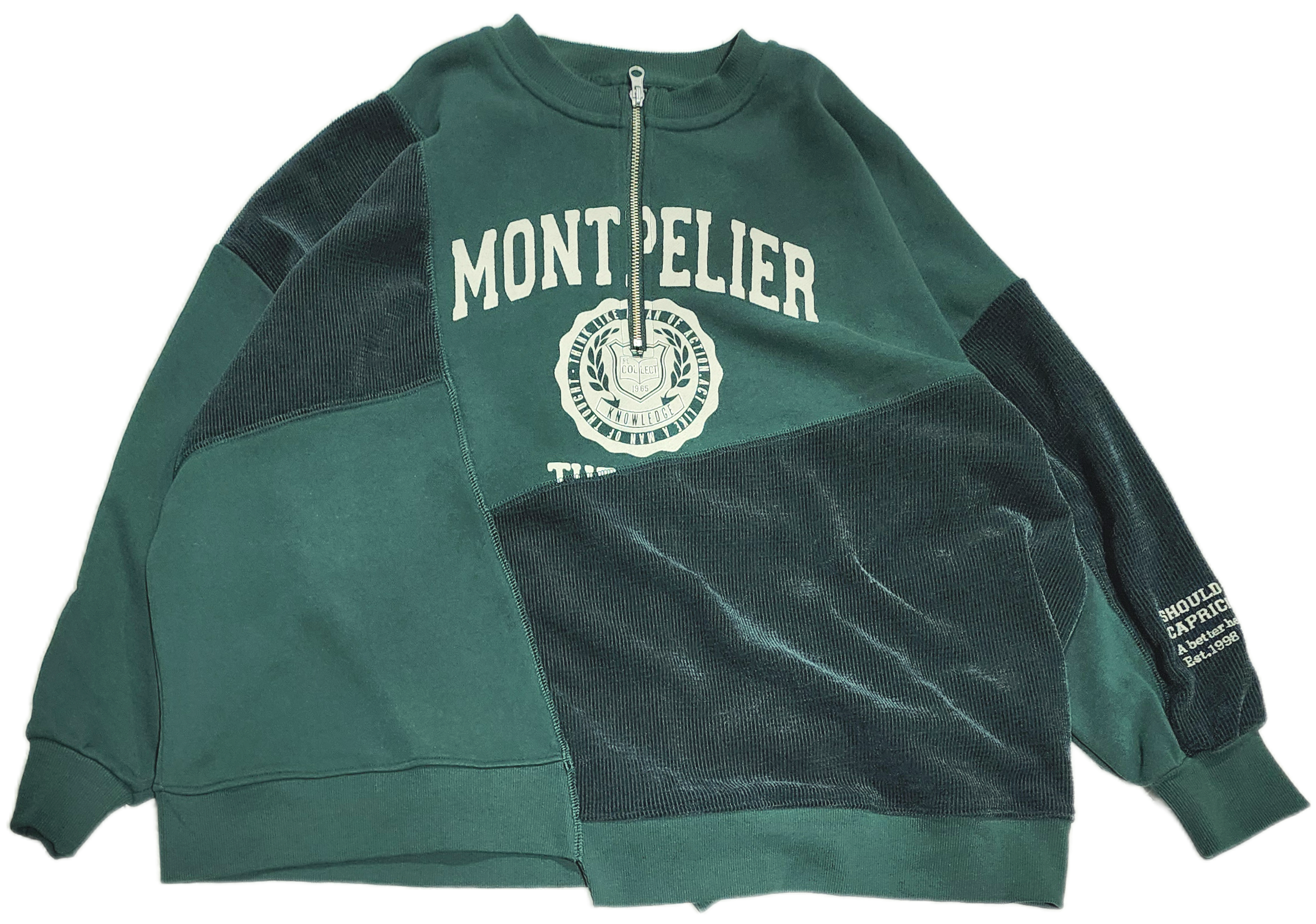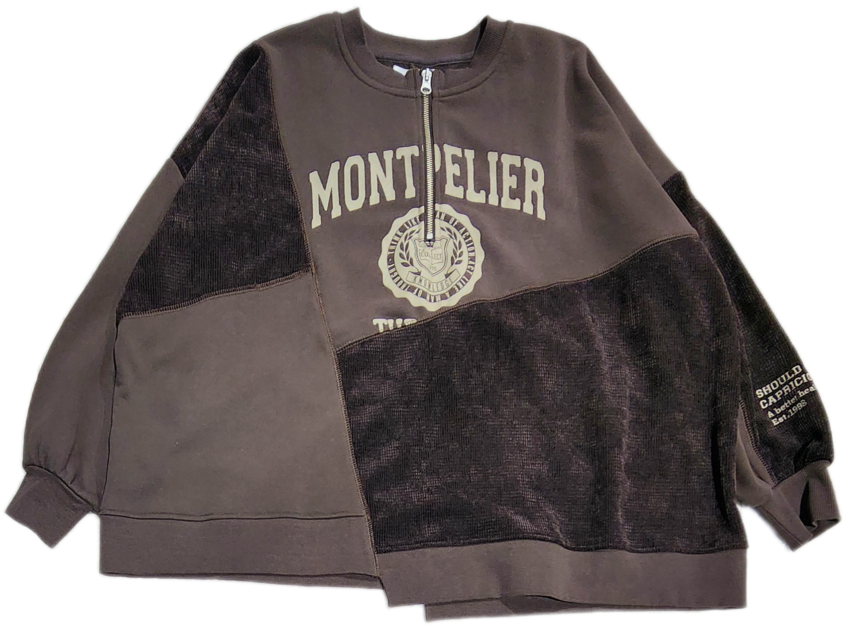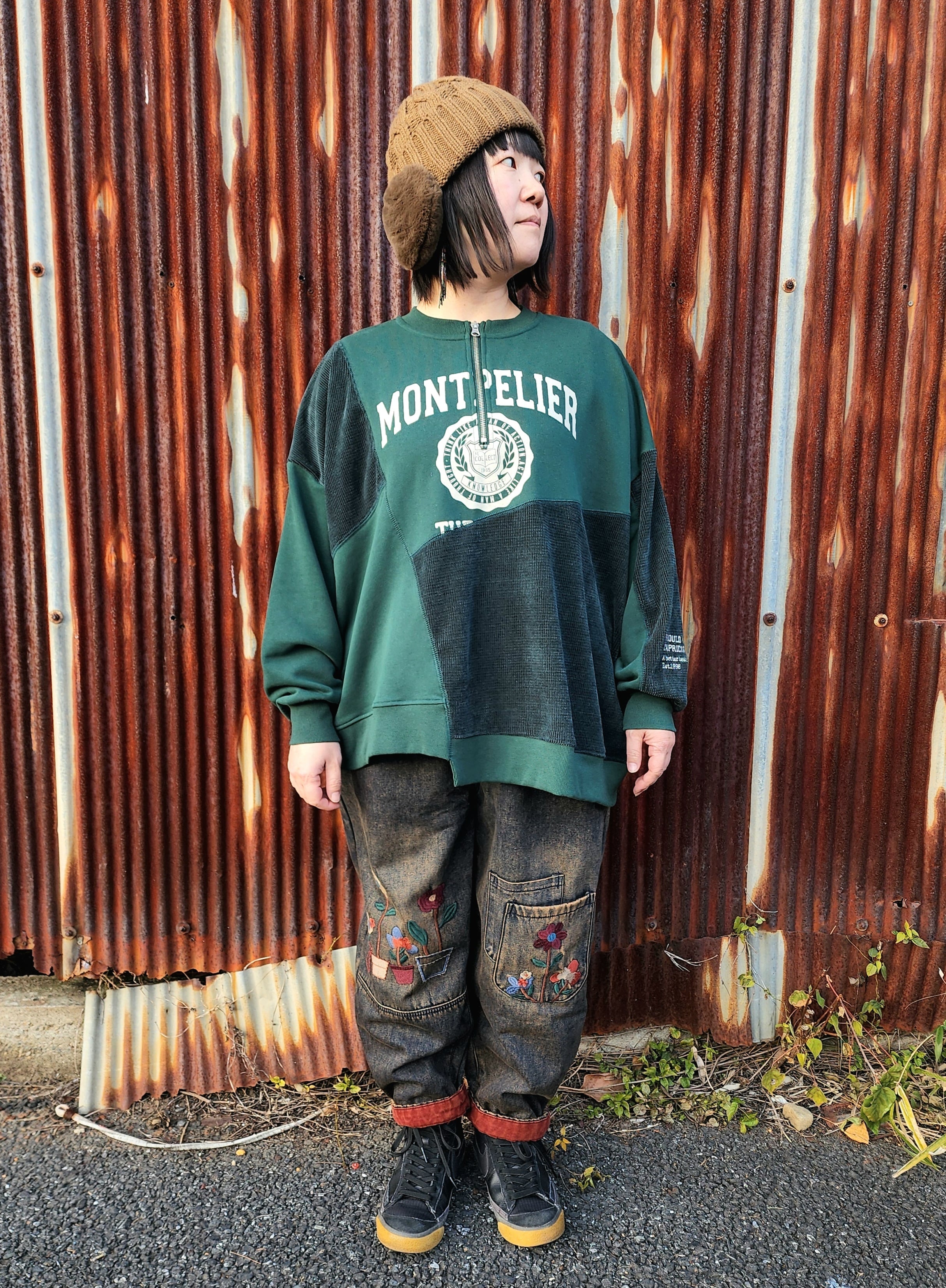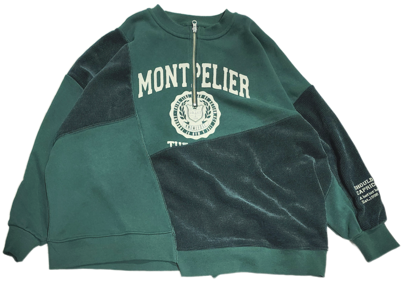 裏毛×やわらかなコーデュロイを組み合わせた、ゆったりとしたデザインのトップスです。