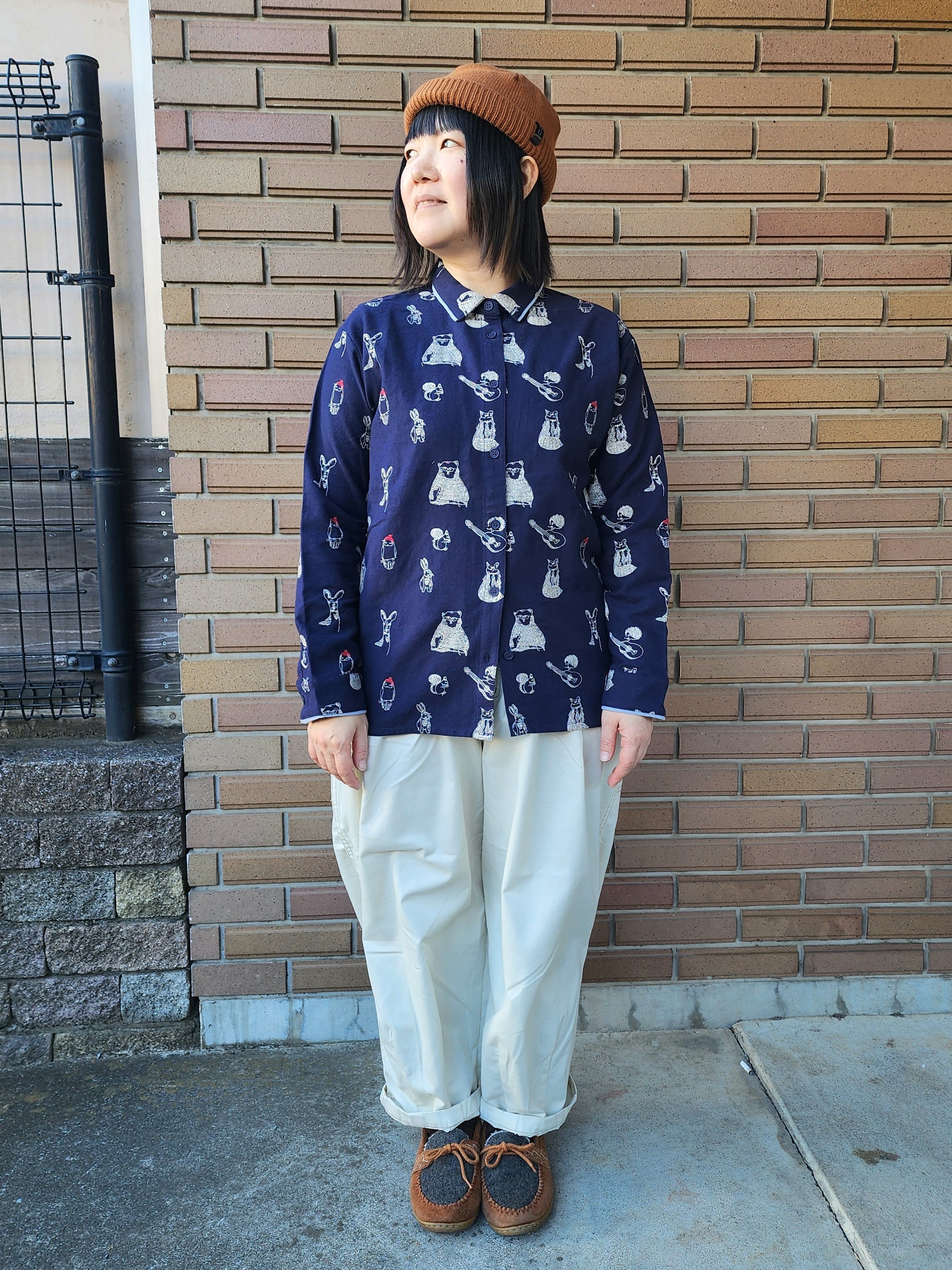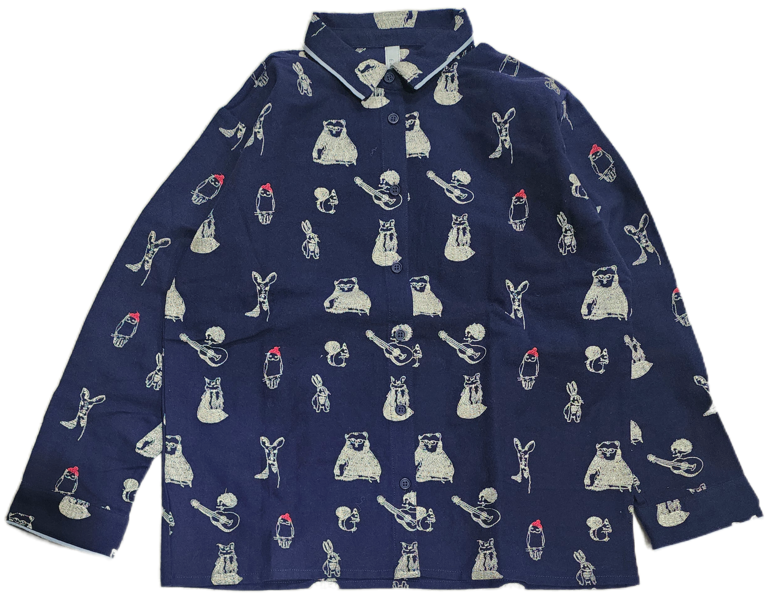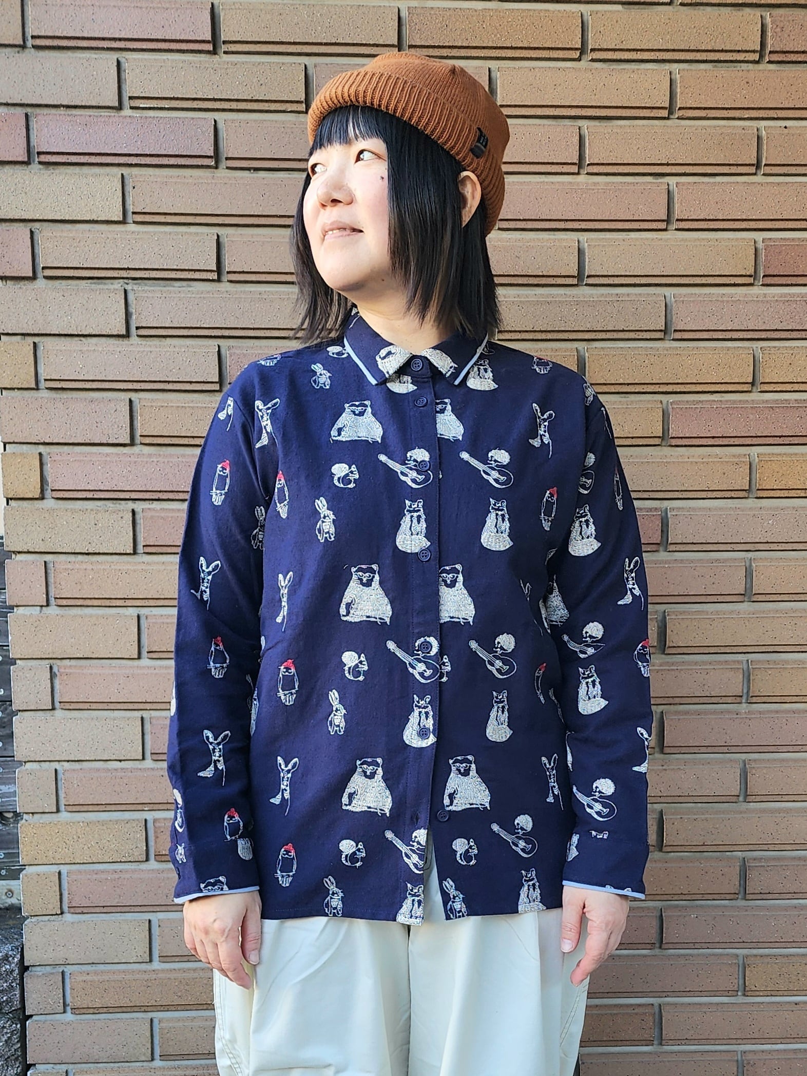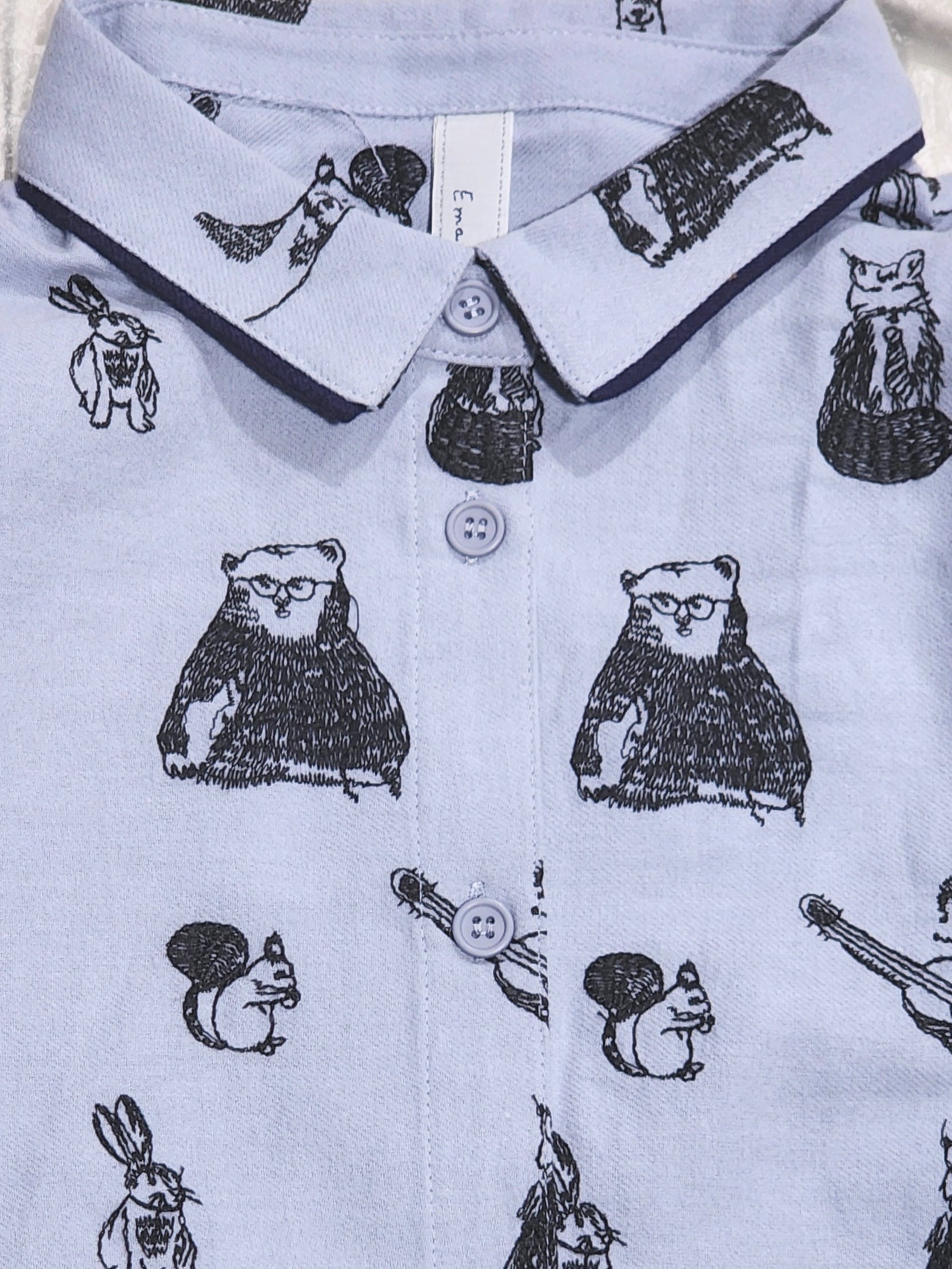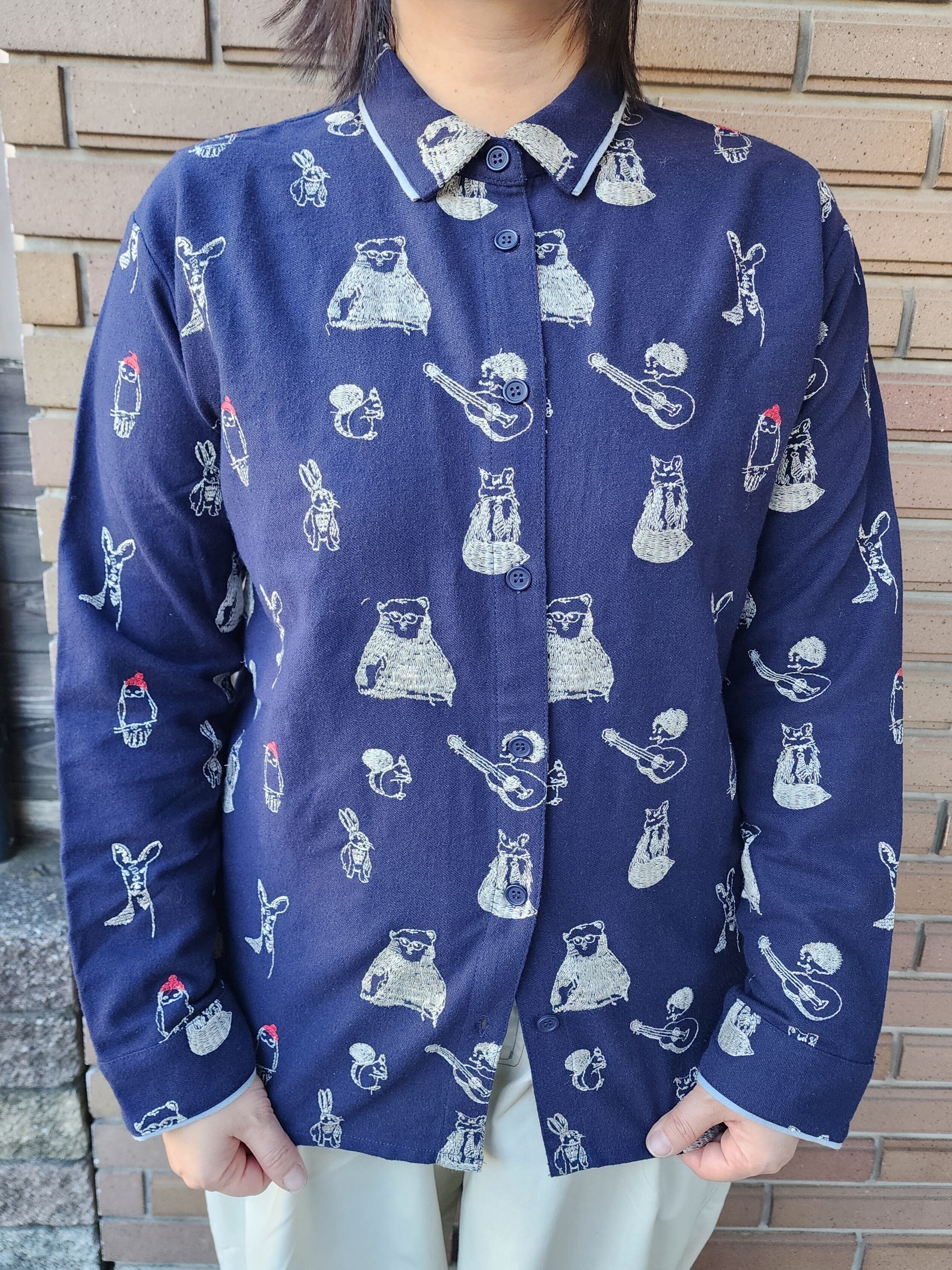 〈Emago〉動物たちがとってもキュートな総柄刺繍になったシャツ。