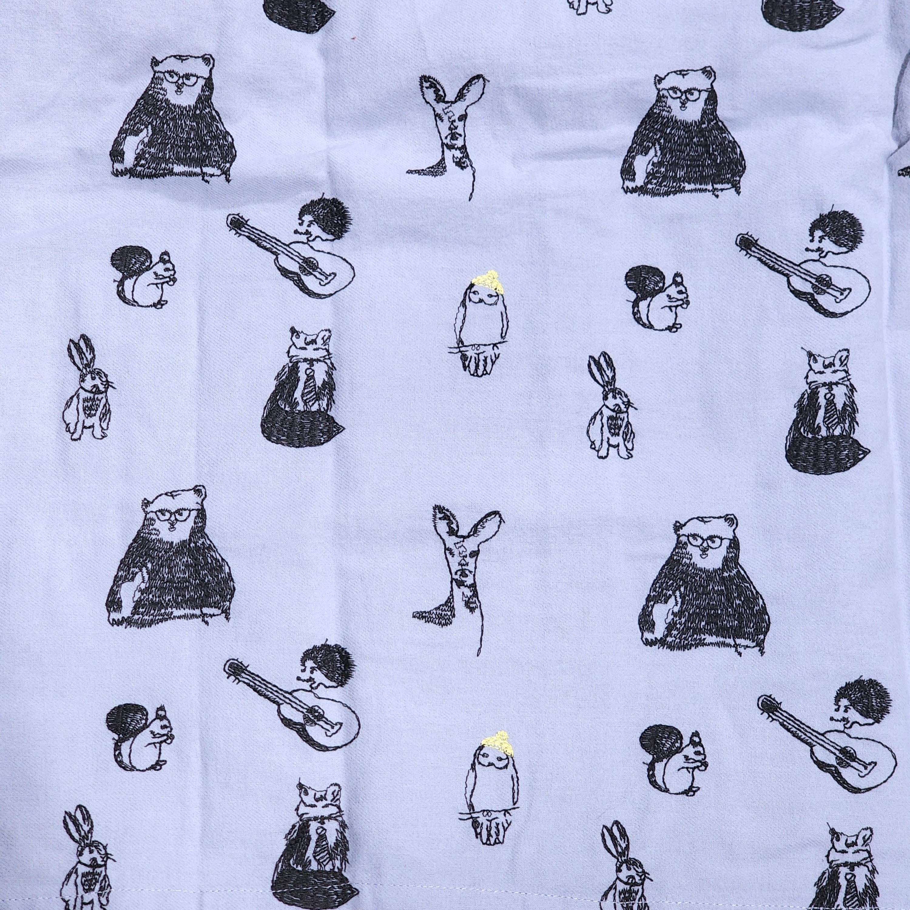 ニット帽をかぶったフクロウさんや眼鏡クマさんに、ネクタイ姿のキツネさんまで、どこかしら人間ぽさが感じられる刺繍が可愛い◎