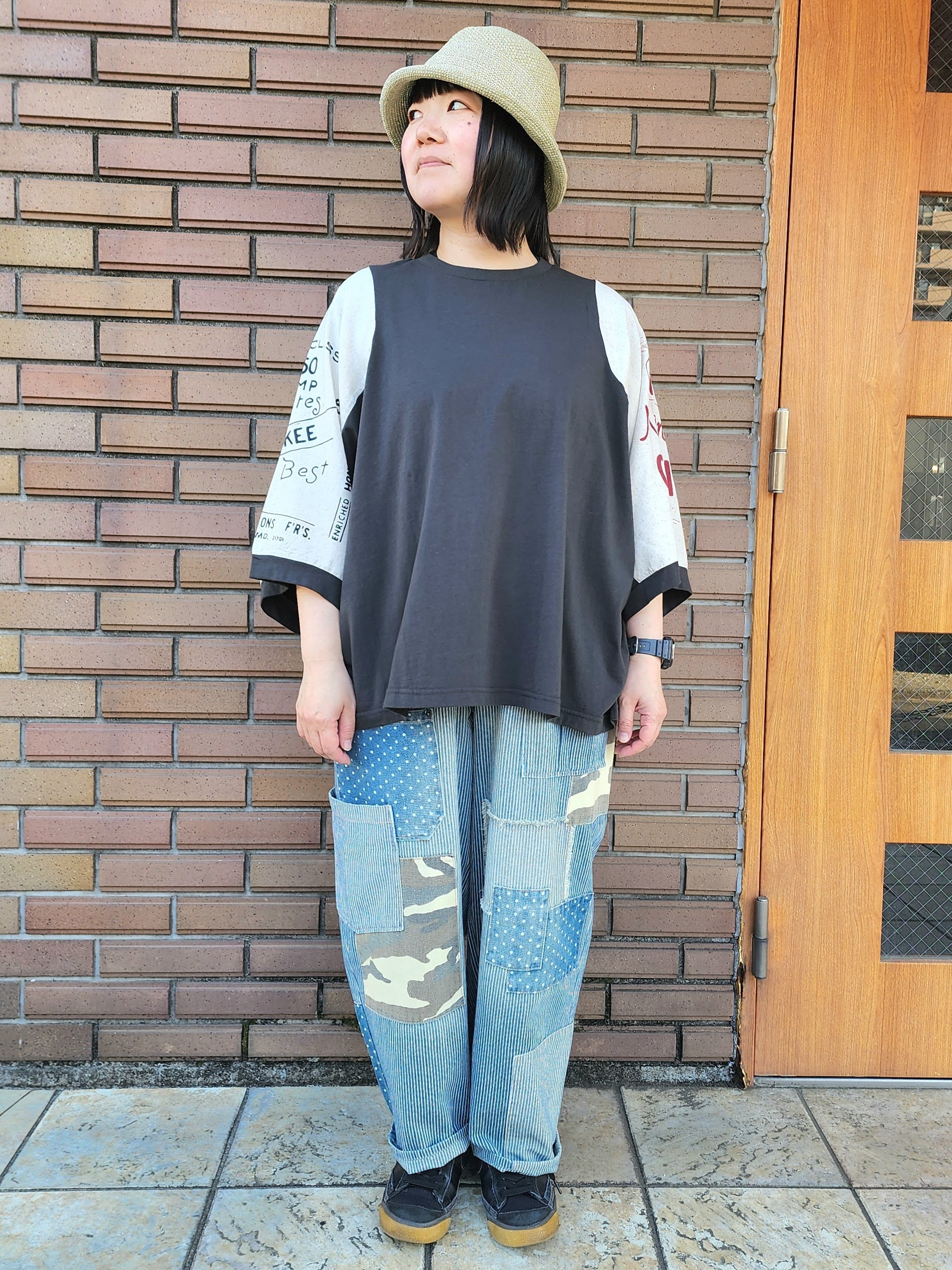 〈mililopiulu〉デニム×迷彩柄のパッチワークパンツ