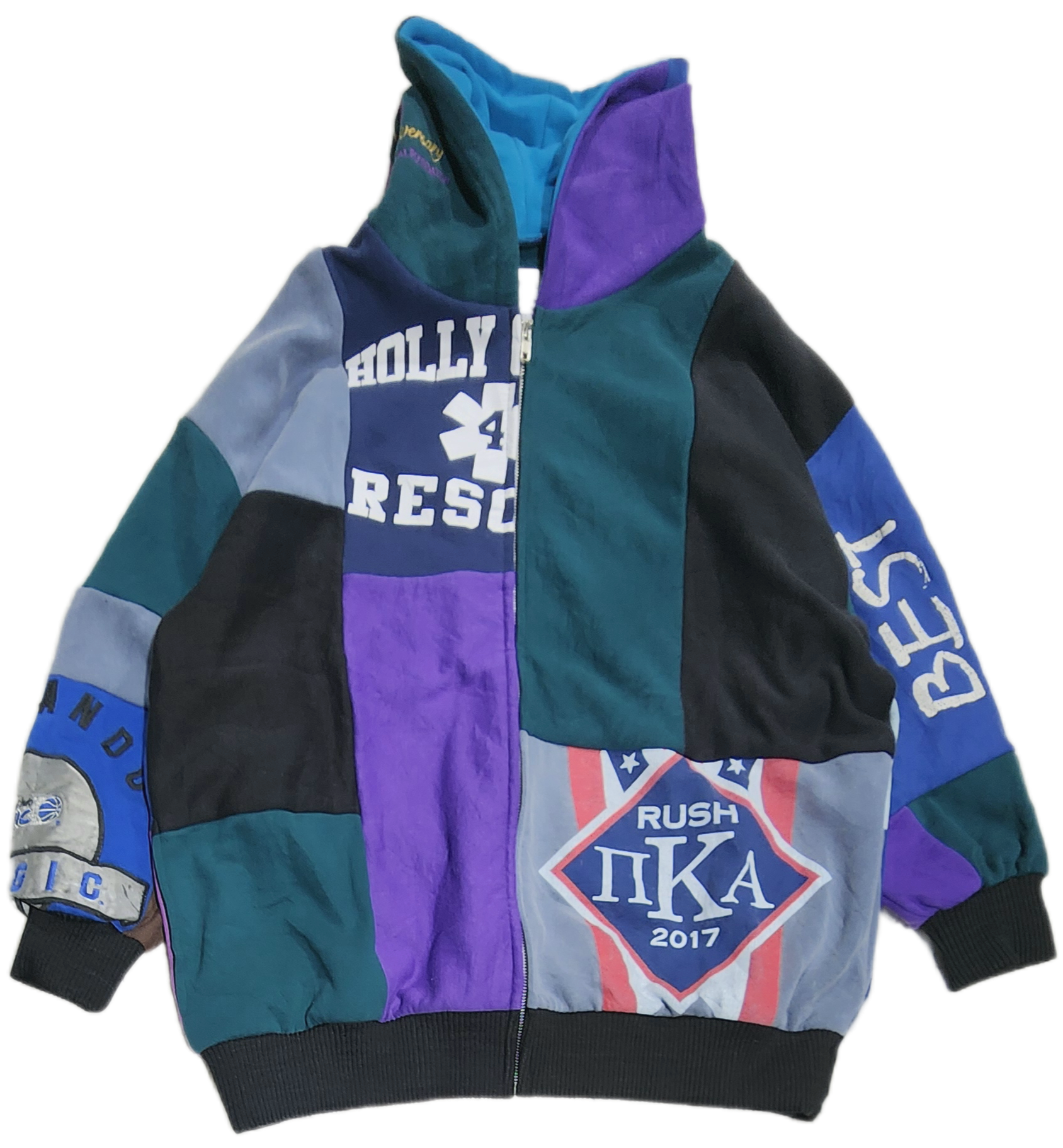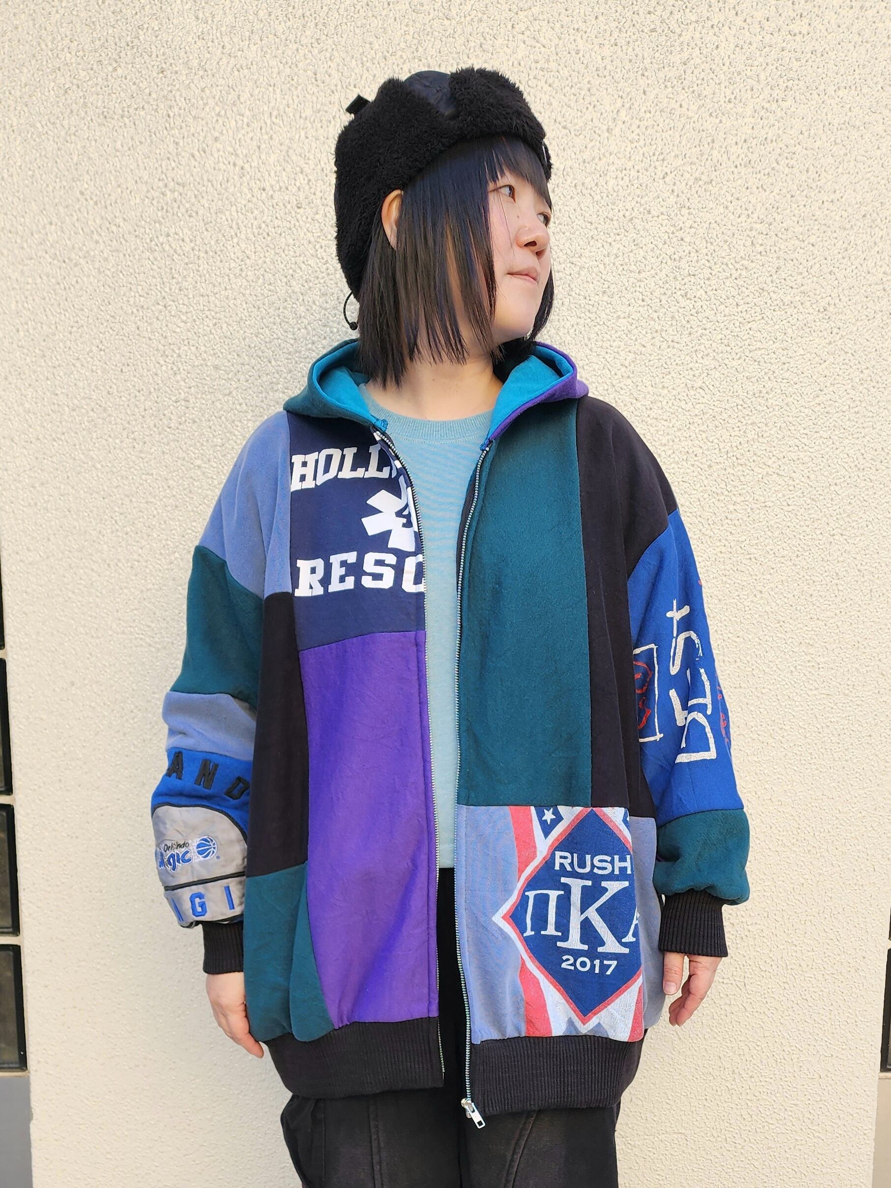 〈RERE〉リメイクパッチワークパーカー【GR】