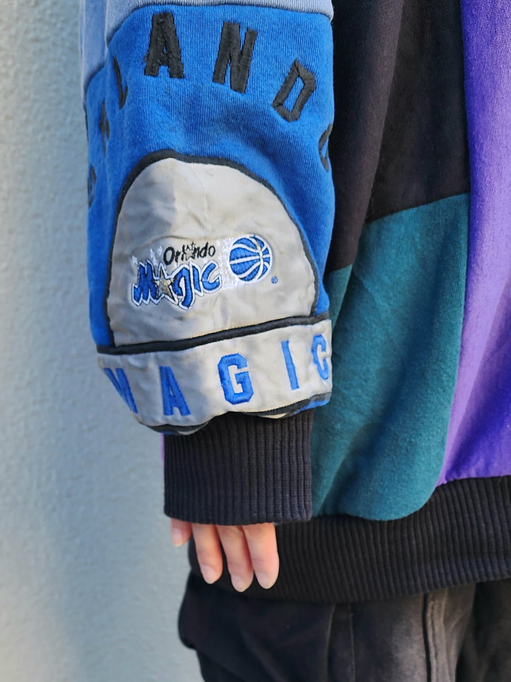 古着スウェットを大胆に組み合わせた人気のアイテム。