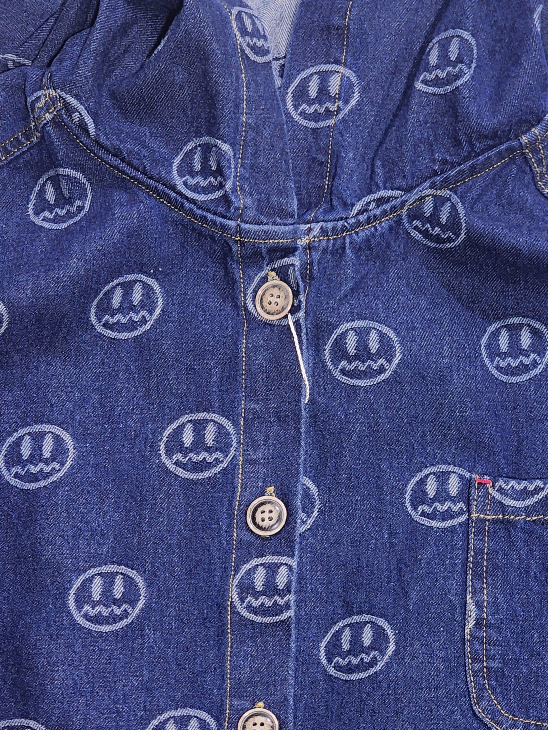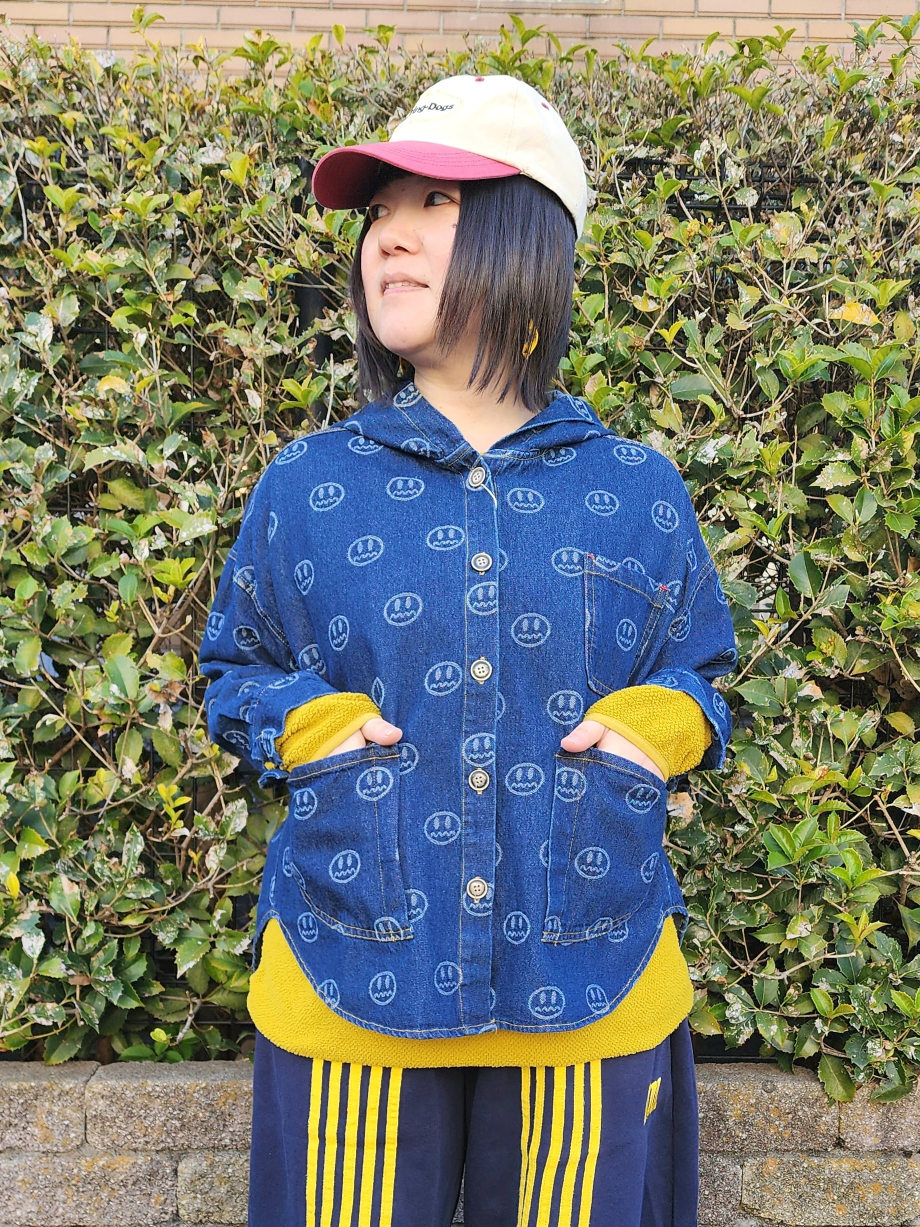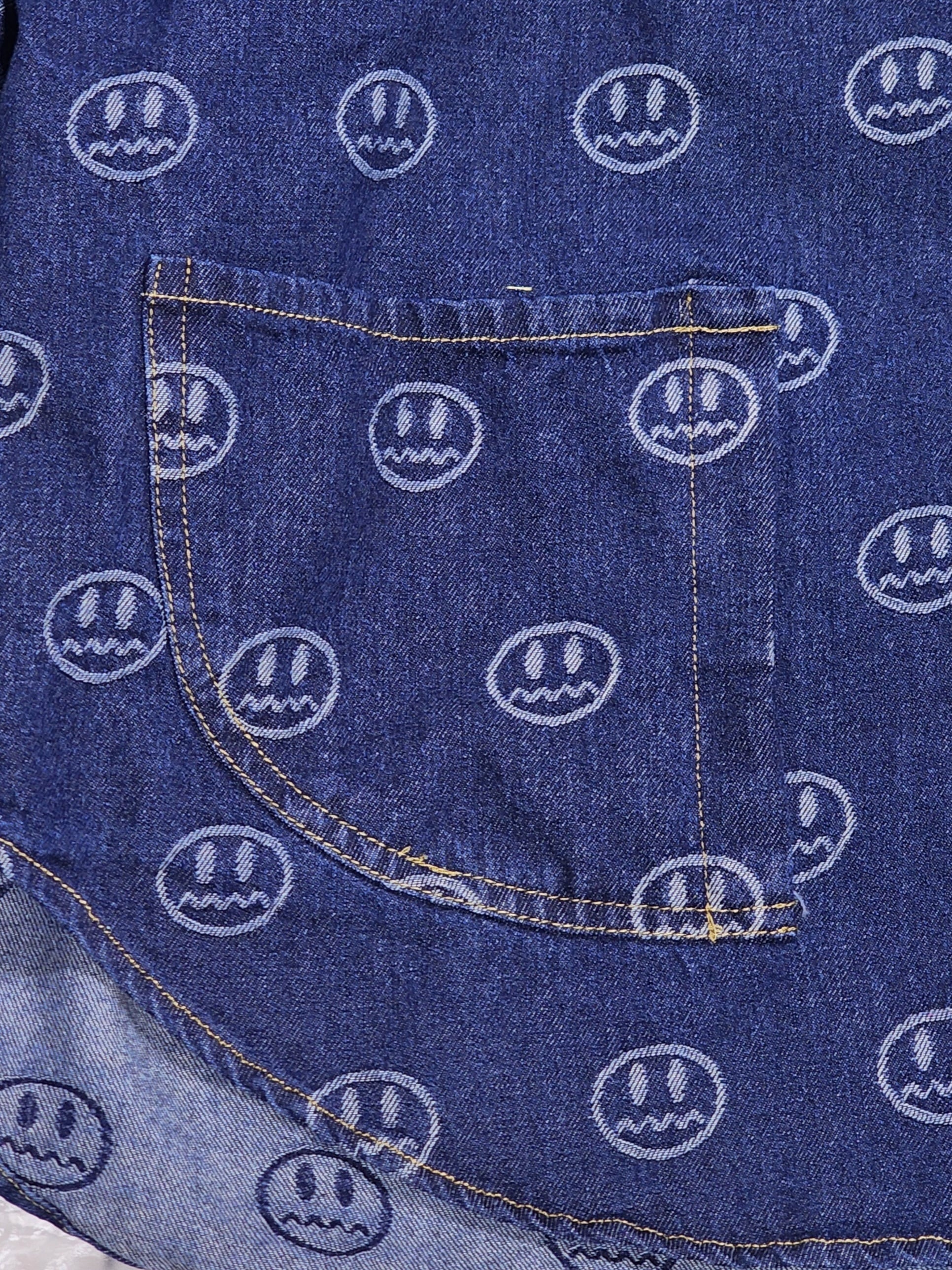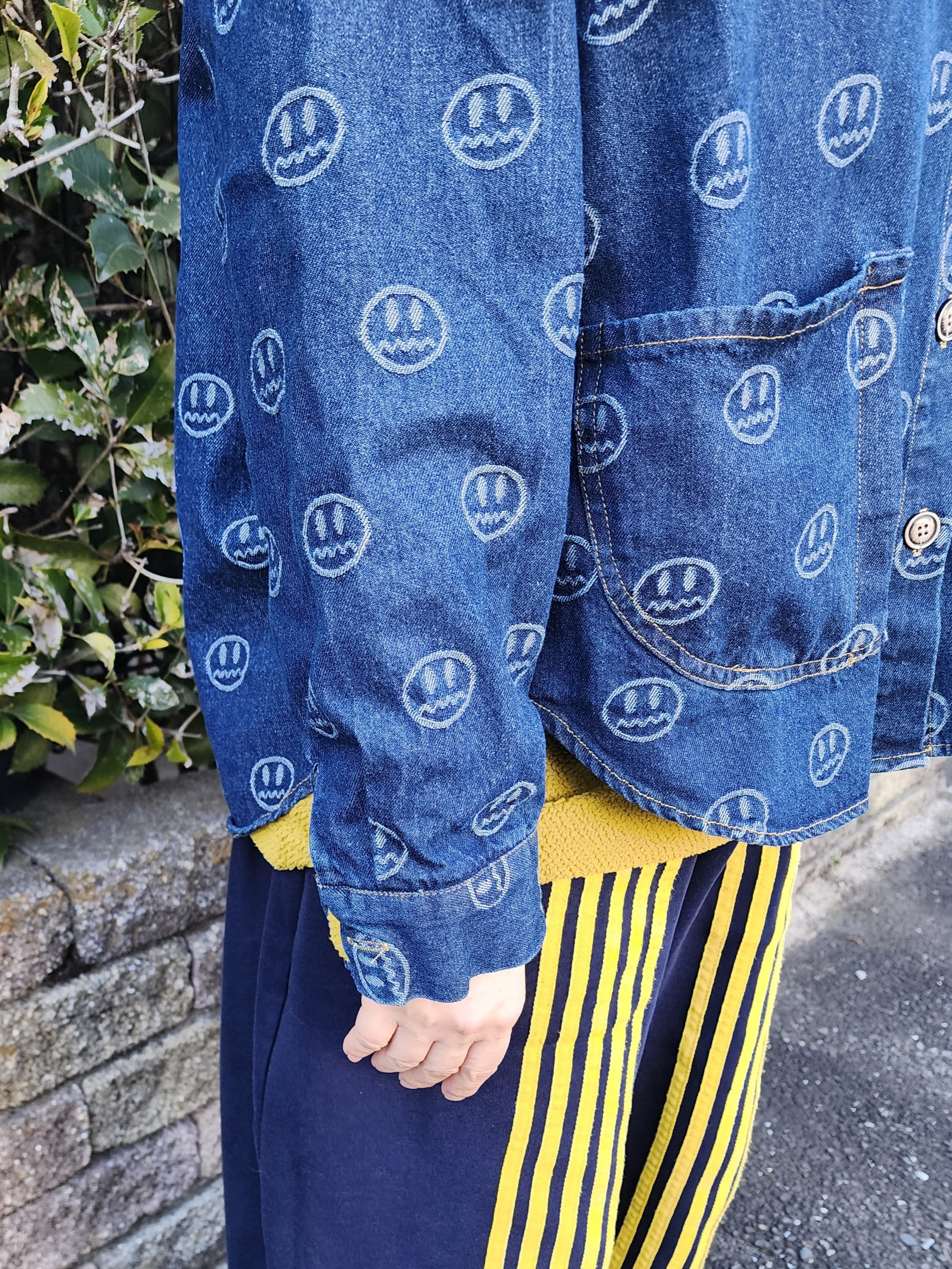 スマイル⁉と見せかけて、よく見るとスマイルじゃない総柄が面白い、人気のデニム