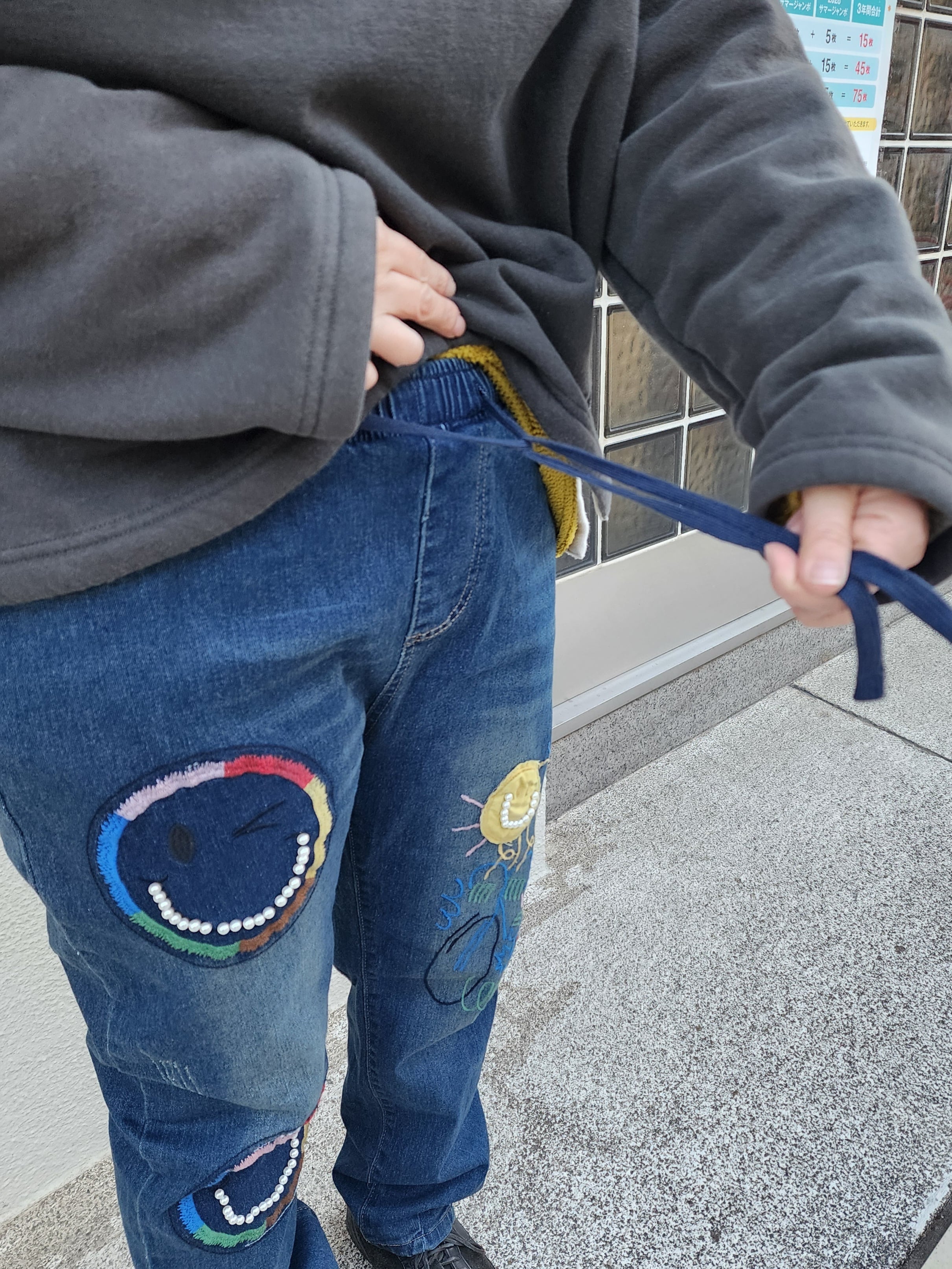 よく見ると後ろのポッケもスマイル生地の切り替えになっていて可愛いです☆
