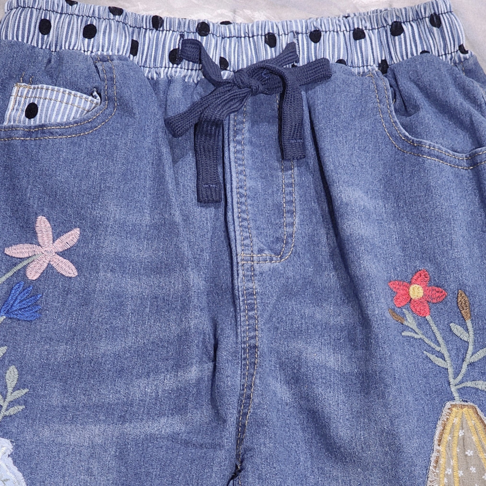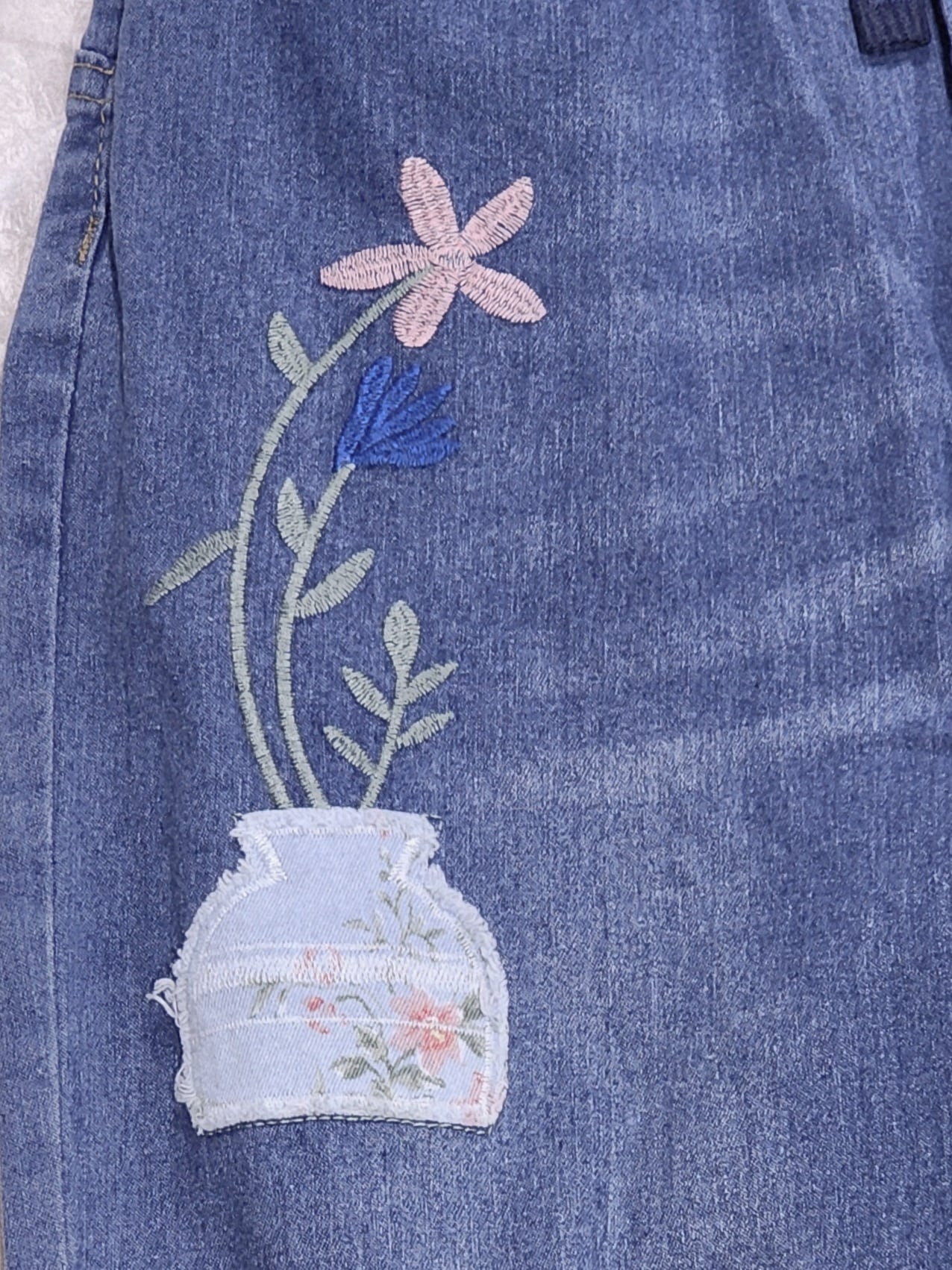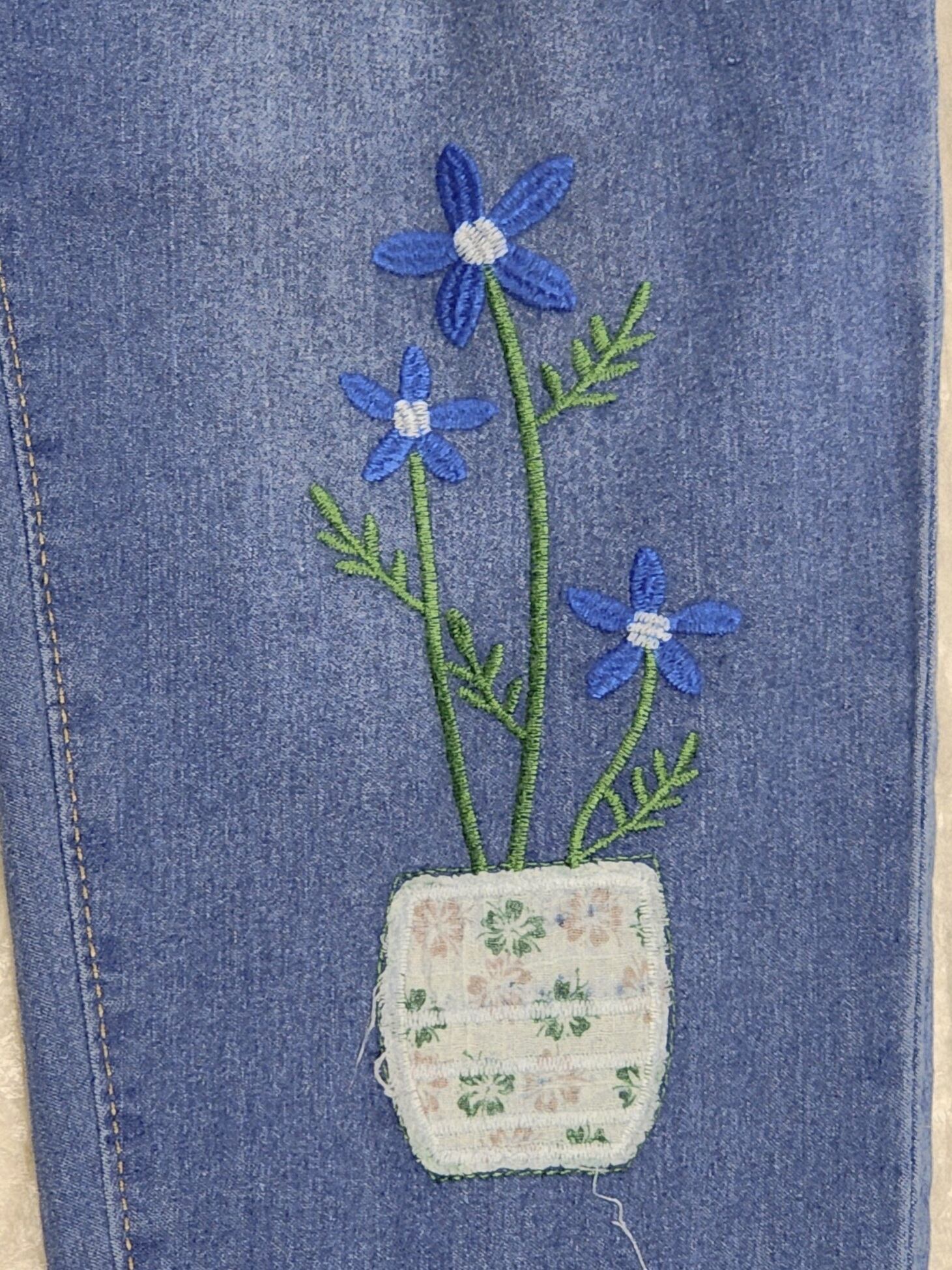 ちょっぴり素朴でほっこりかわいい、お花と花瓶刺繍のデニム。
