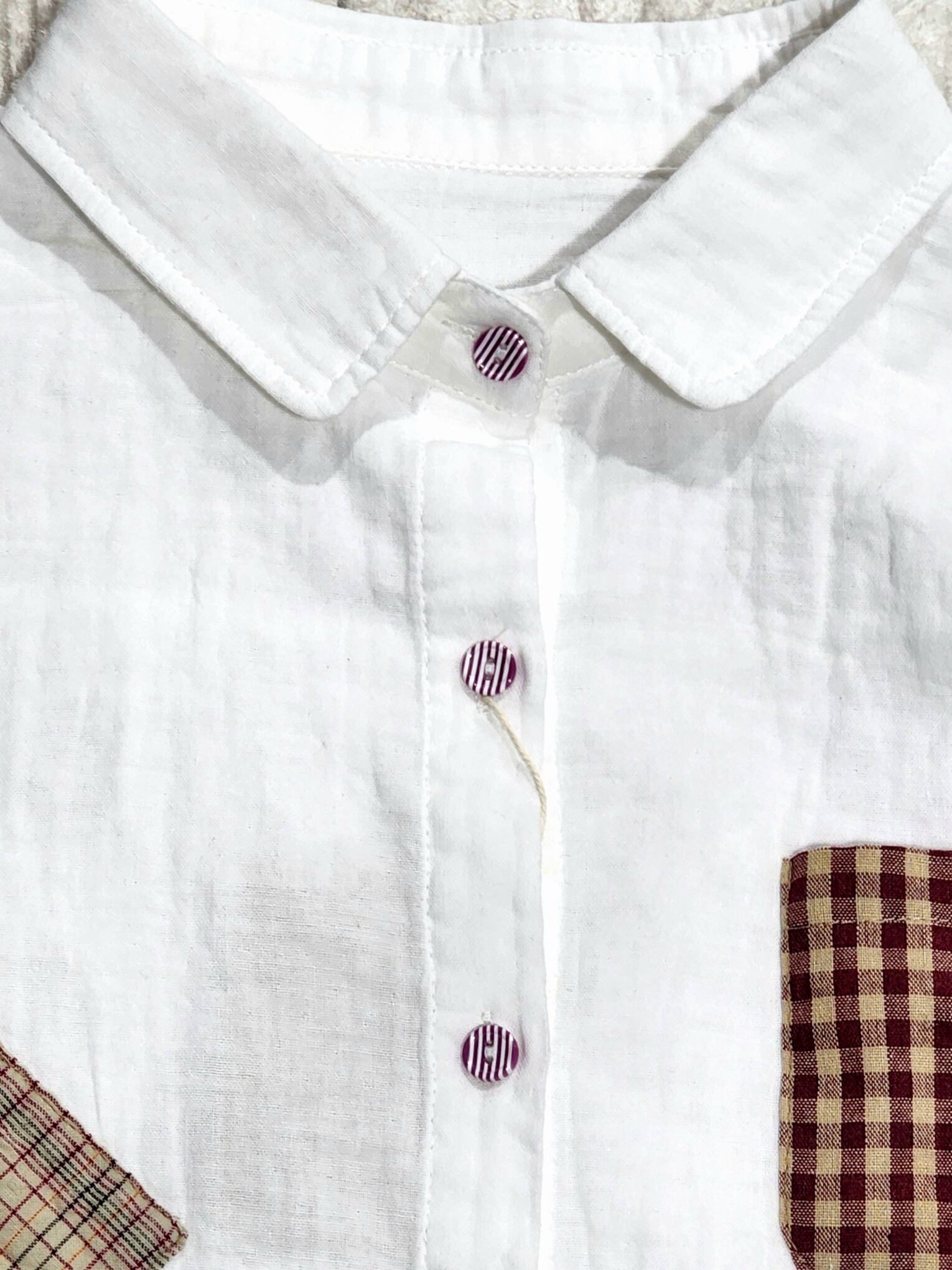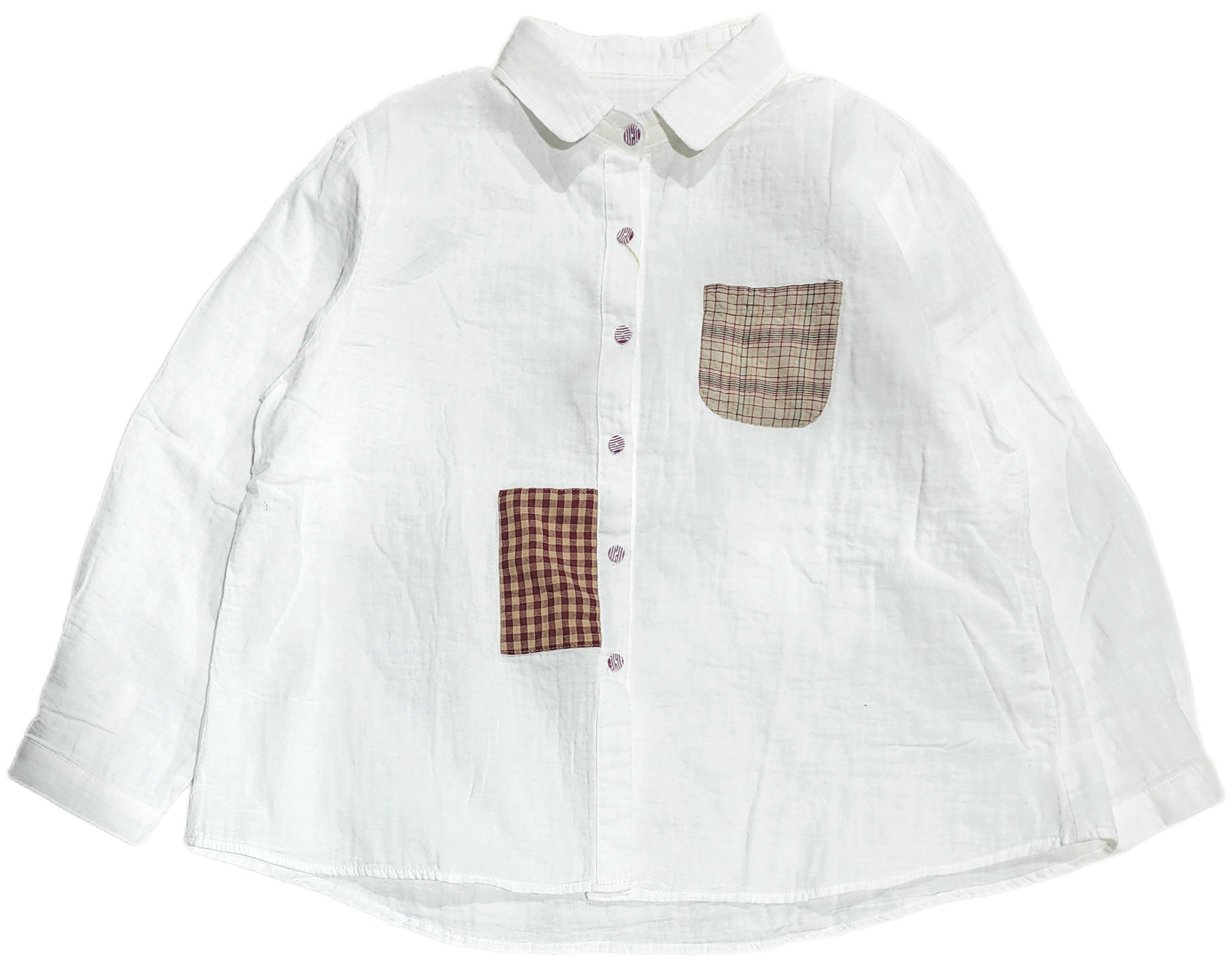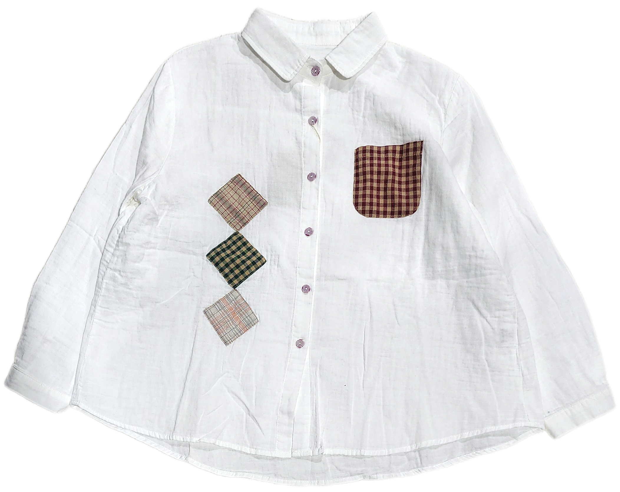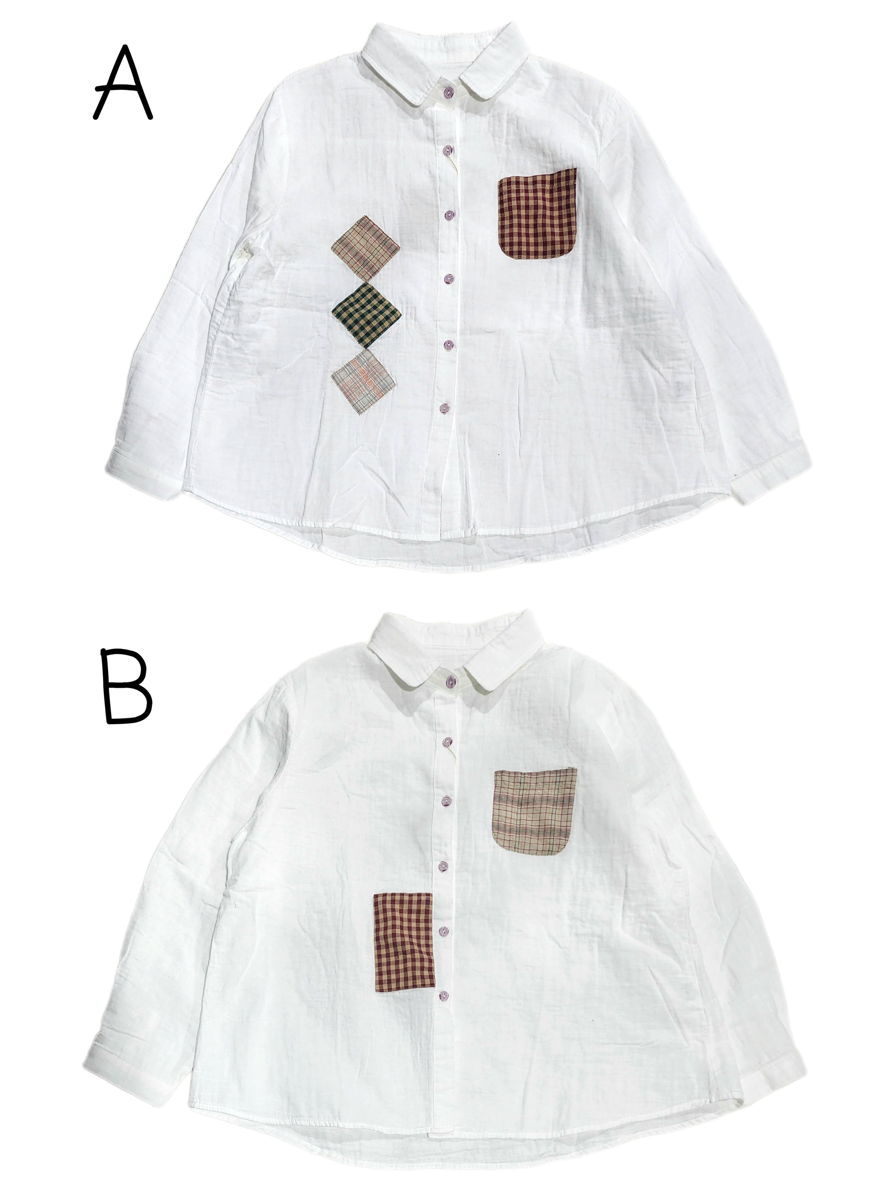 ちょこんと付いたパッチワークが素朴で可愛い綿シャツ。