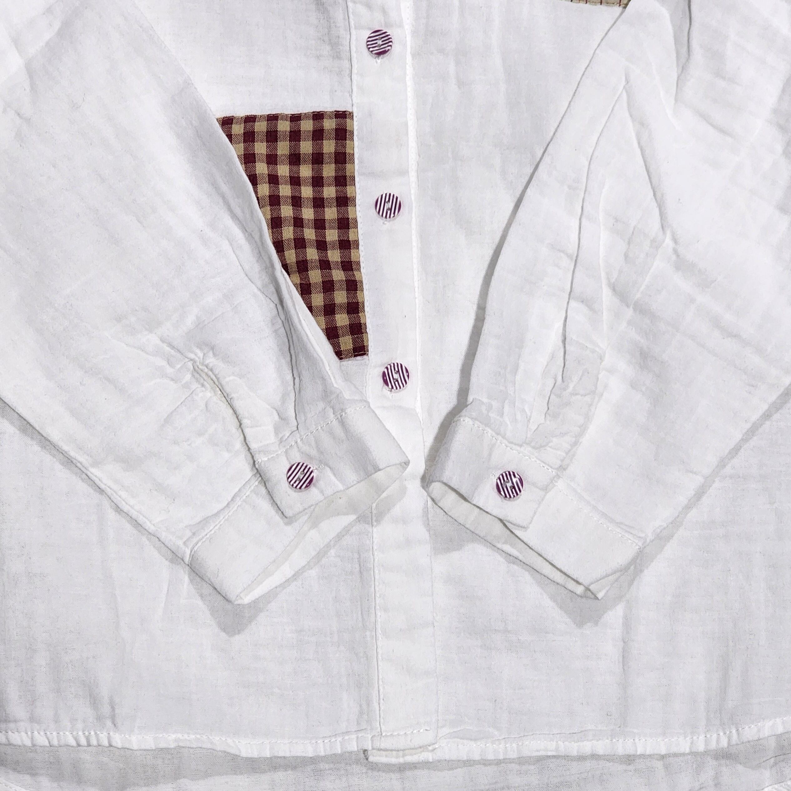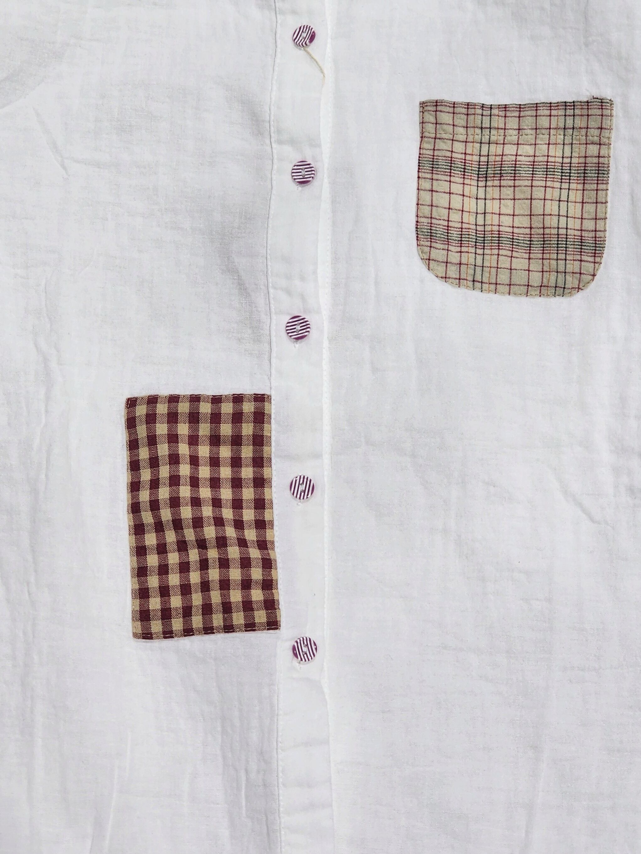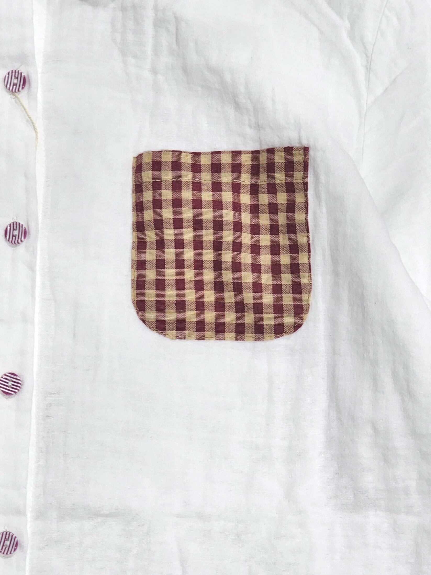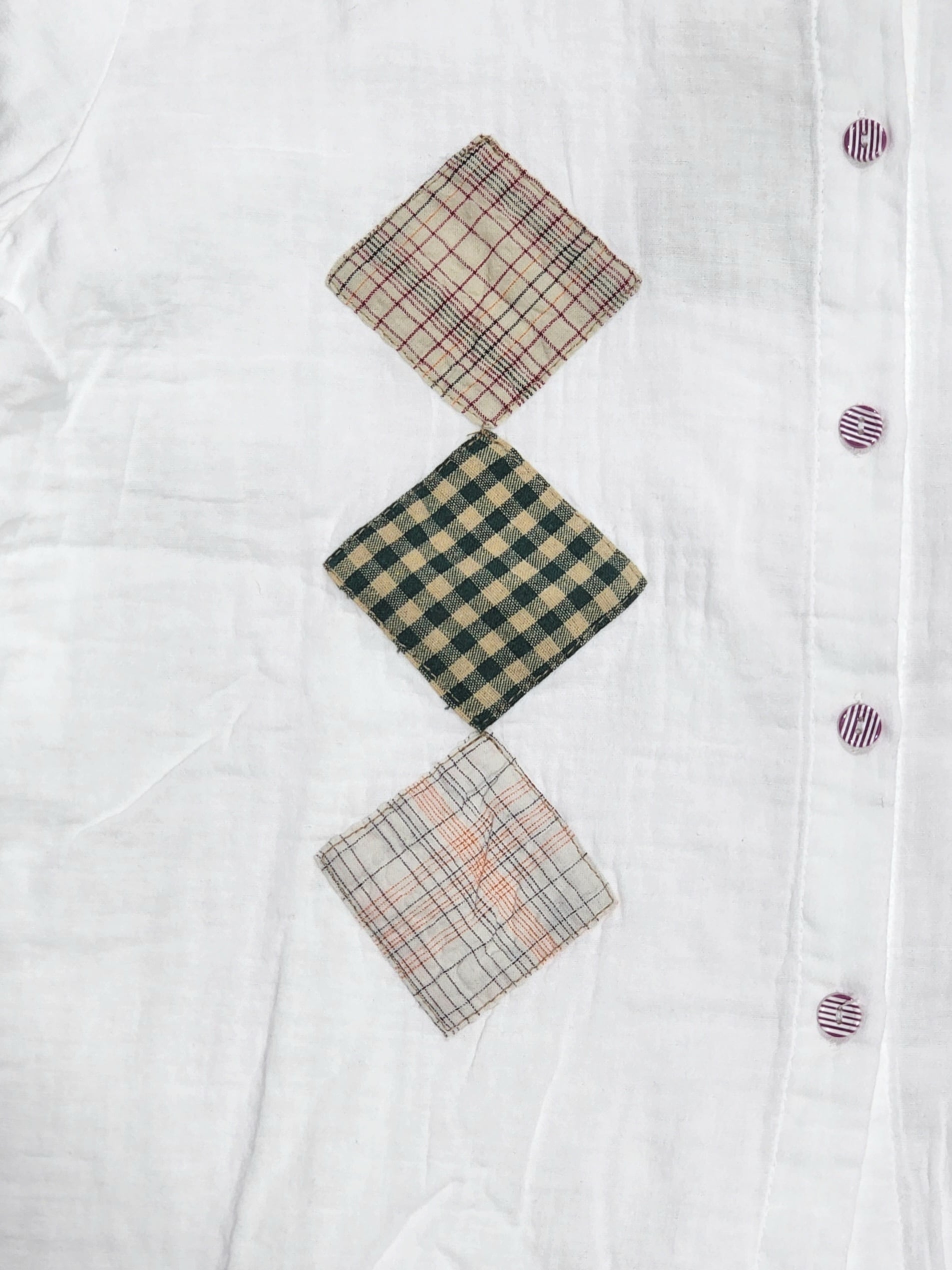 ちょこんと付いたパッチワークが素朴で可愛い綿シャツ。