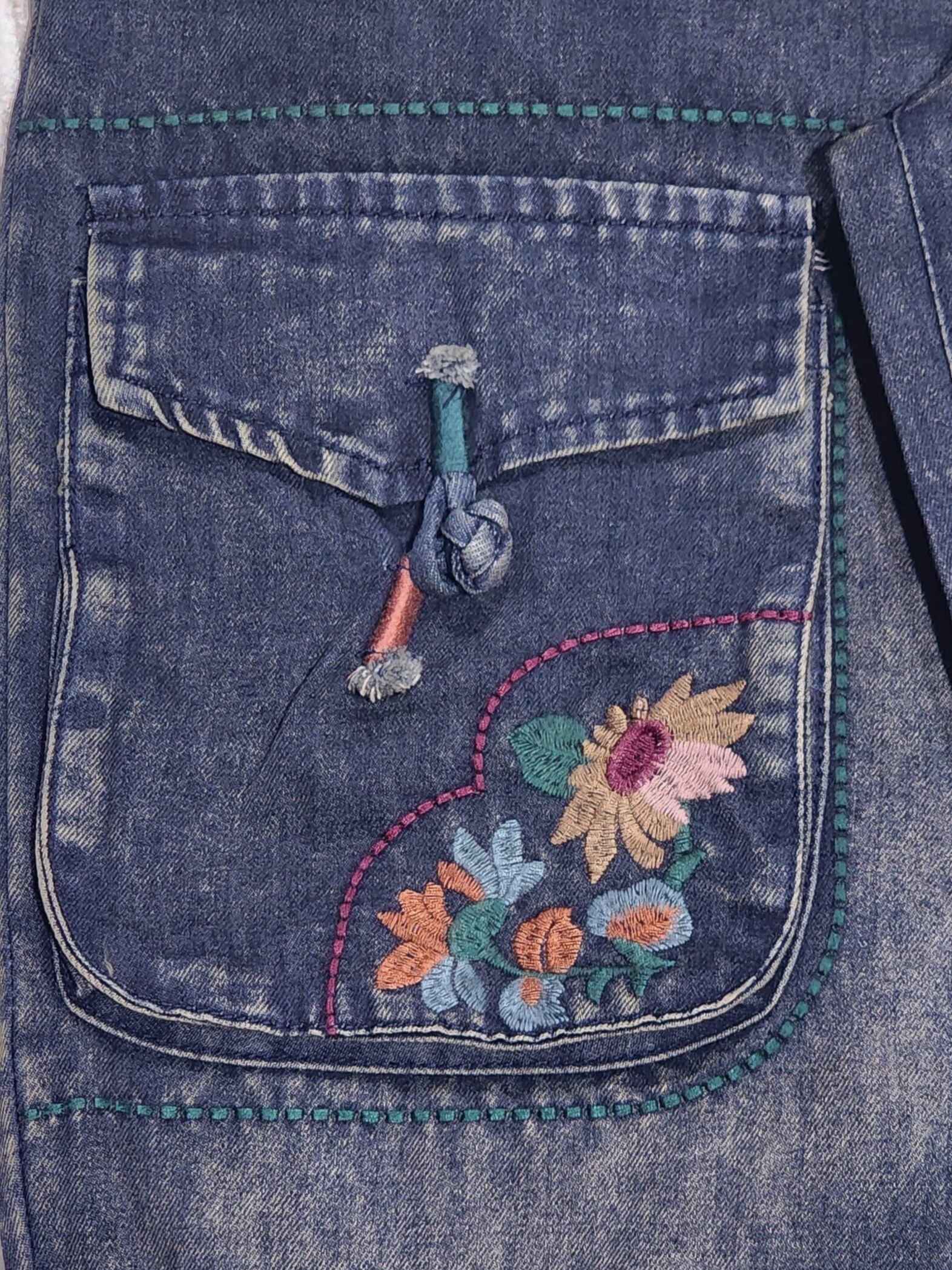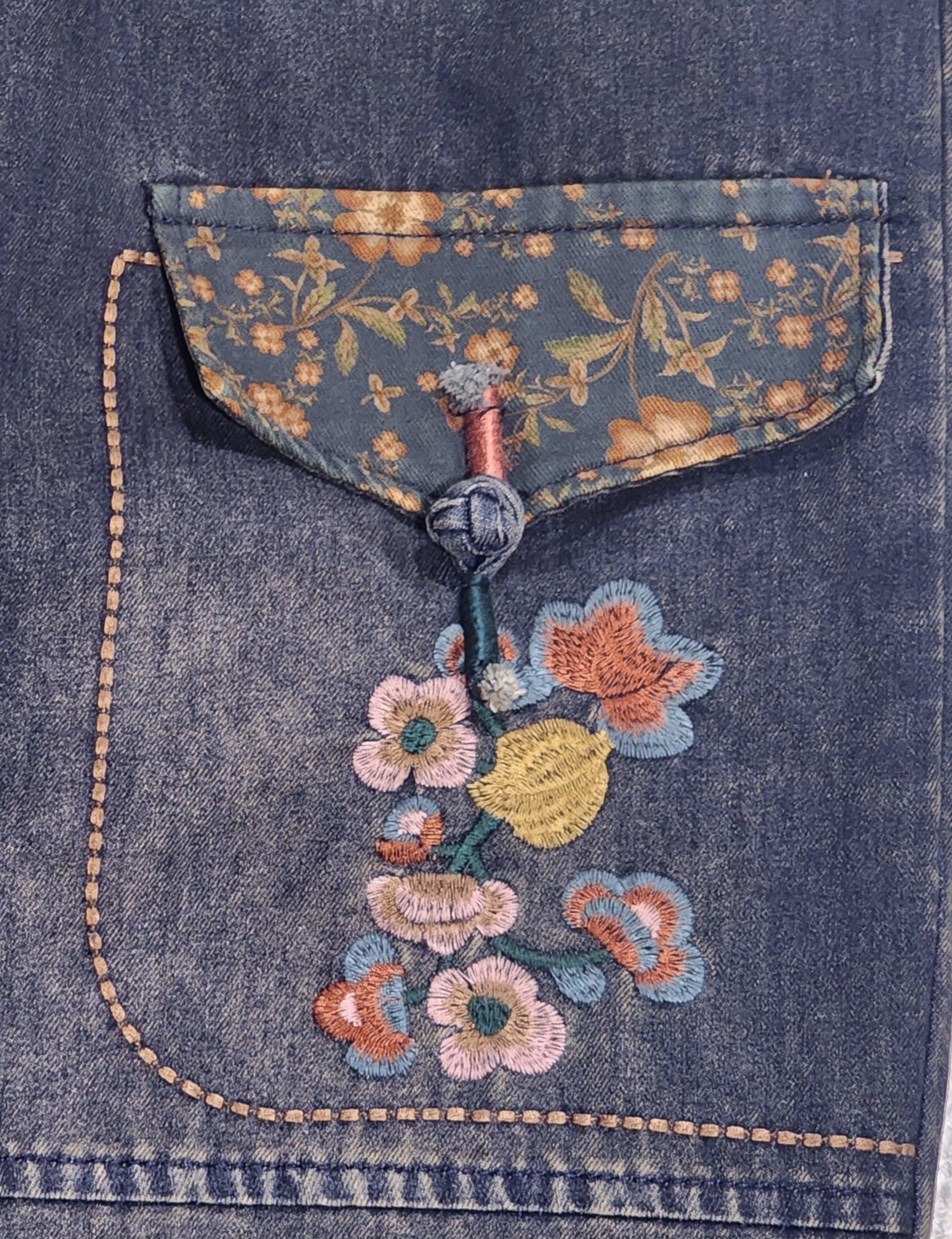 後ろポッケにはお花刺繍のワンポイント入りです。