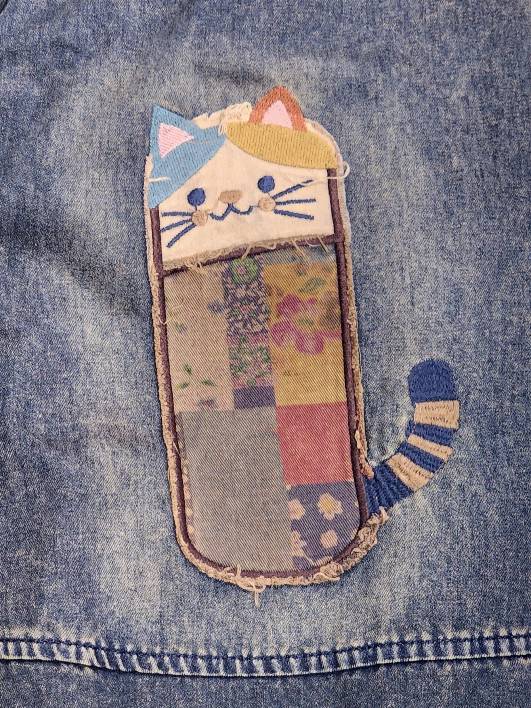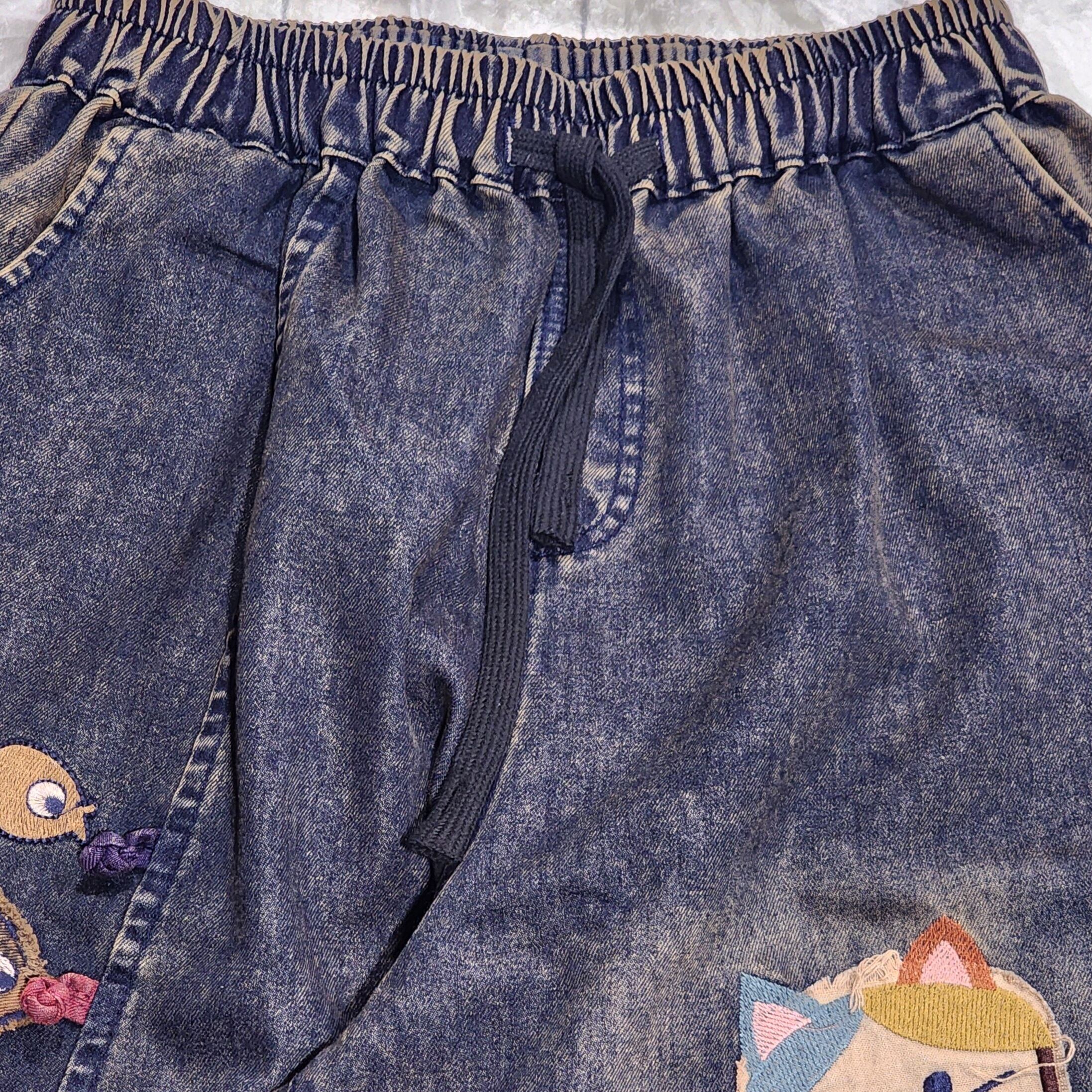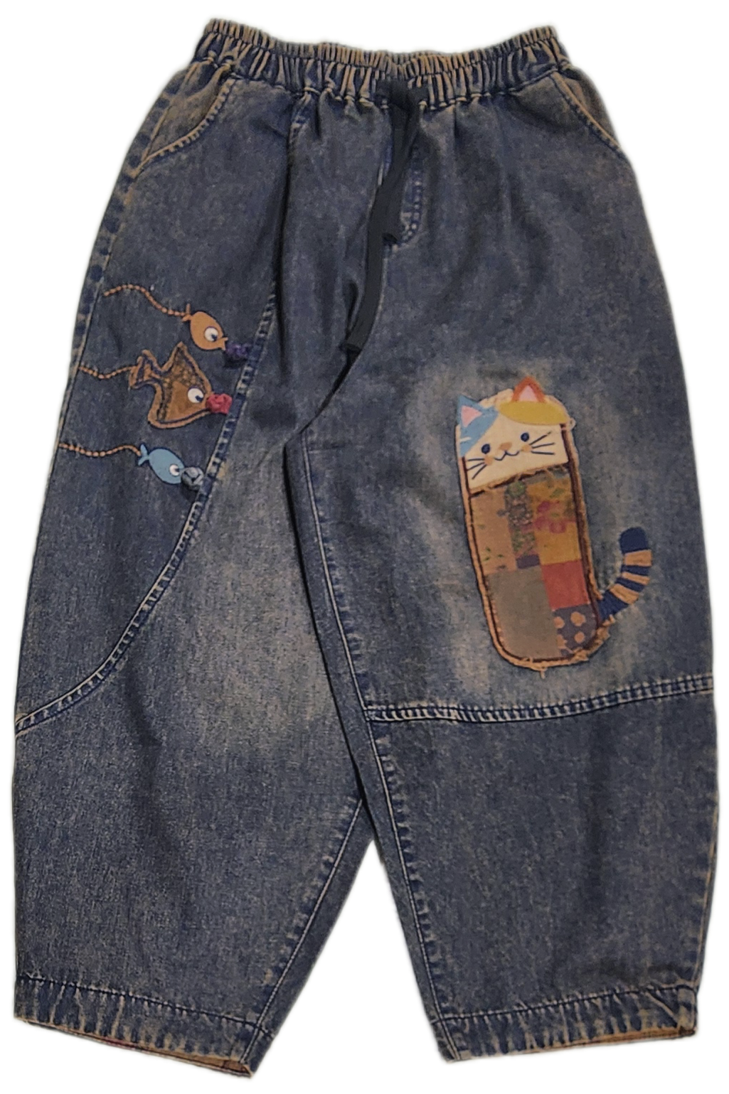 猫パッチワークのデニムボールパンツ