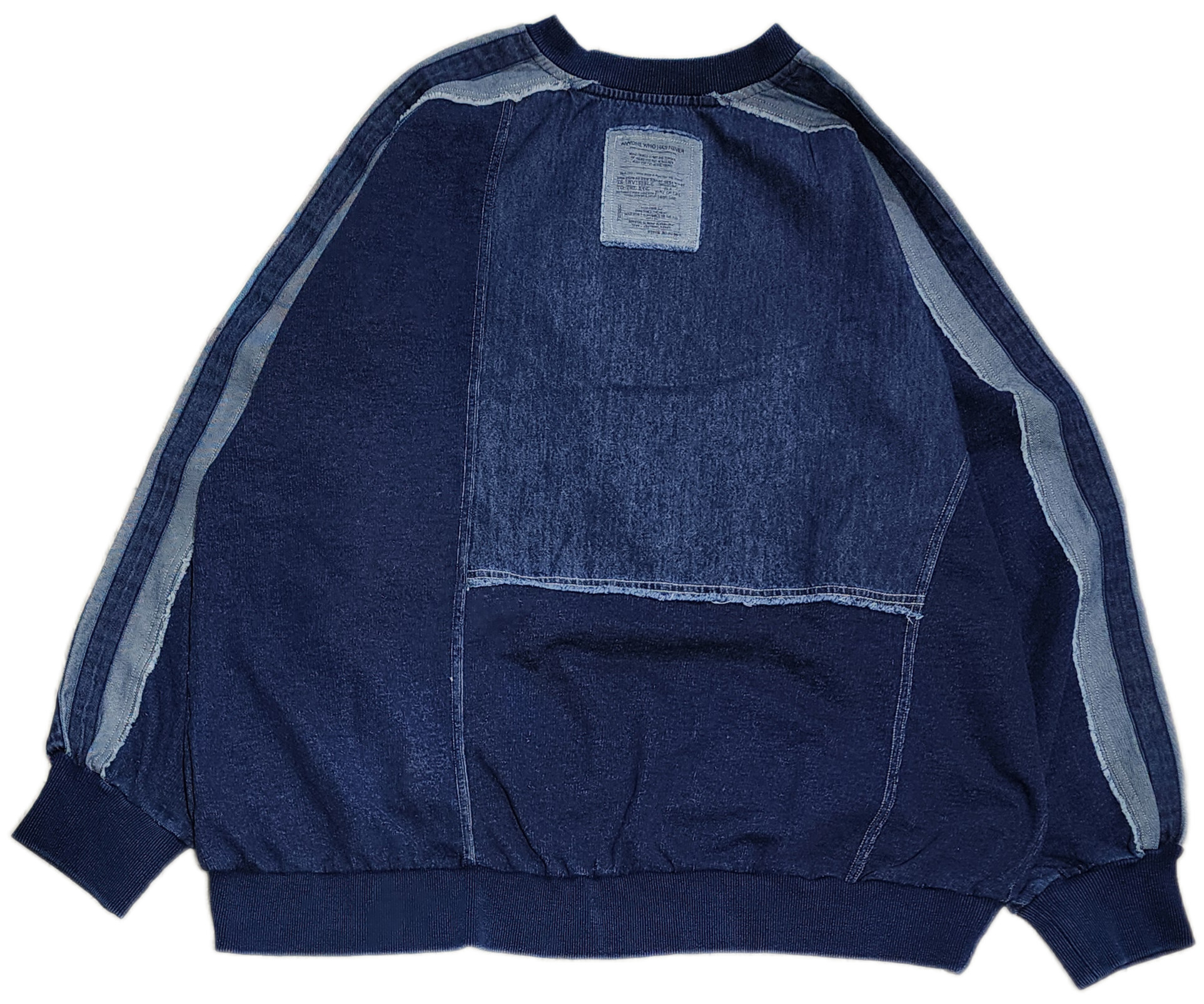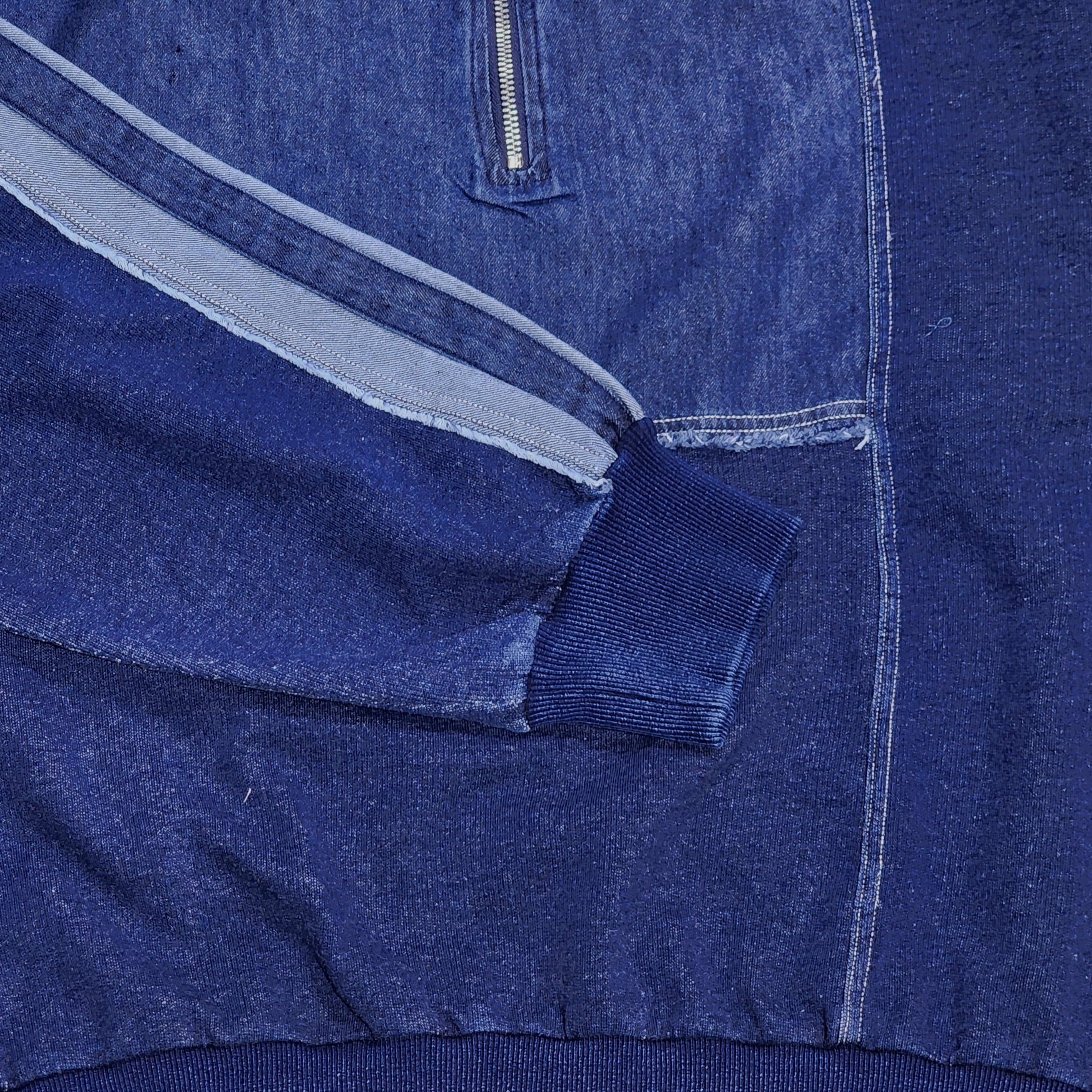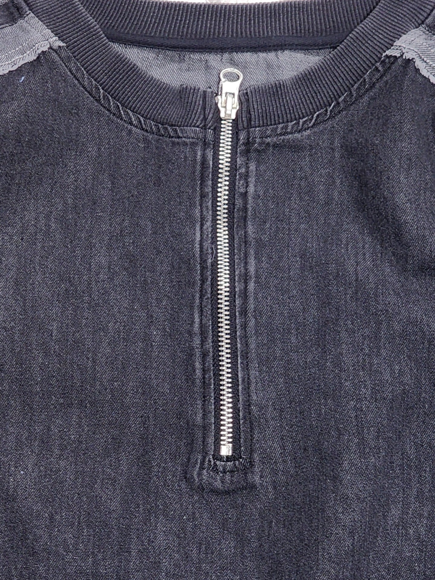 袖のデニム切替ラインがアクセントになった異素材切り替えのプルオーバー。