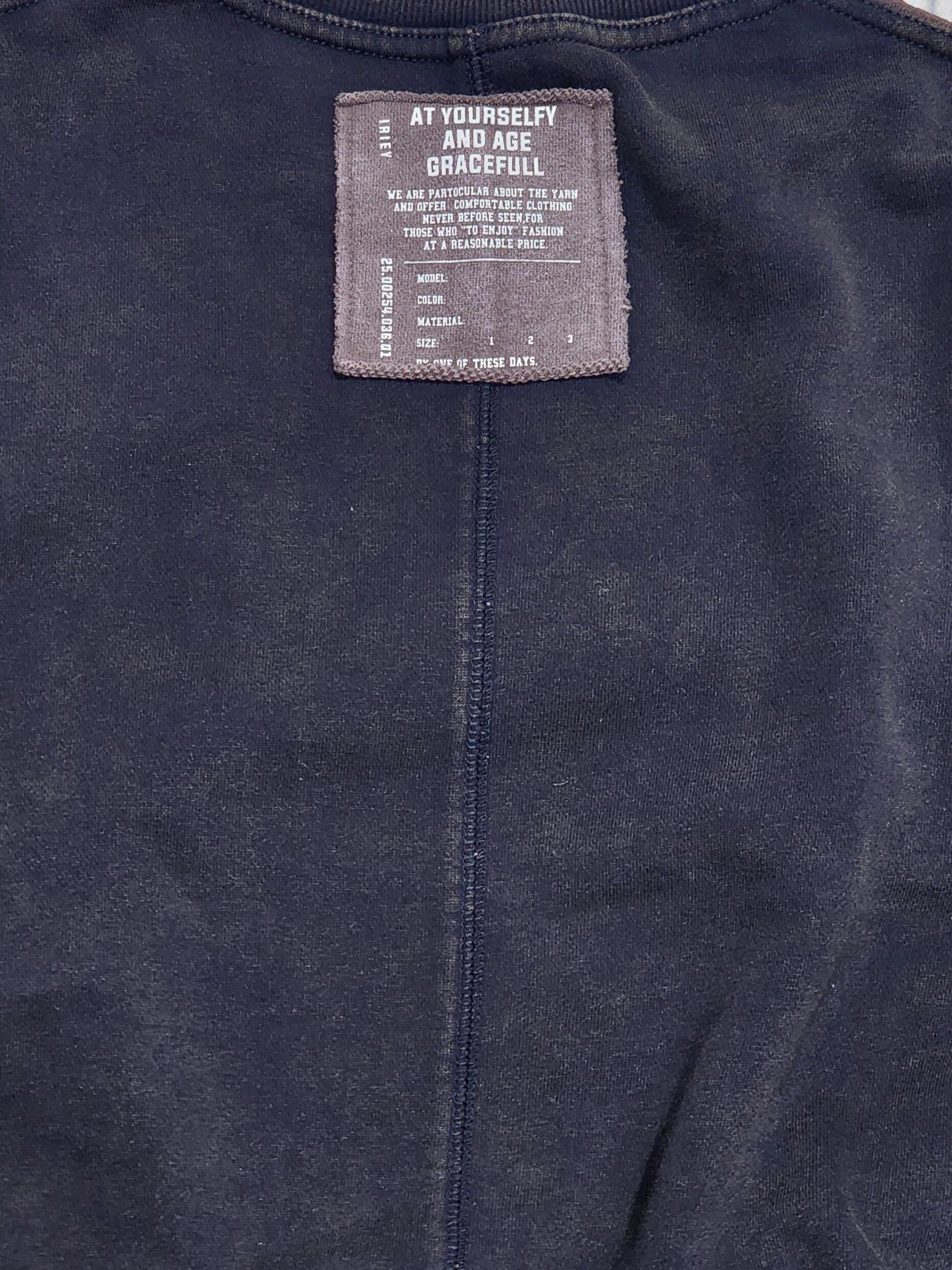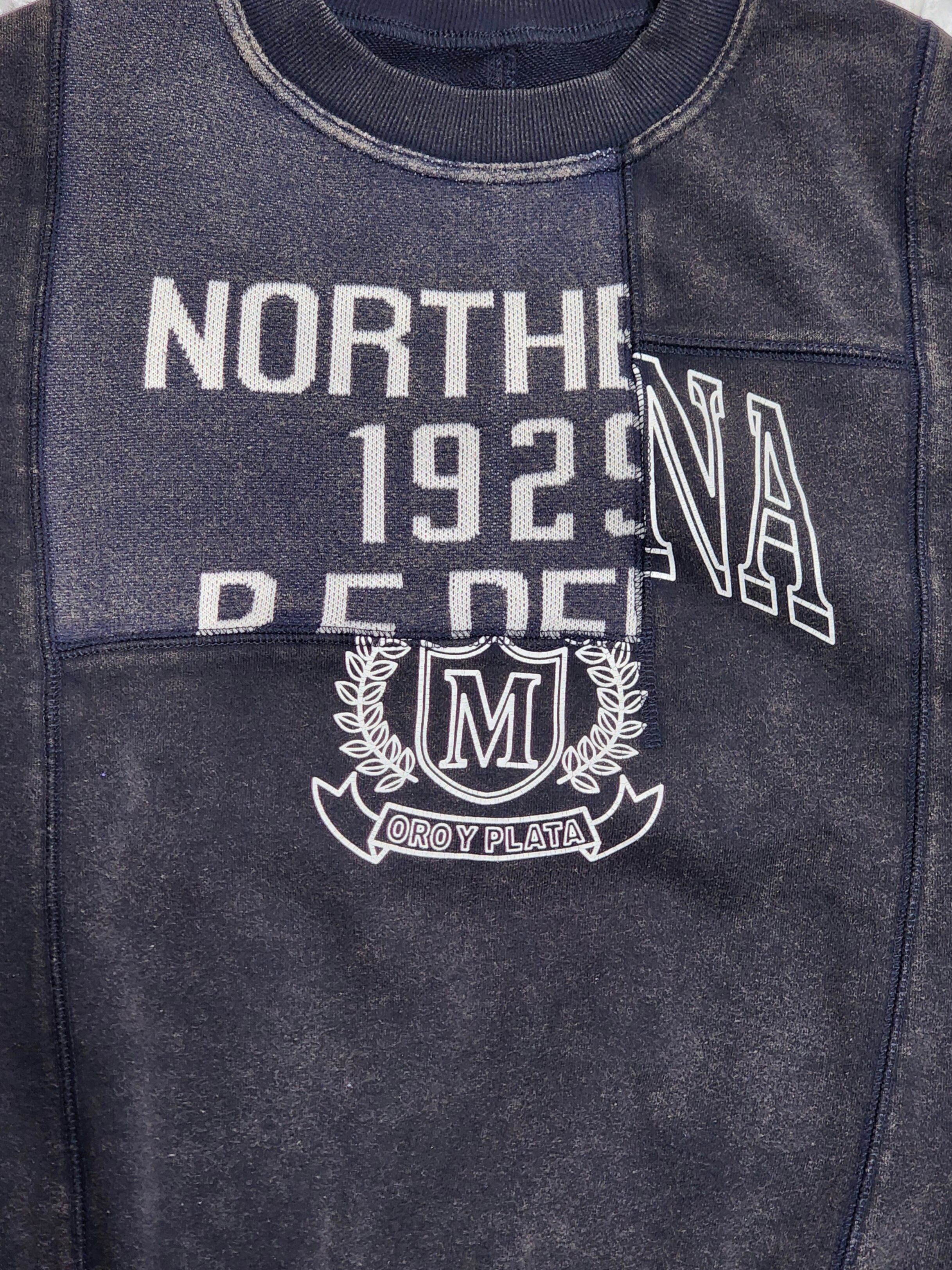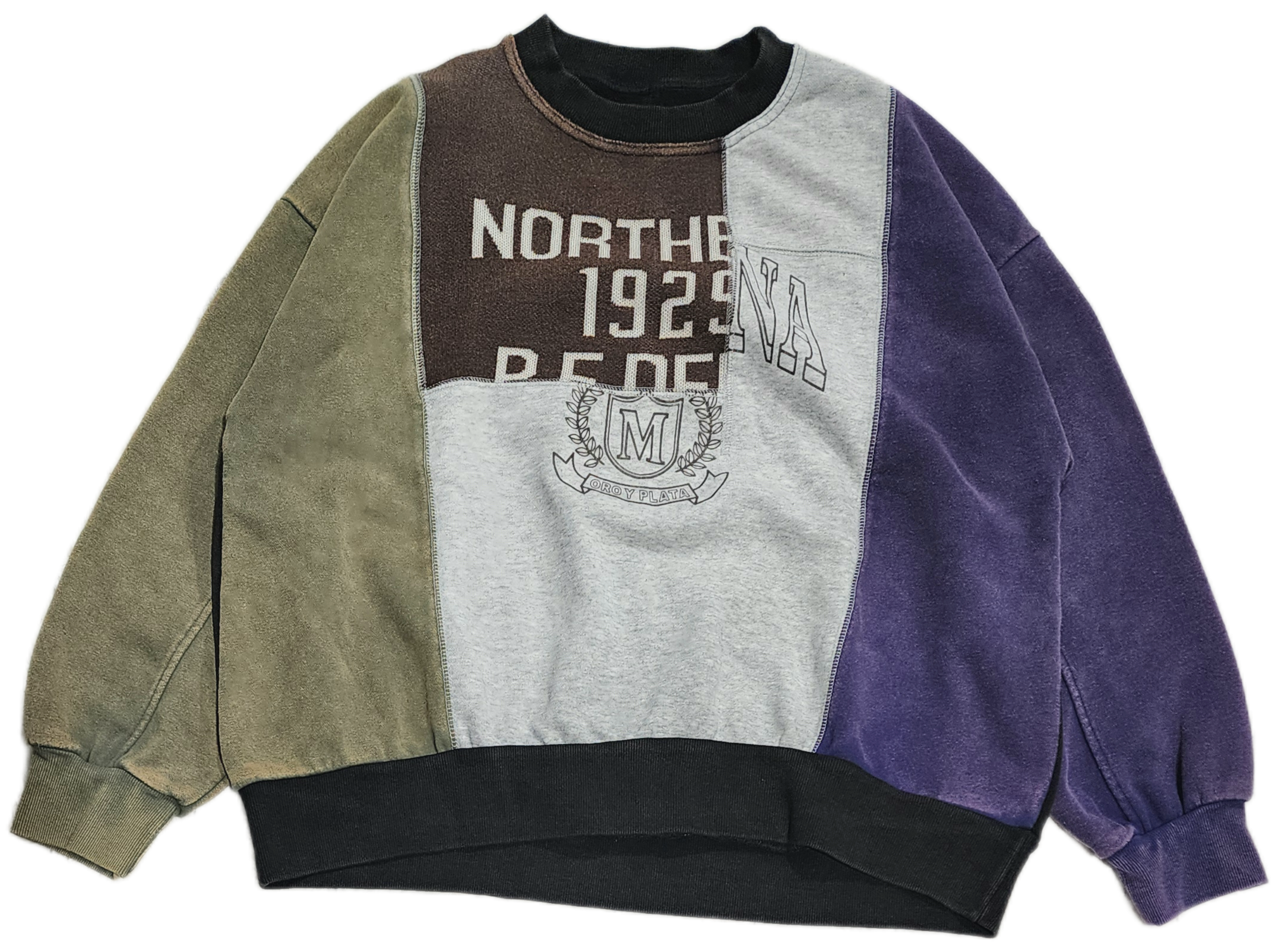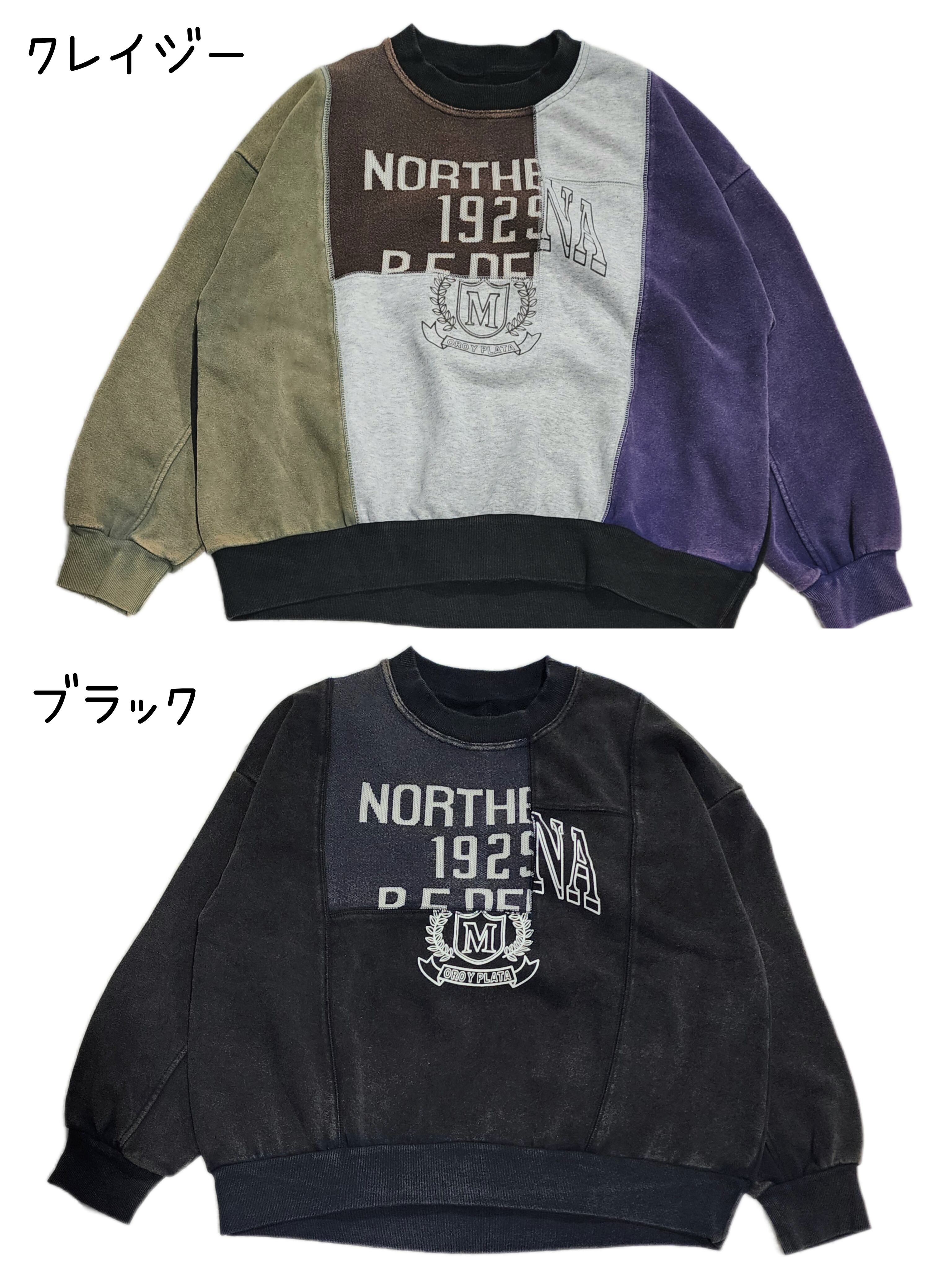 〈IRIEY〉ロゴプリントを施したスウェットベースに異素材で切り替えた、リメイク風デザインのプルオーバー。