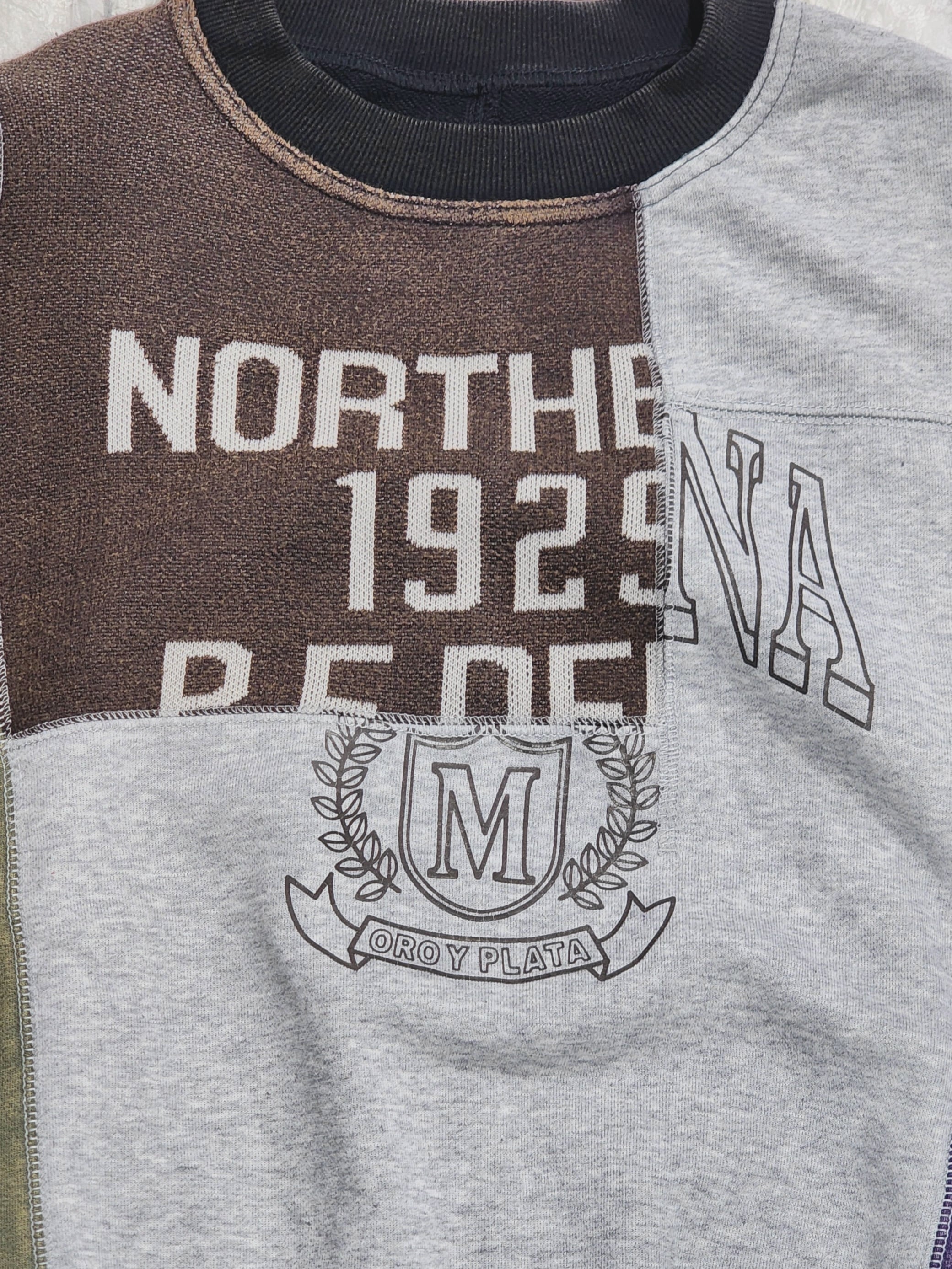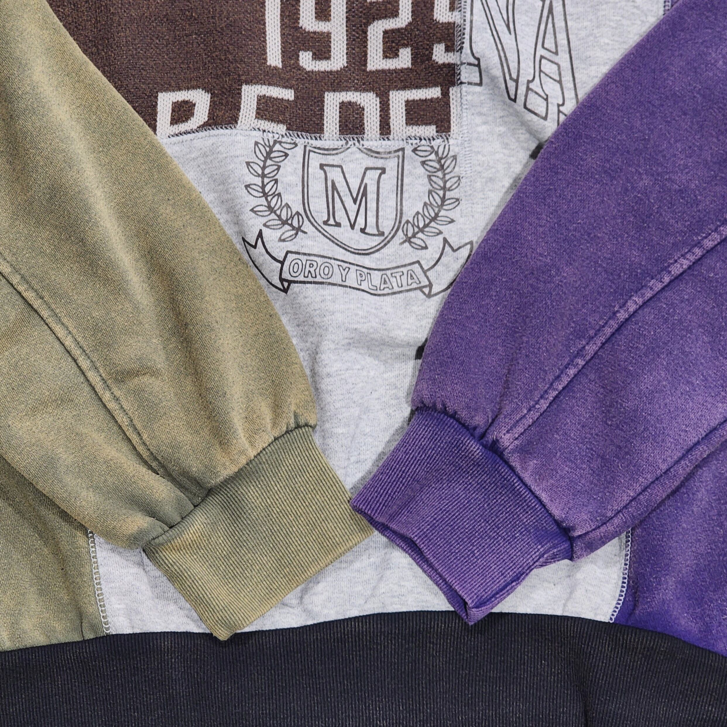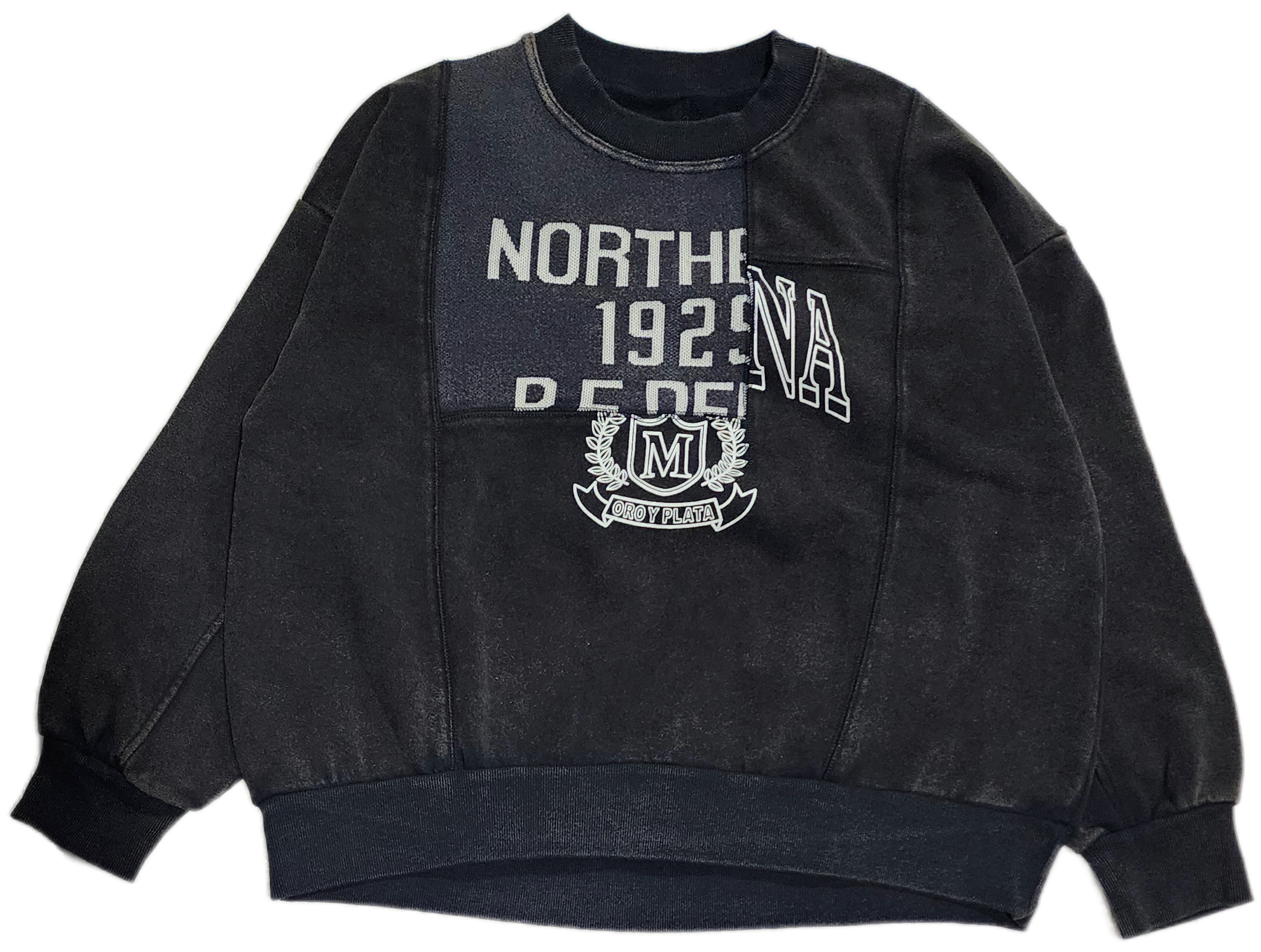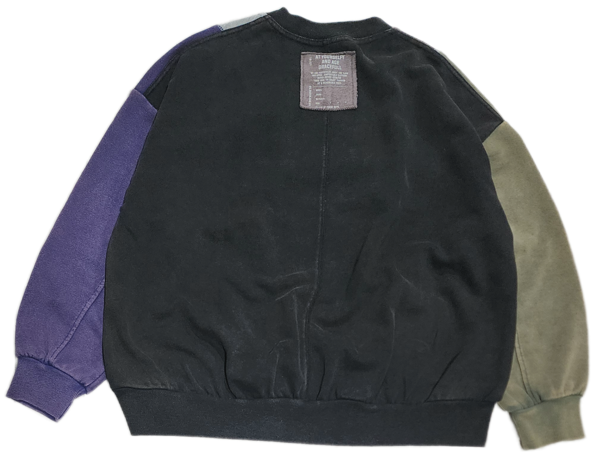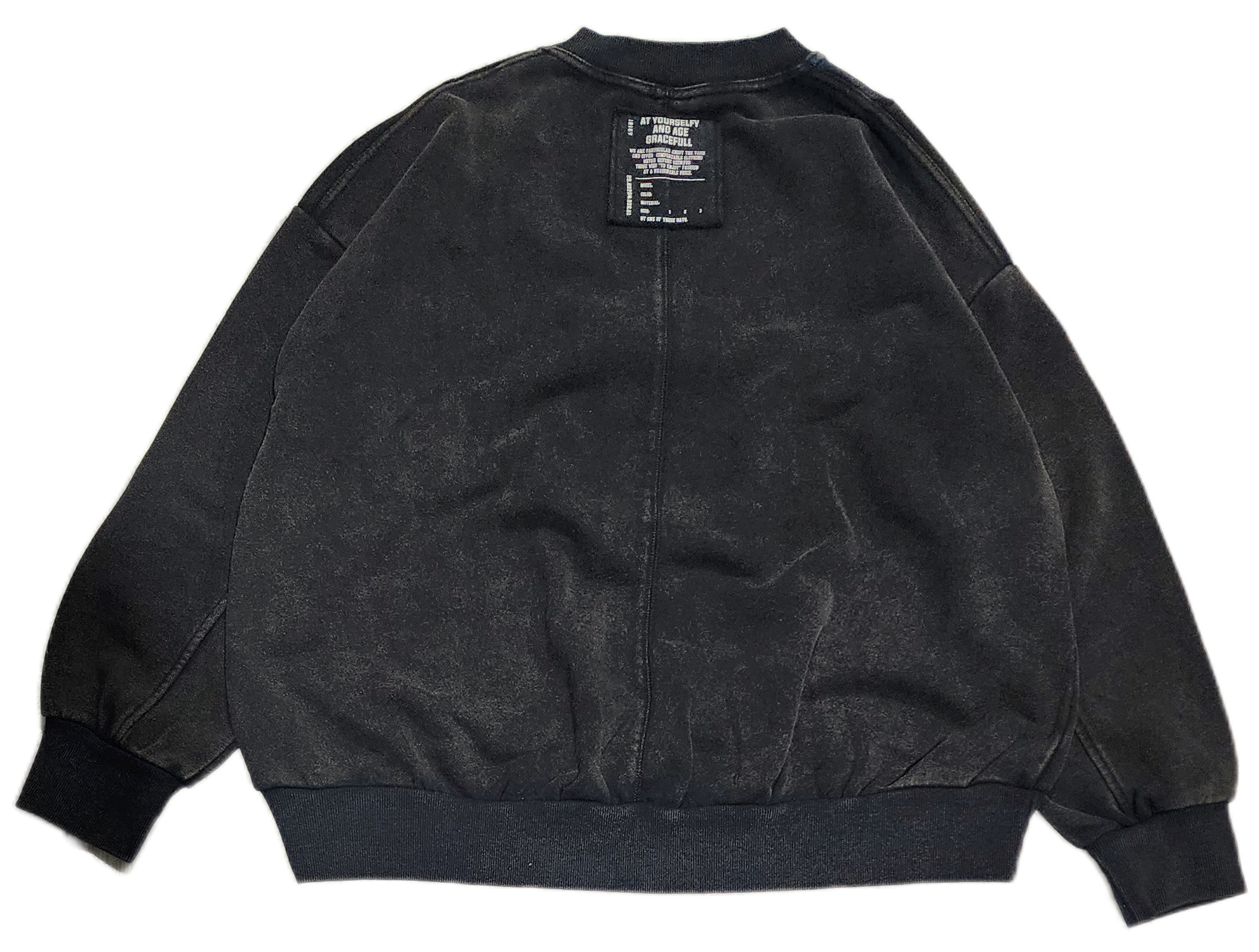 〈IRIEY〉ロゴプリントを施したスウェットベースに異素材で切り替えた、リメイク風デザインのプルオーバー。