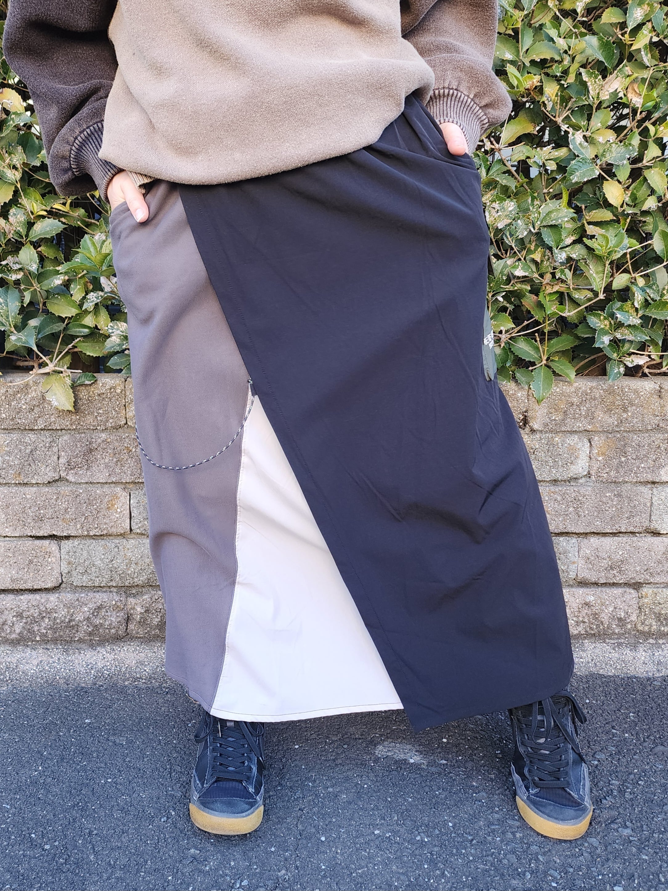 〈IRIEY〉配色切替と立体的なラップ風デザインが特徴のトラックスカート。